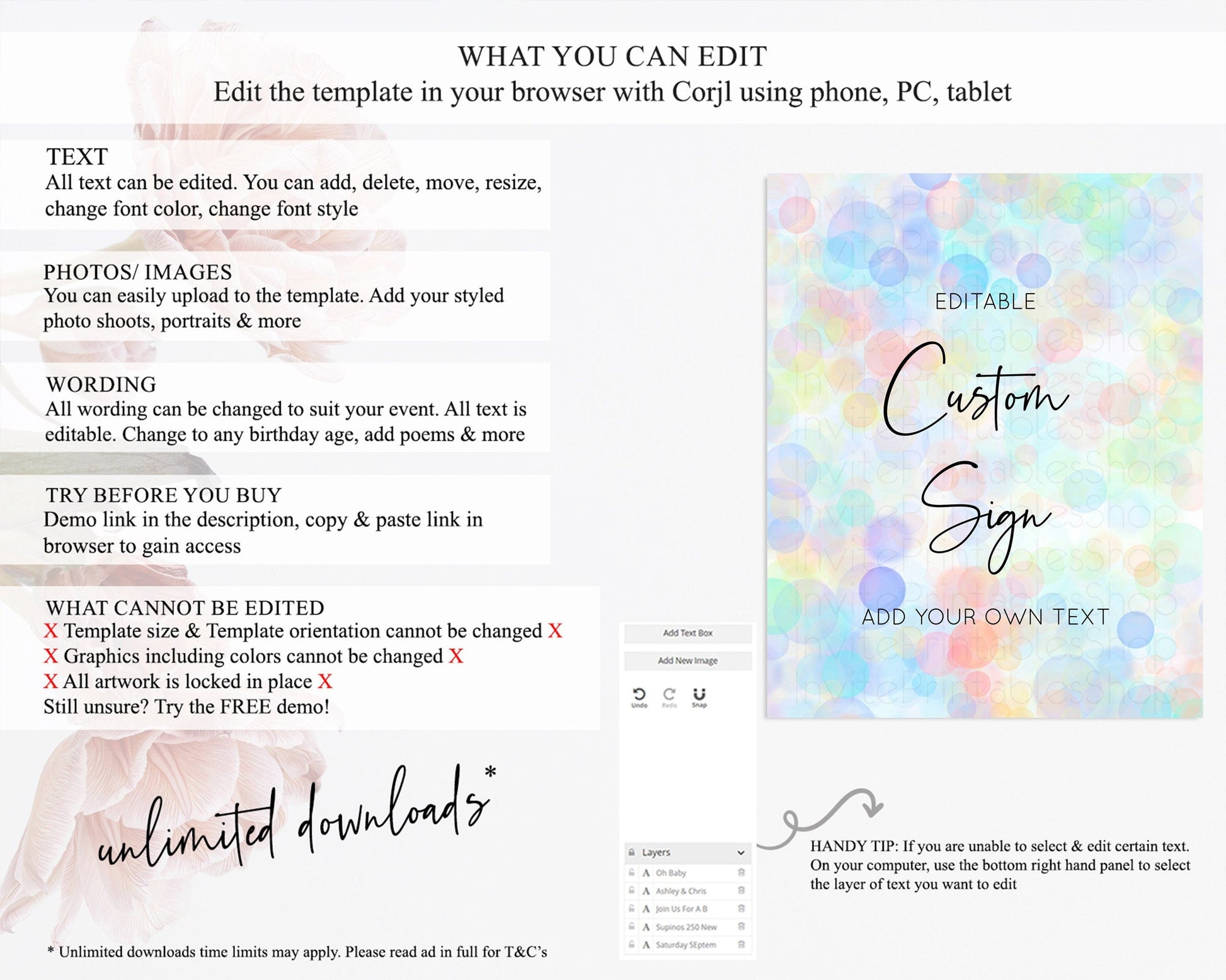 Pastel Bubbles Sign Colorful Confetti Table Sign Decor Bubble Bath Party Rainbow Sprinkles 1st Birthday Baby Shower Baptism Wedding D10444