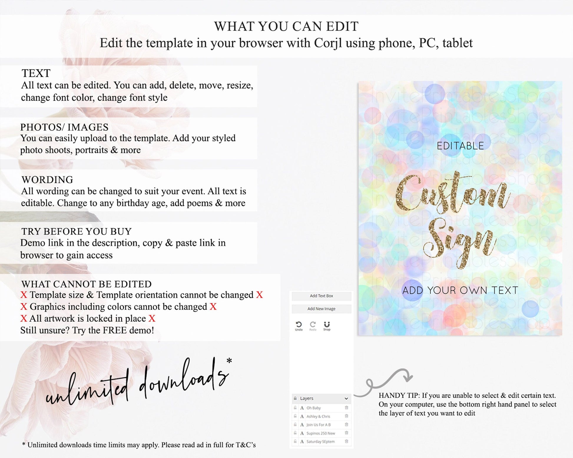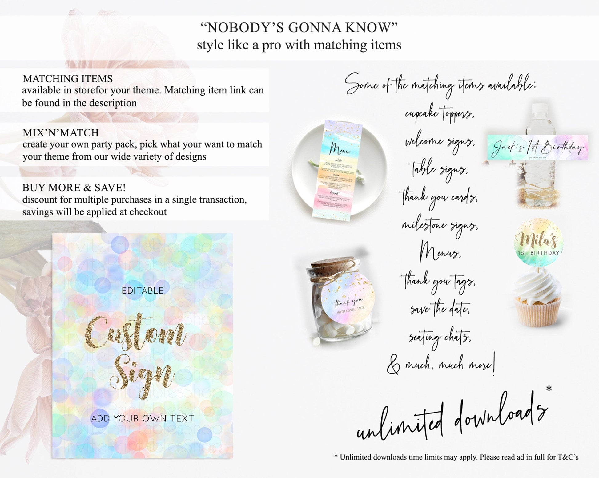 Pastel Bubbles Sign Colorful Confetti Table Sign Decor Bubble Bath Party Rainbow Sprinkles 1st Birthday Baby Shower Baptism Wedding D10447