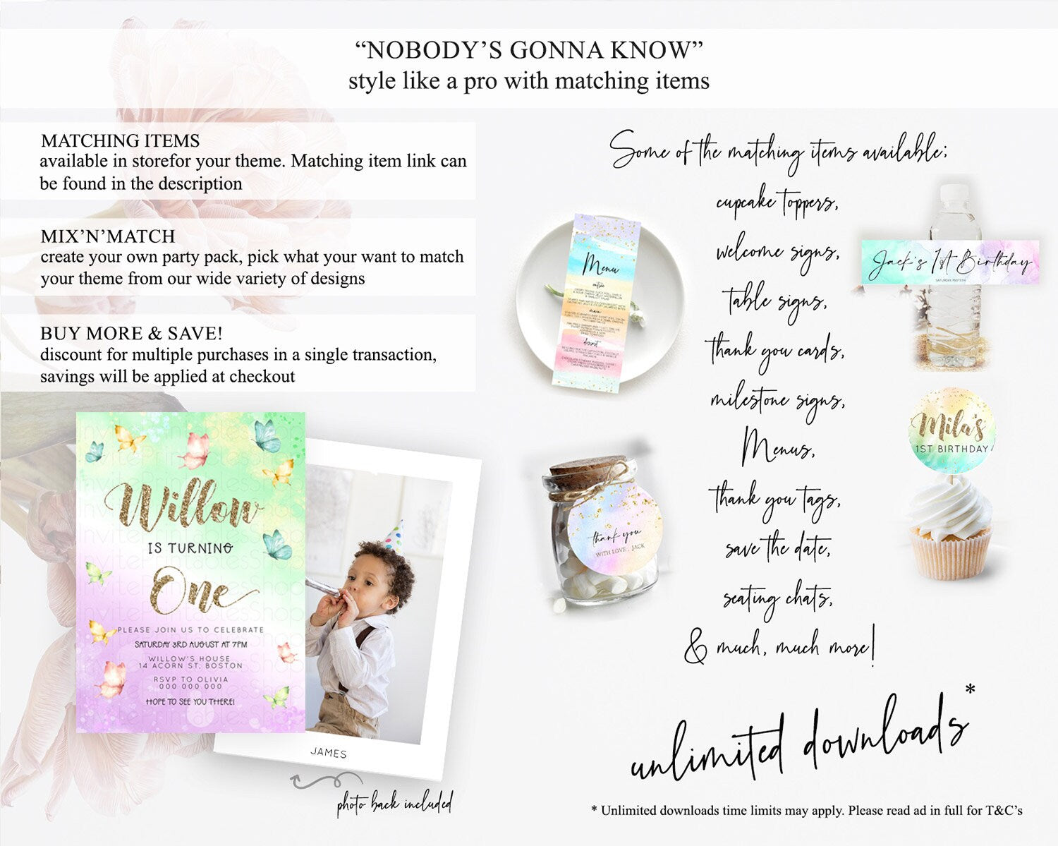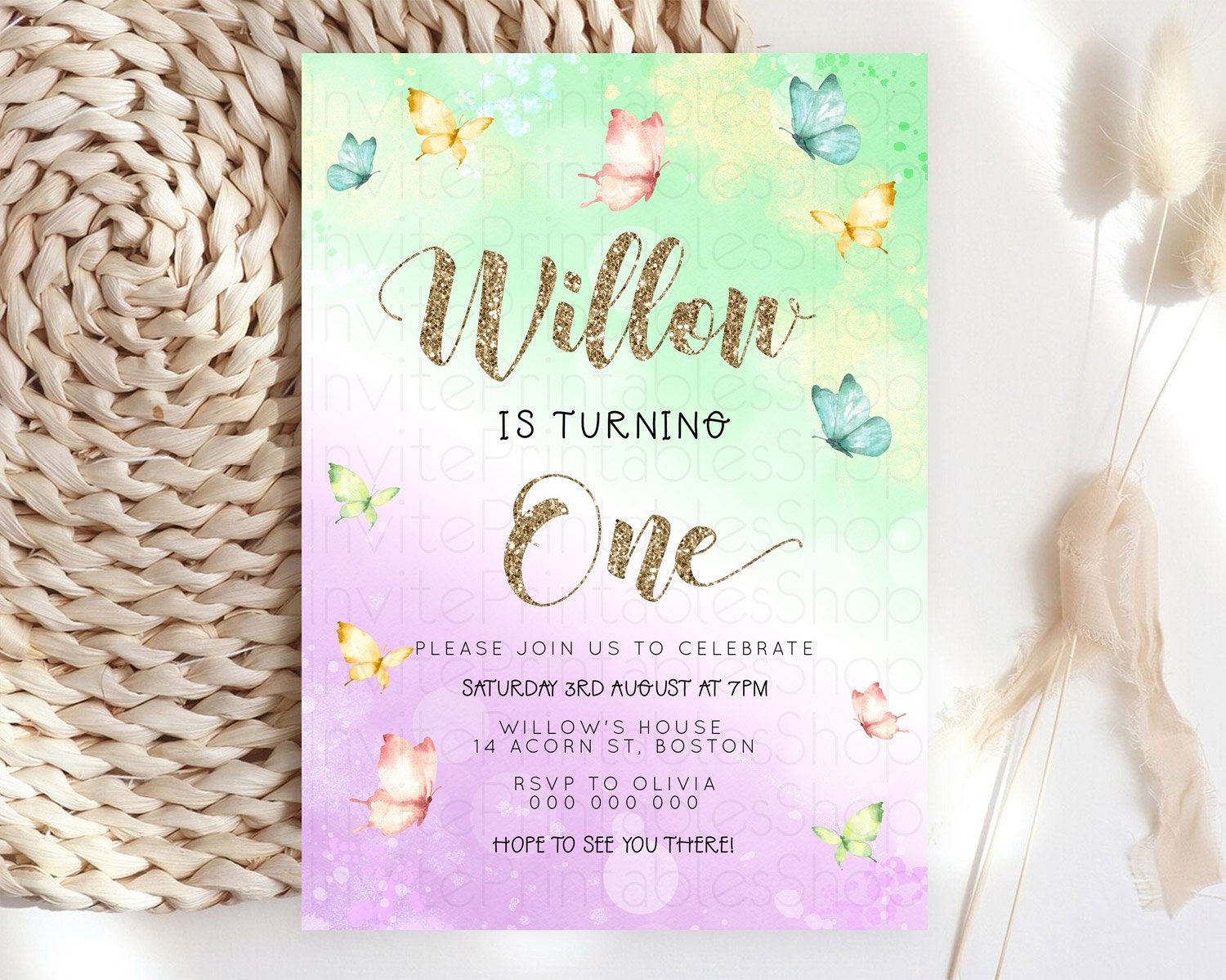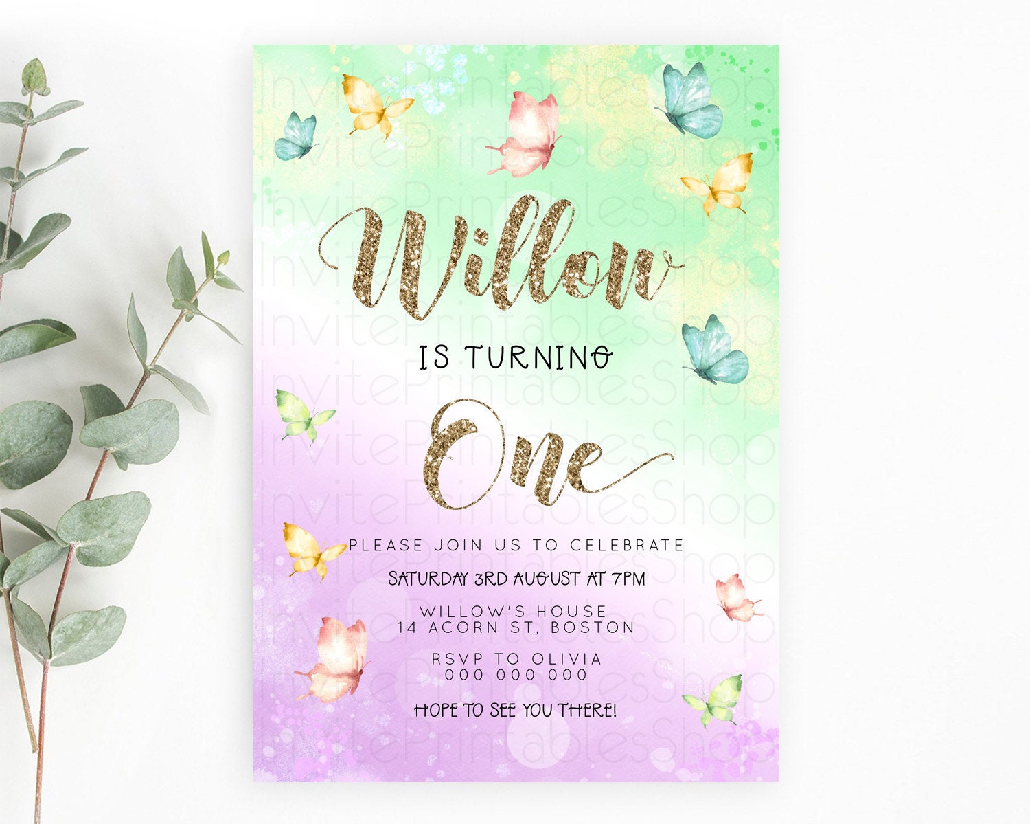 Pastel Butterfly Birthday Invitation Butterfly Birthday Invitation Colorful Splash Glitter Butterfly Garden 1st 2nd Birthday D23085