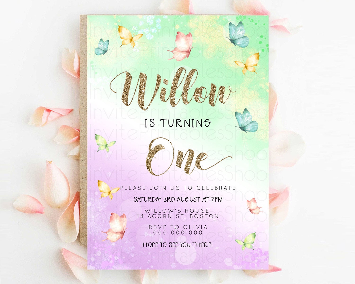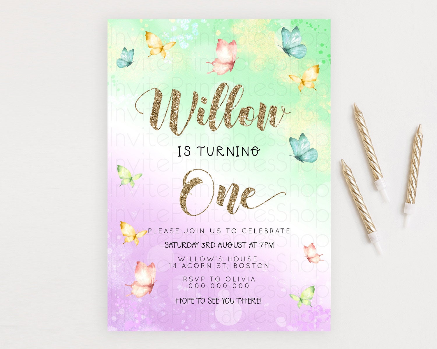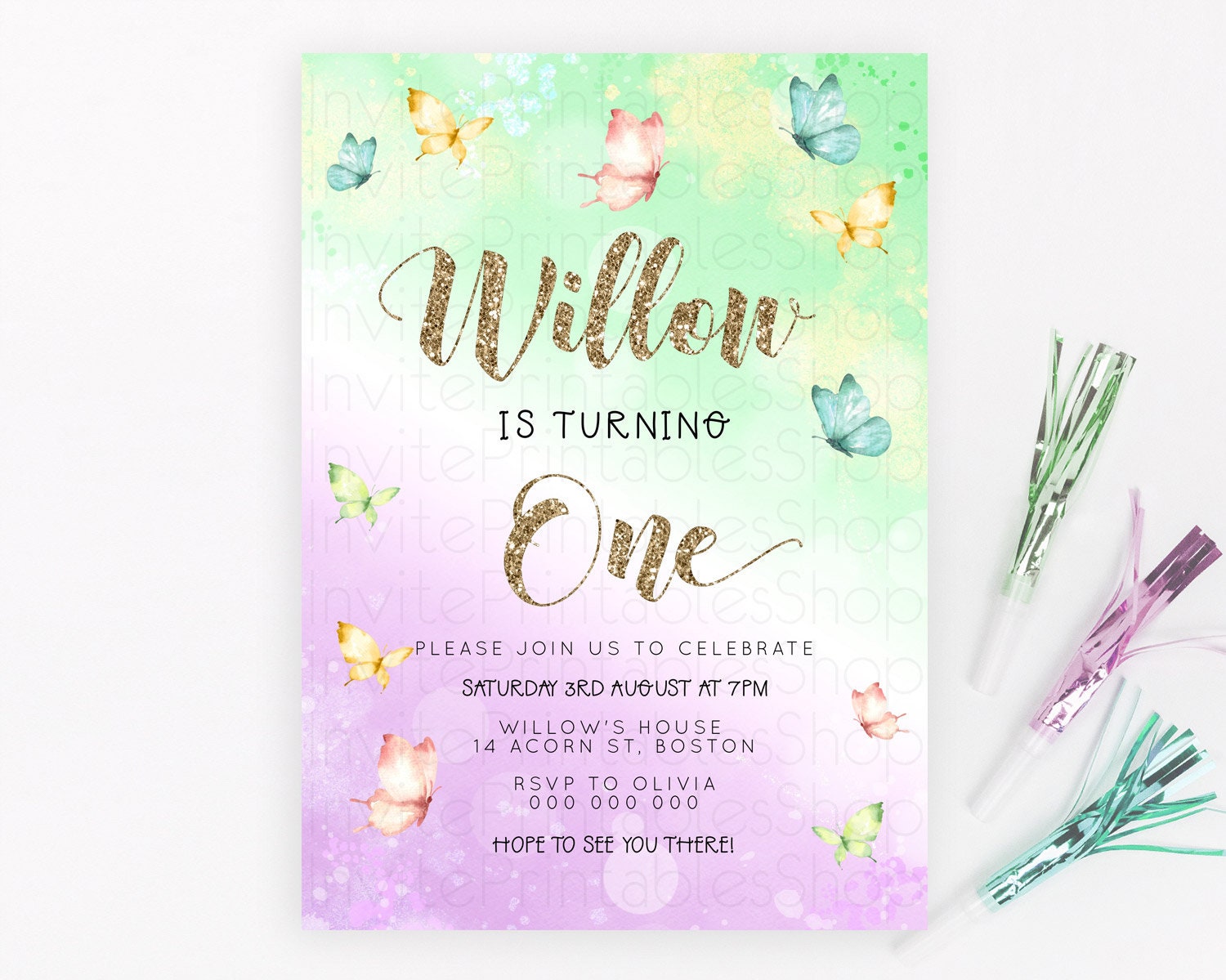 Pastel Butterfly Birthday Invitation