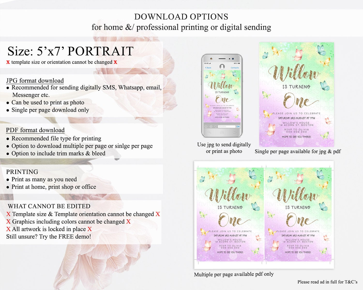 • Template size & orientation cannot be changed. Please use the demo link to confirm this product suits your needs.