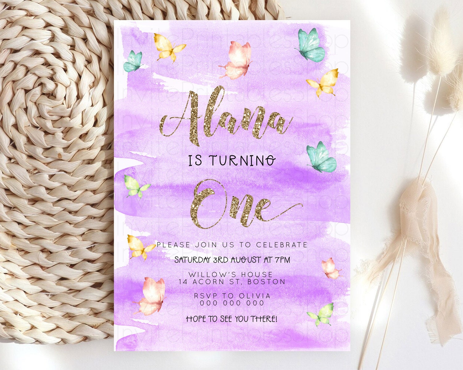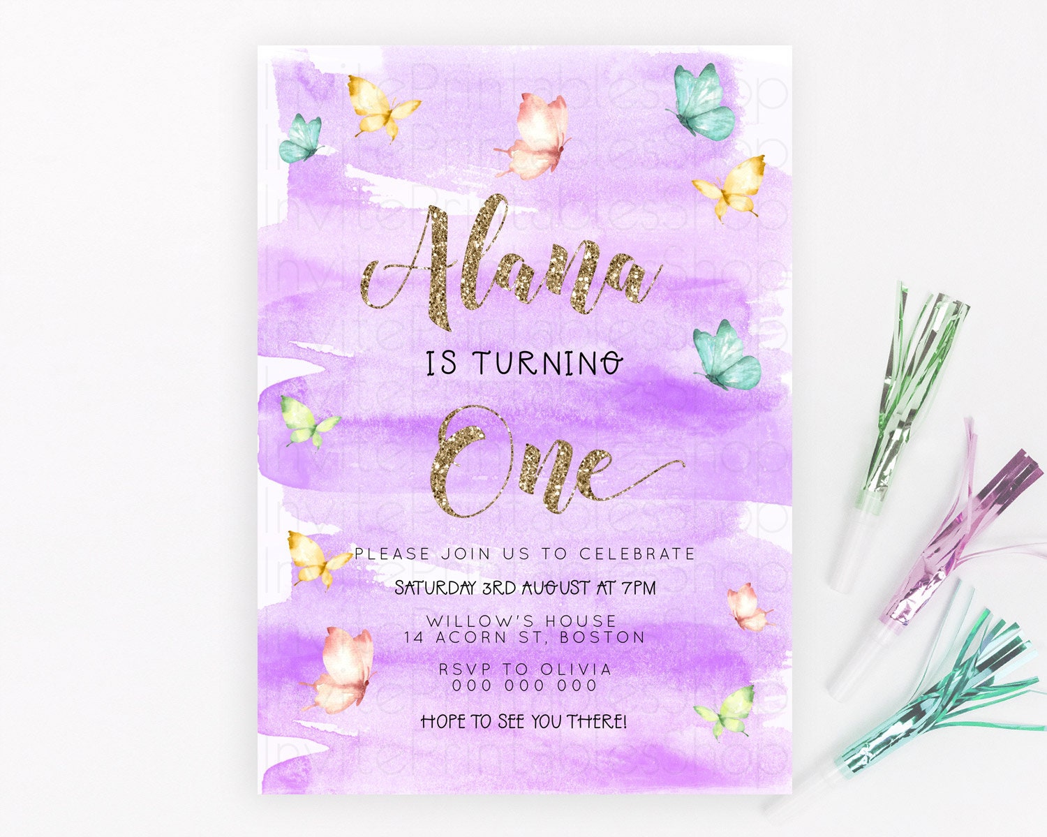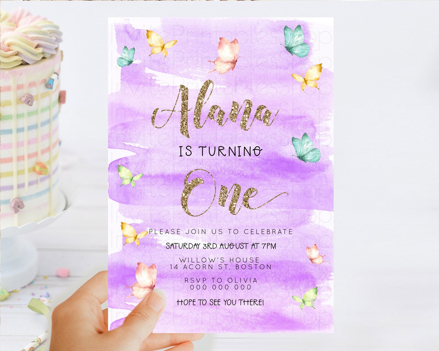 Pastel Butterfly Birthday Invitation Butterfly Birthday Invitation Colorful Splash Glitter Butterfly Garden 1st 2nd Birthday D23233