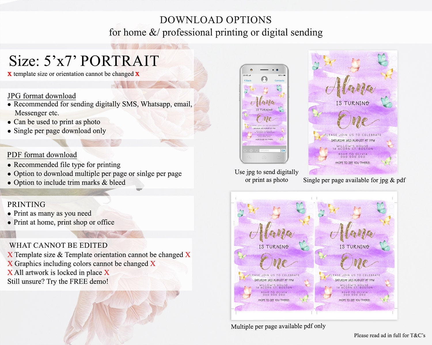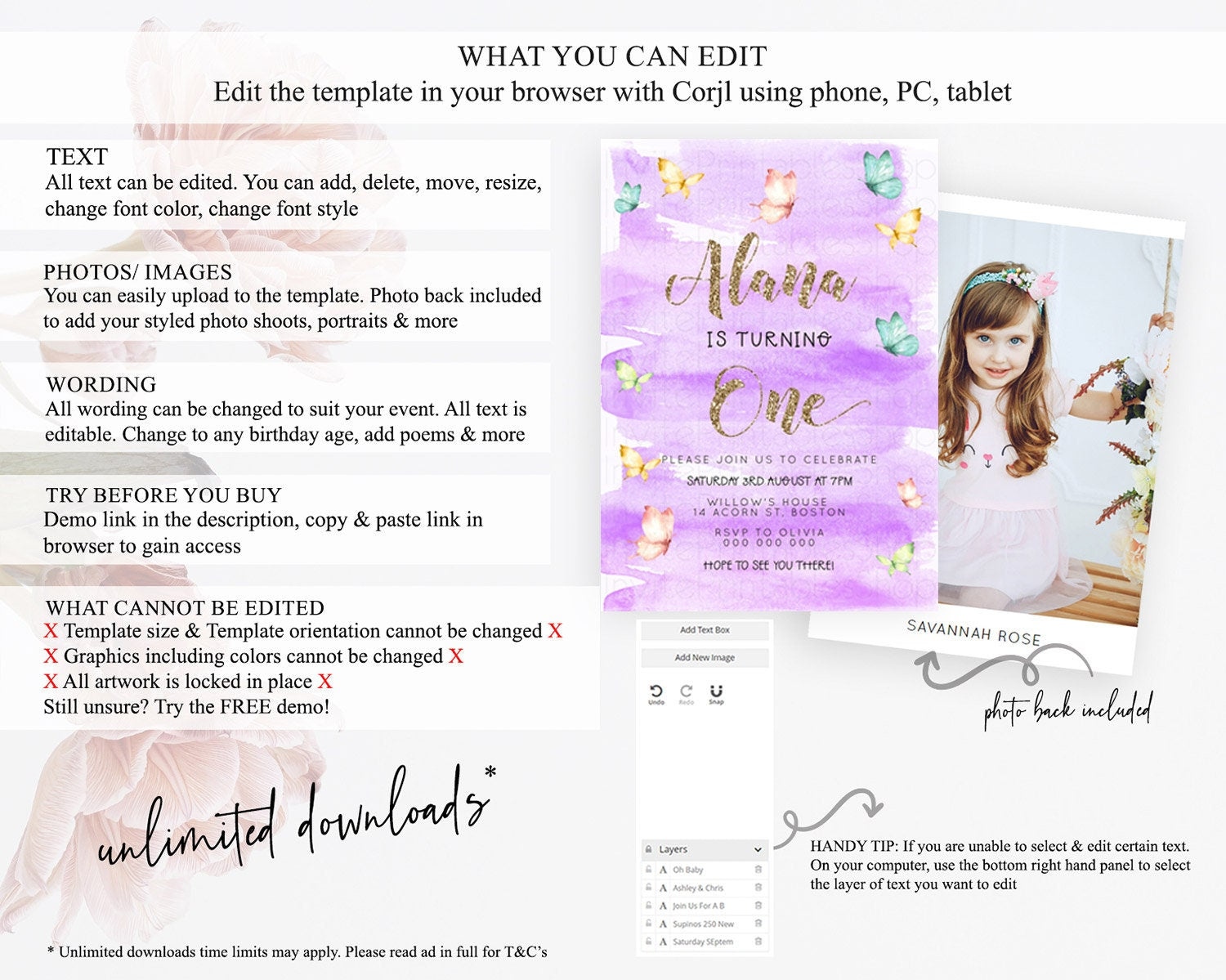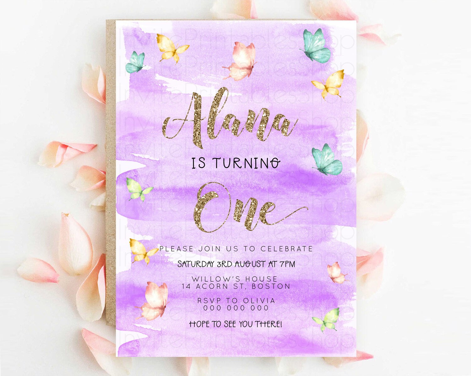 Pastel Butterfly Birthday Invitation Butterfly Birthday Invitation Colorful Splash Glitter Butterfly Garden 1st 2nd Birthday D23233