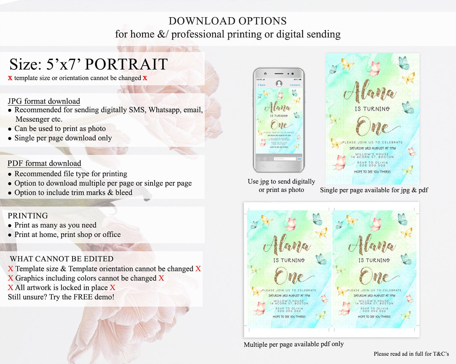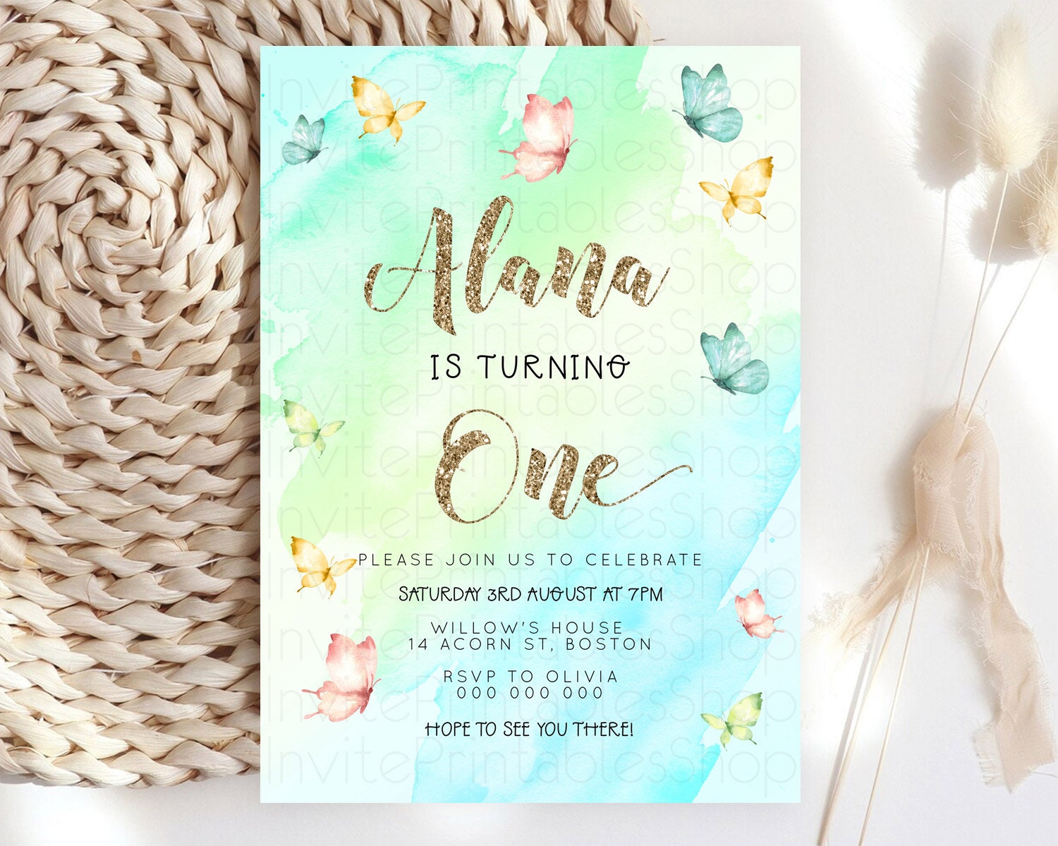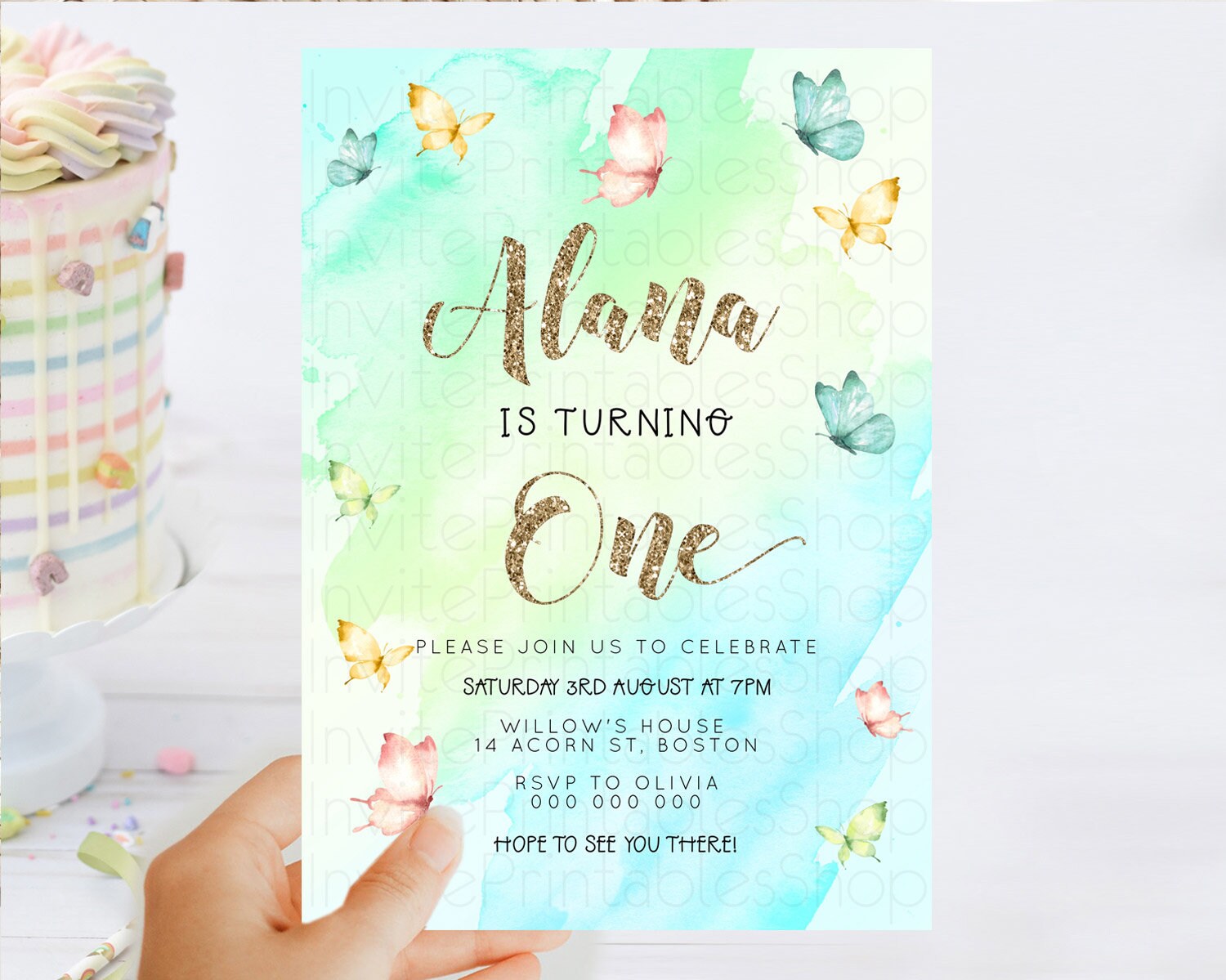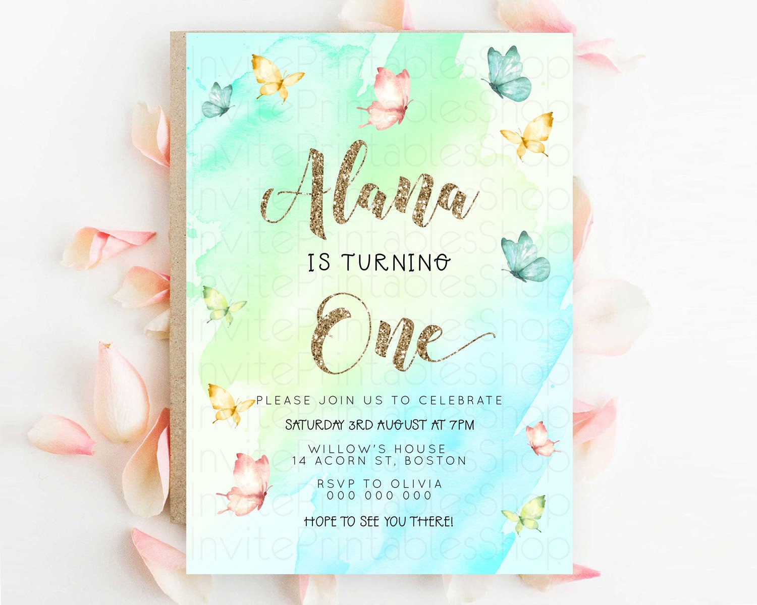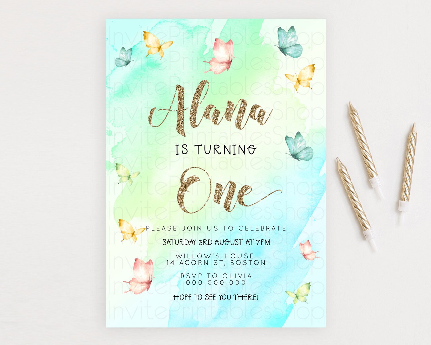 Pastel Butterfly Birthday Invitation Butterfly Birthday Invitation Colorful Splash Glitter Butterfly Garden 1st 2nd Birthday D23240