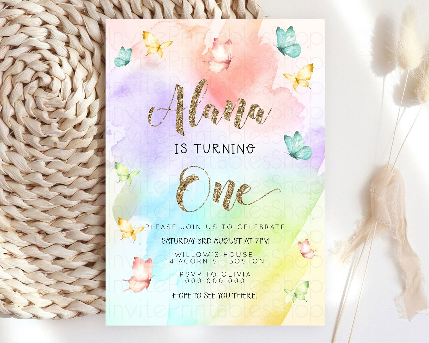 Pastel Butterfly Birthday Invitation Butterfly Birthday Invitation Colorful Splash Glitter Butterfly Garden 1st 2nd Birthday D23255