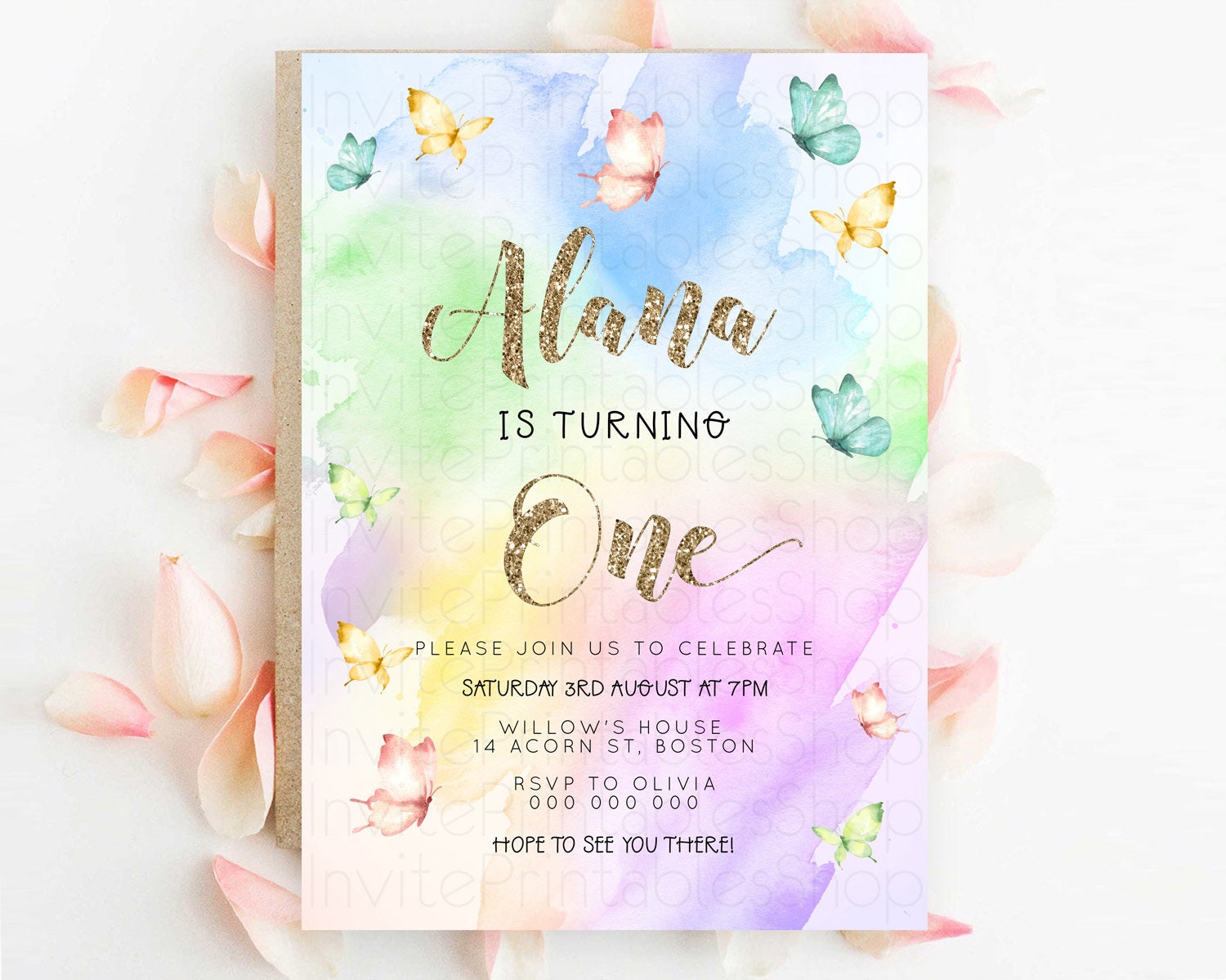 Pastel Butterfly Birthday Invitation