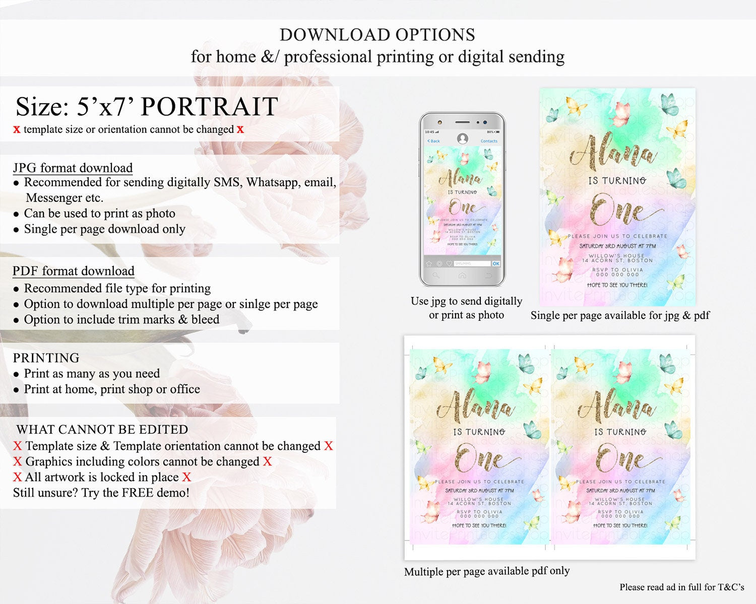 • Template size & orientation cannot be changed. Please use the demo link to confirm this product suits your needs.