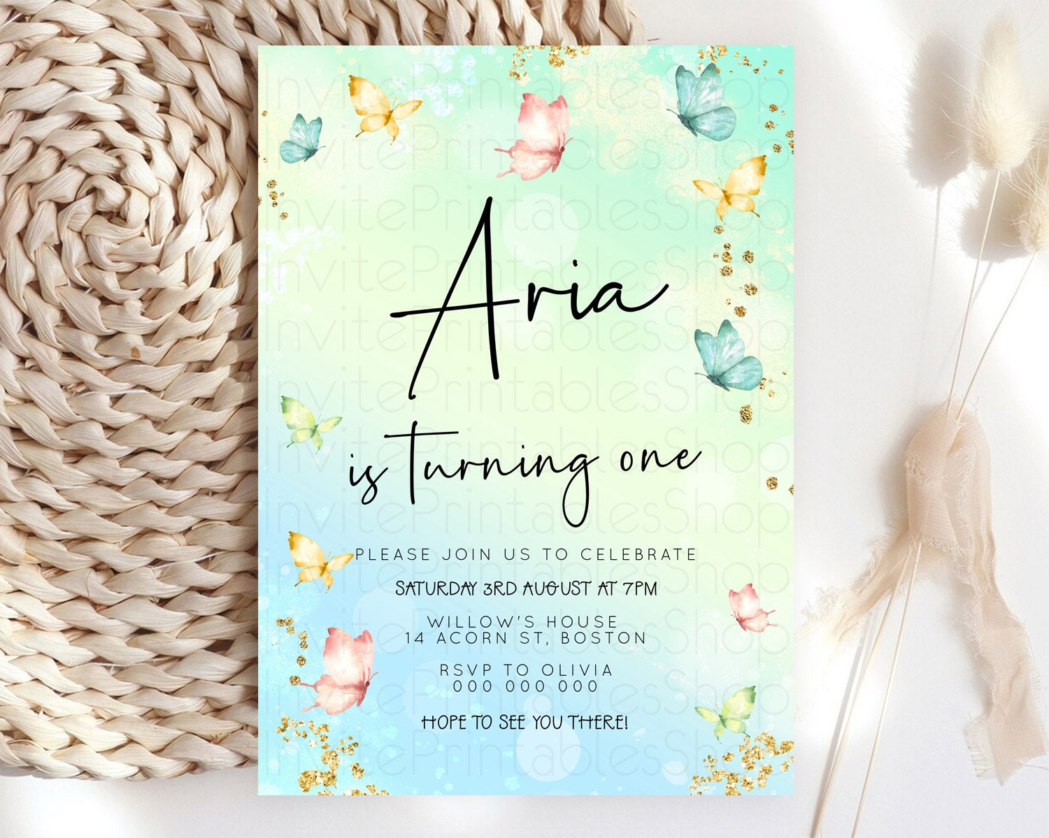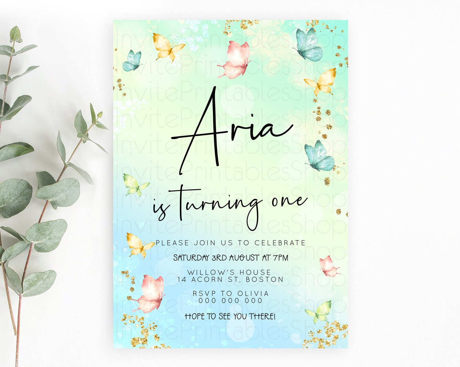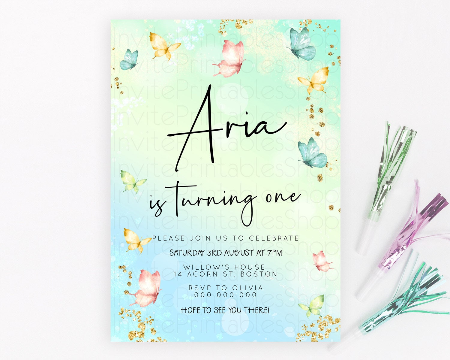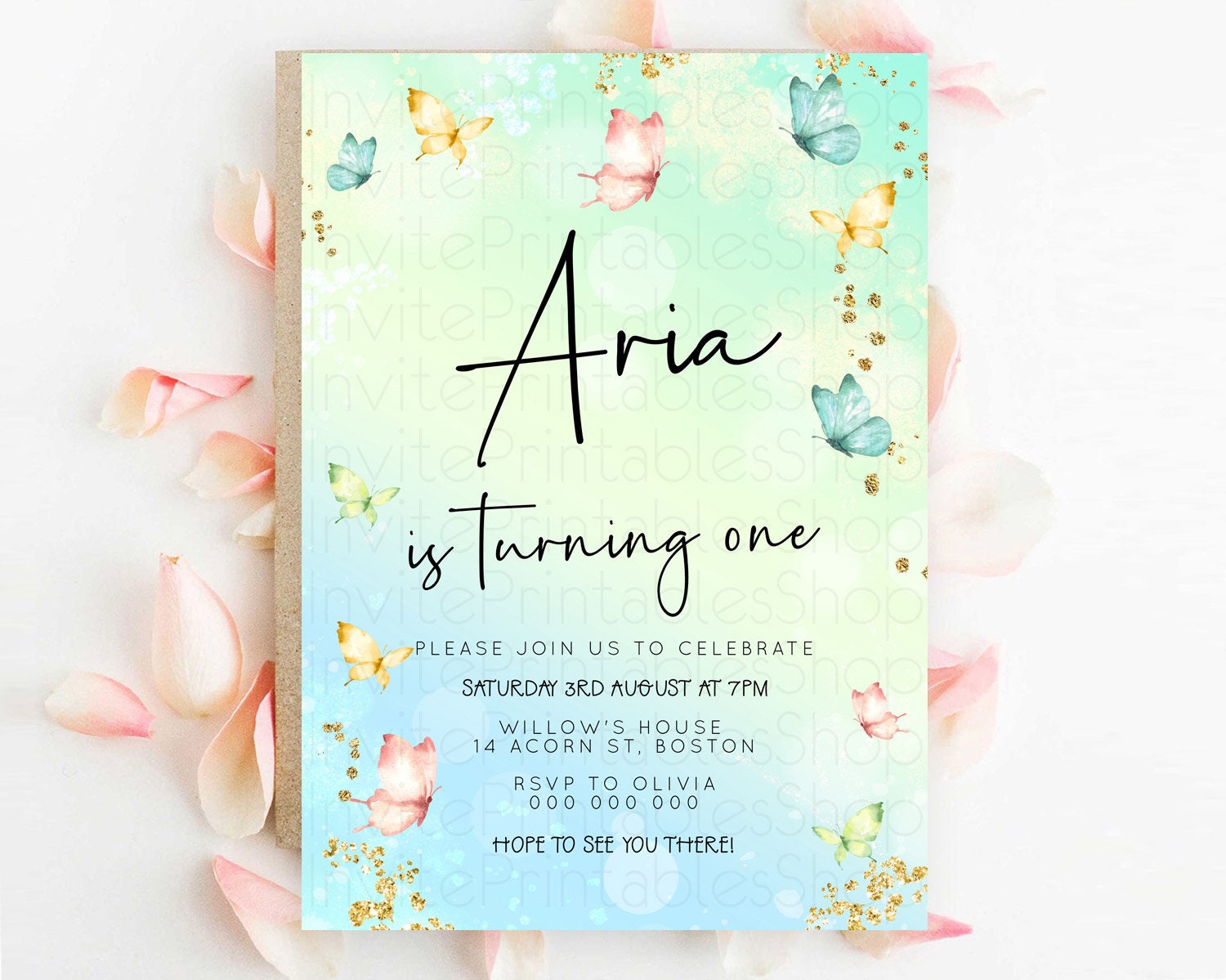 Pastel Butterfly Birthday Invitation Butterfly Birthday Invitation Whimsical Butterfly Enchanted Garden 1st 2nd Birthday Invitation D23132