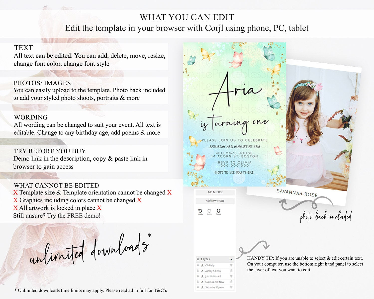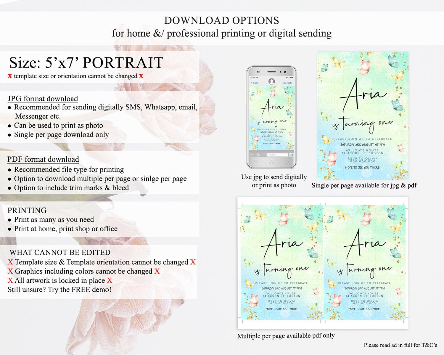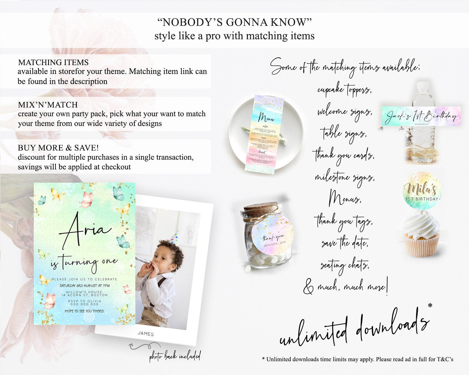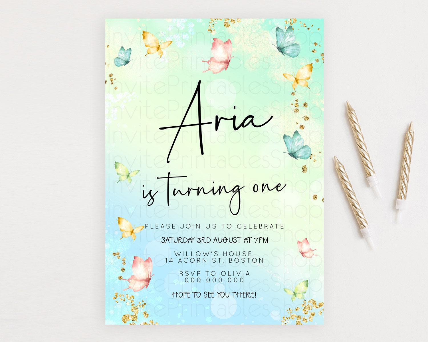 Pastel Butterfly Birthday Invitation Butterfly Birthday Invitation Whimsical Butterfly Enchanted Garden 1st 2nd Birthday Invitation D23132