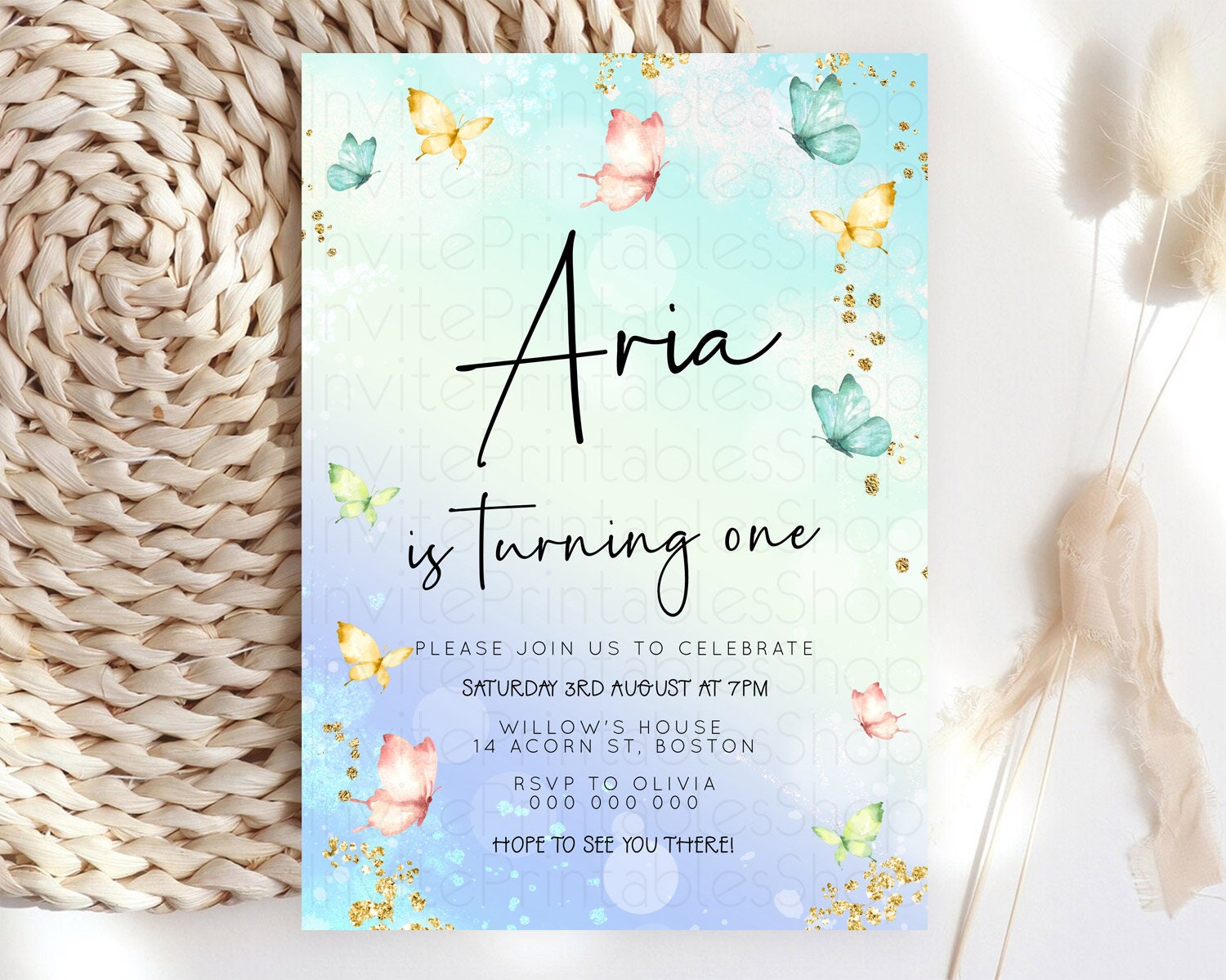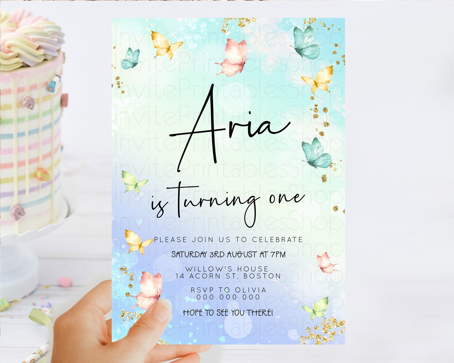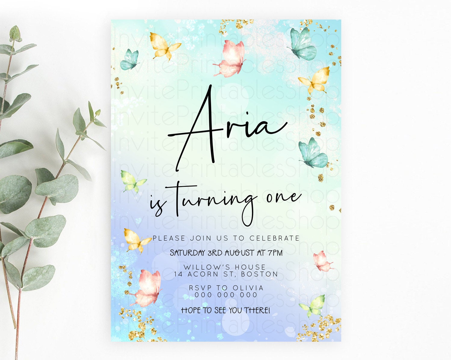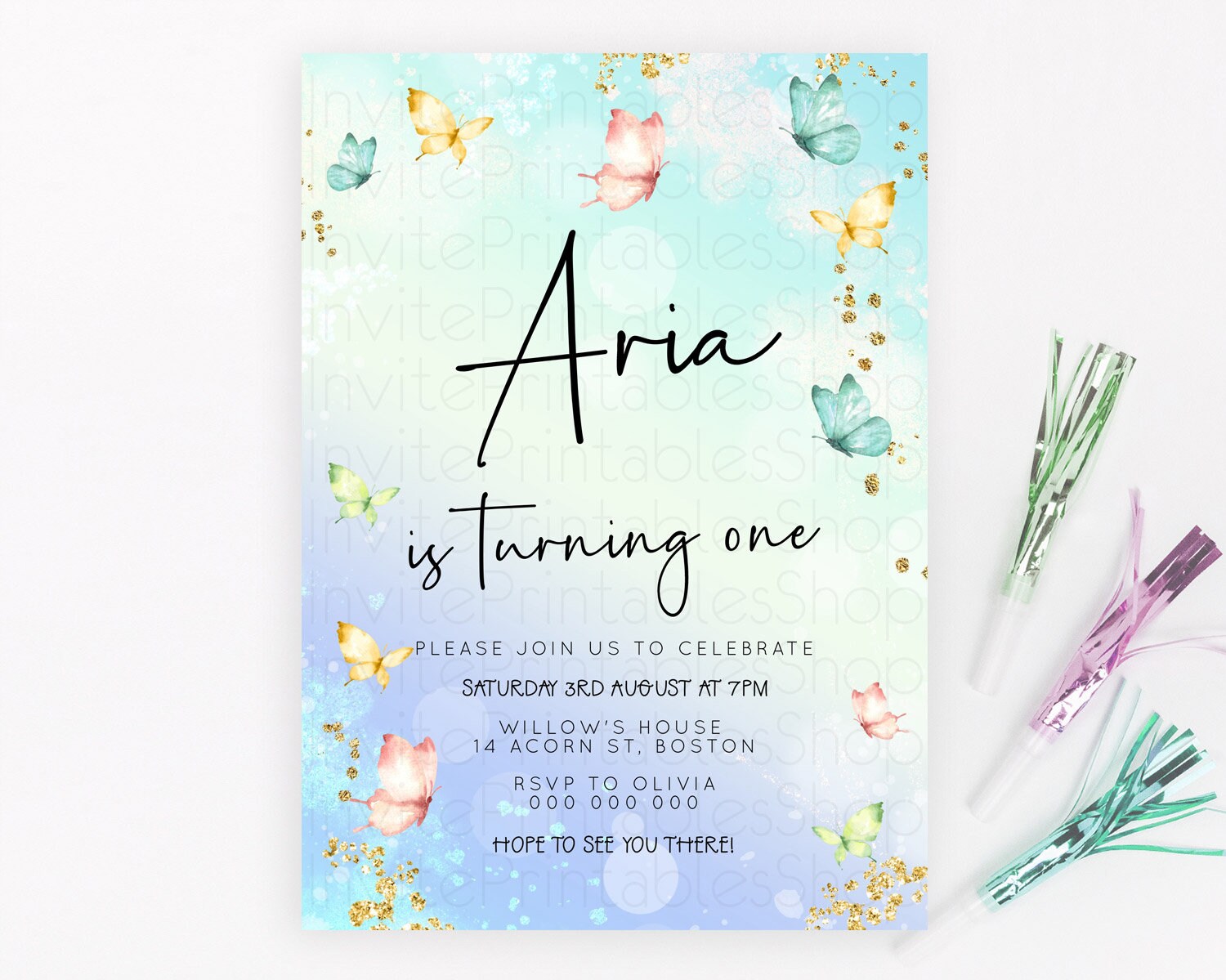 Butterfly Watercolor Birthday Invitation