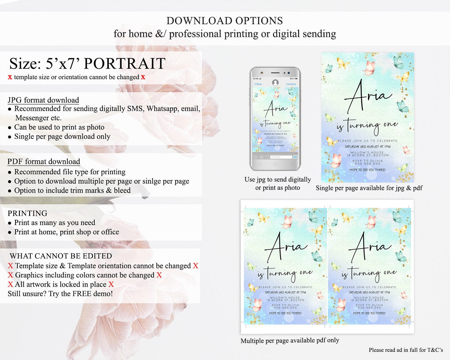 • Template size & orientation cannot be changed. Please use the demo link to confirm this product suits your needs.