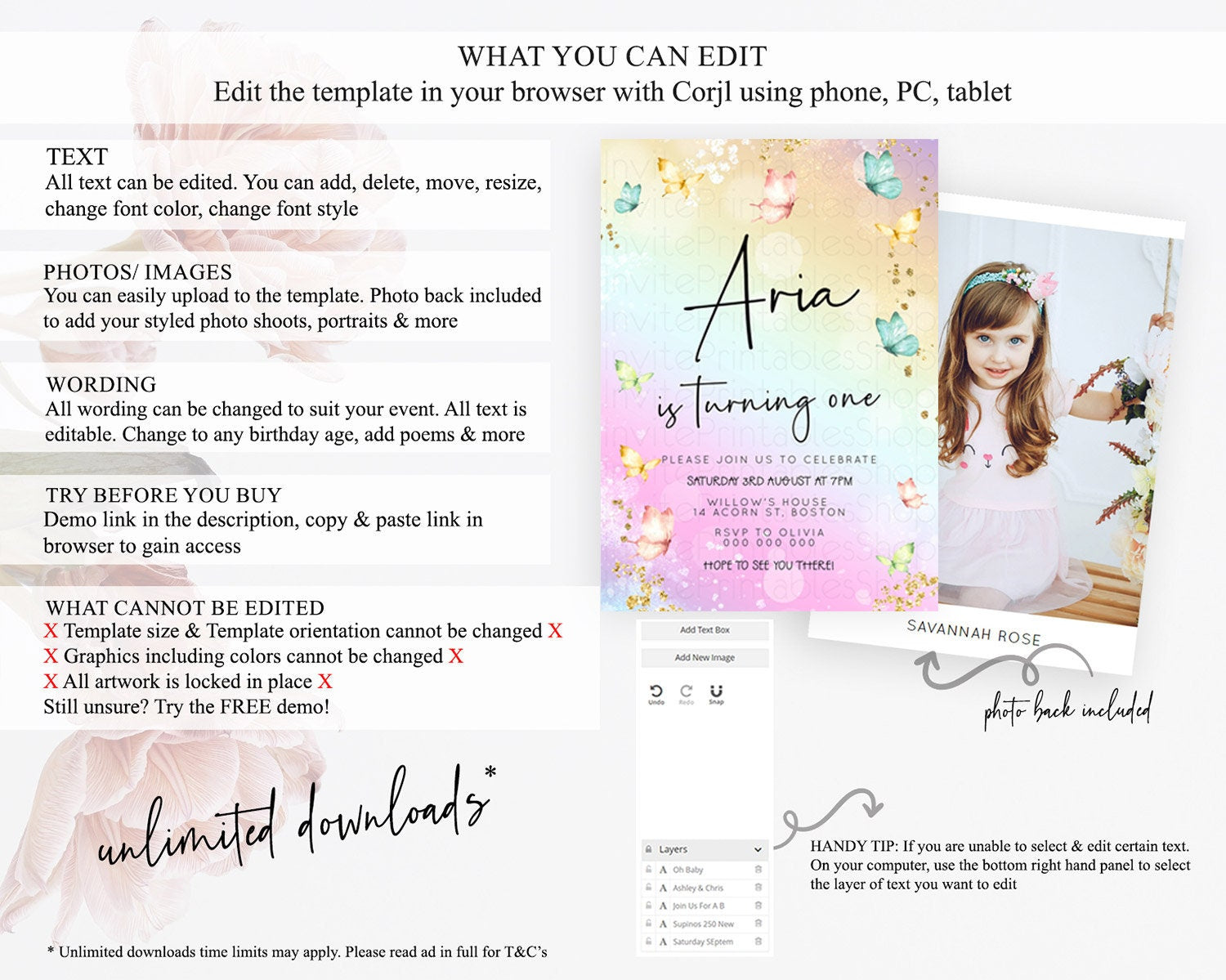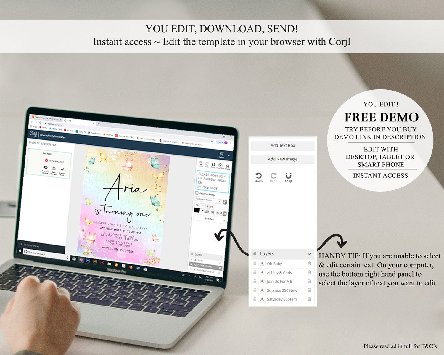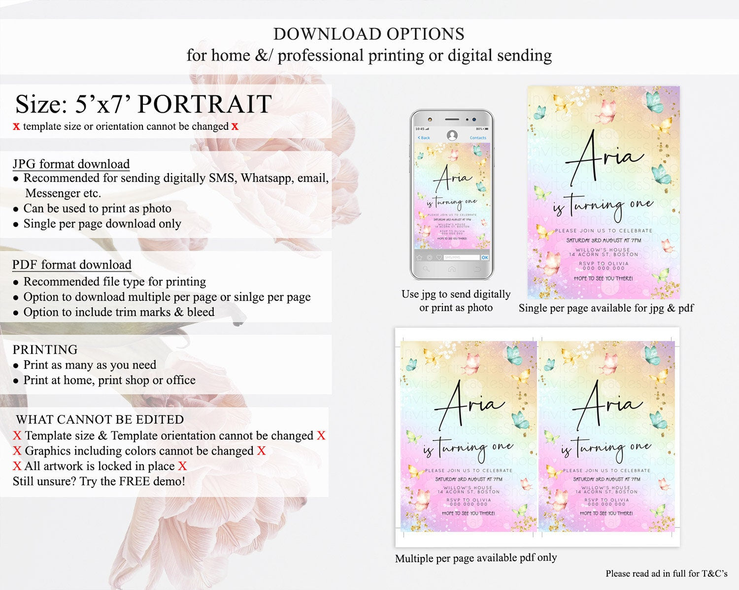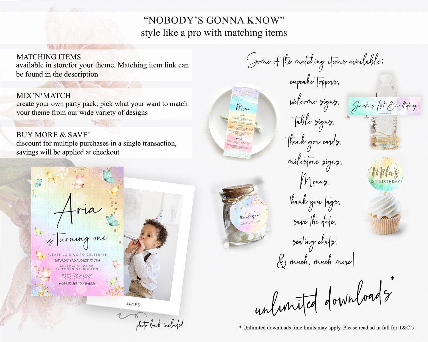 Pastel Butterfly Birthday Invitation Butterfly Birthday Invitation Whimsical Butterfly Enchanted Garden 1st 2nd Birthday Invitation D23138