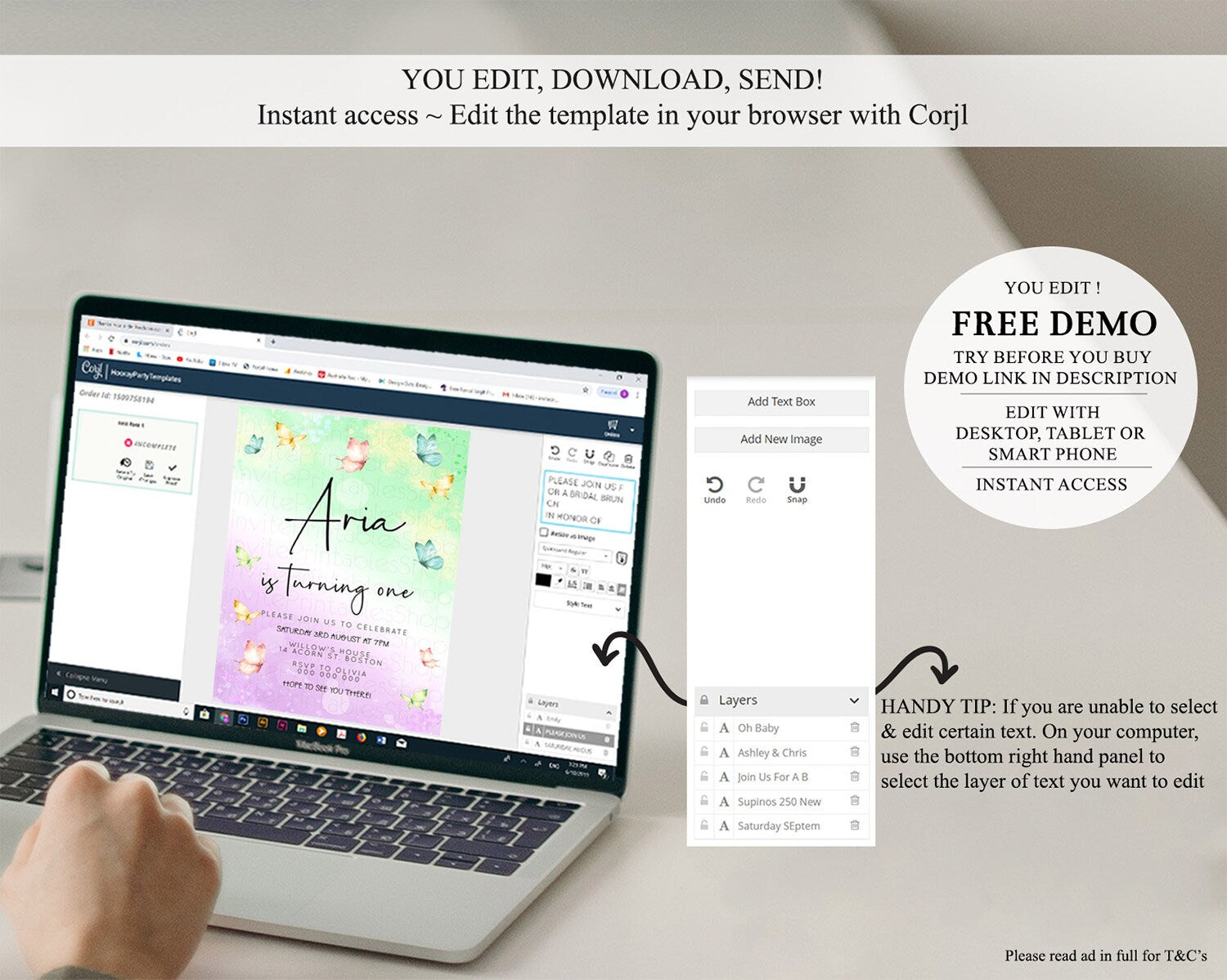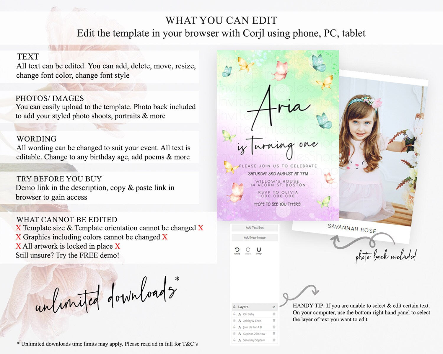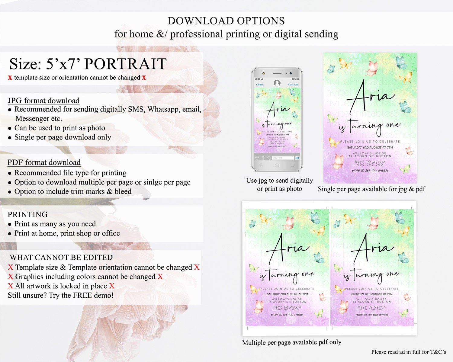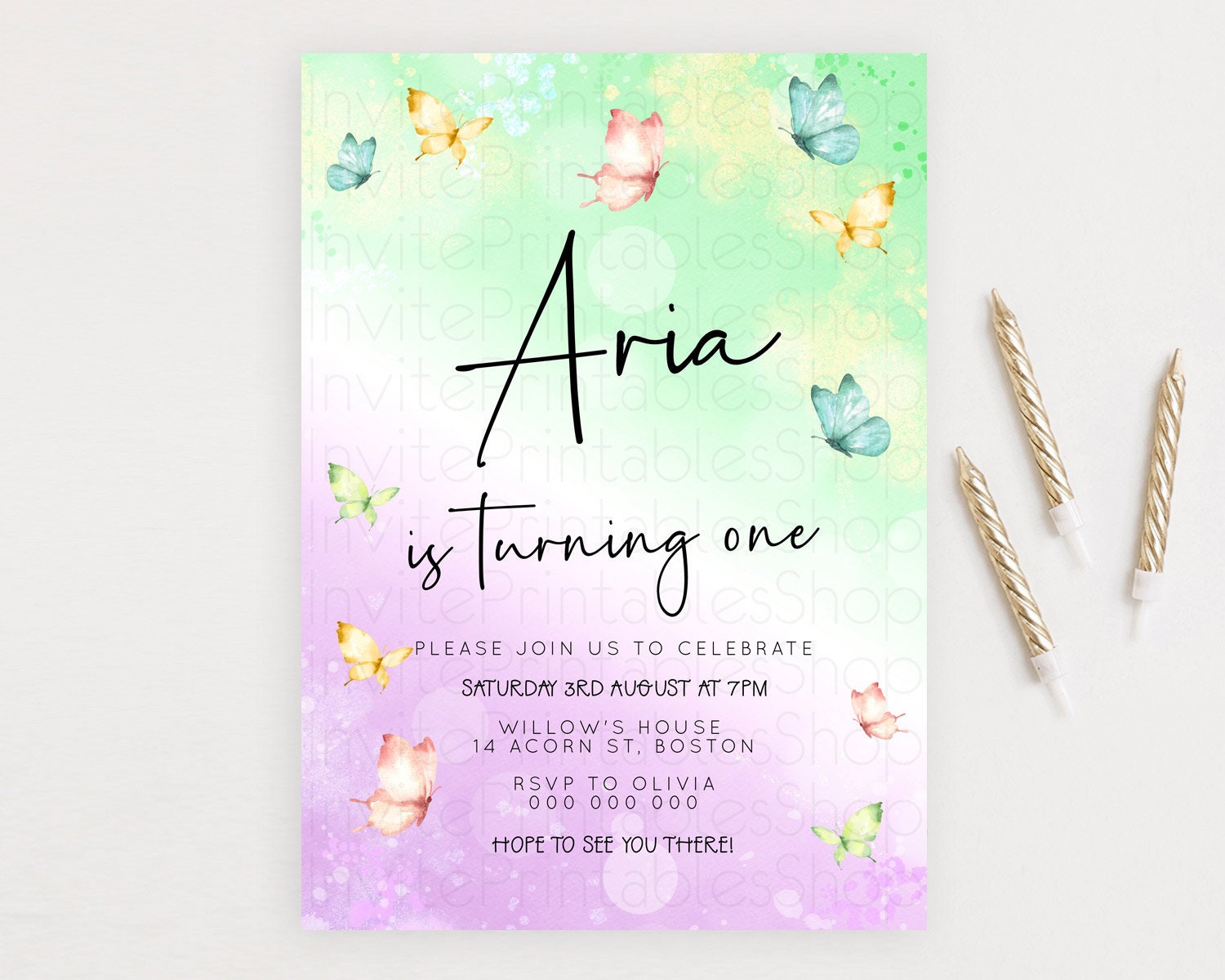 Pastel Butterfly Birthday Invitation Butterfly Birthday Invitation Whimsical Butterfly Enchanted Garden 1st 2nd Birthday Invitation D23139