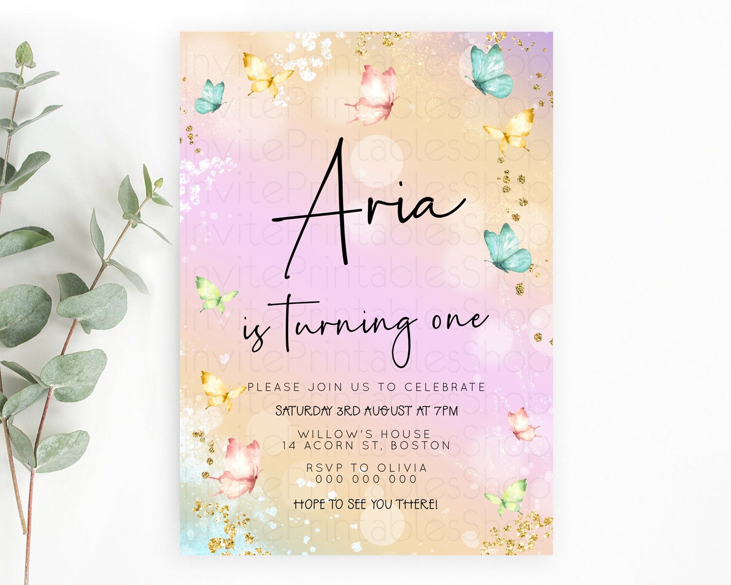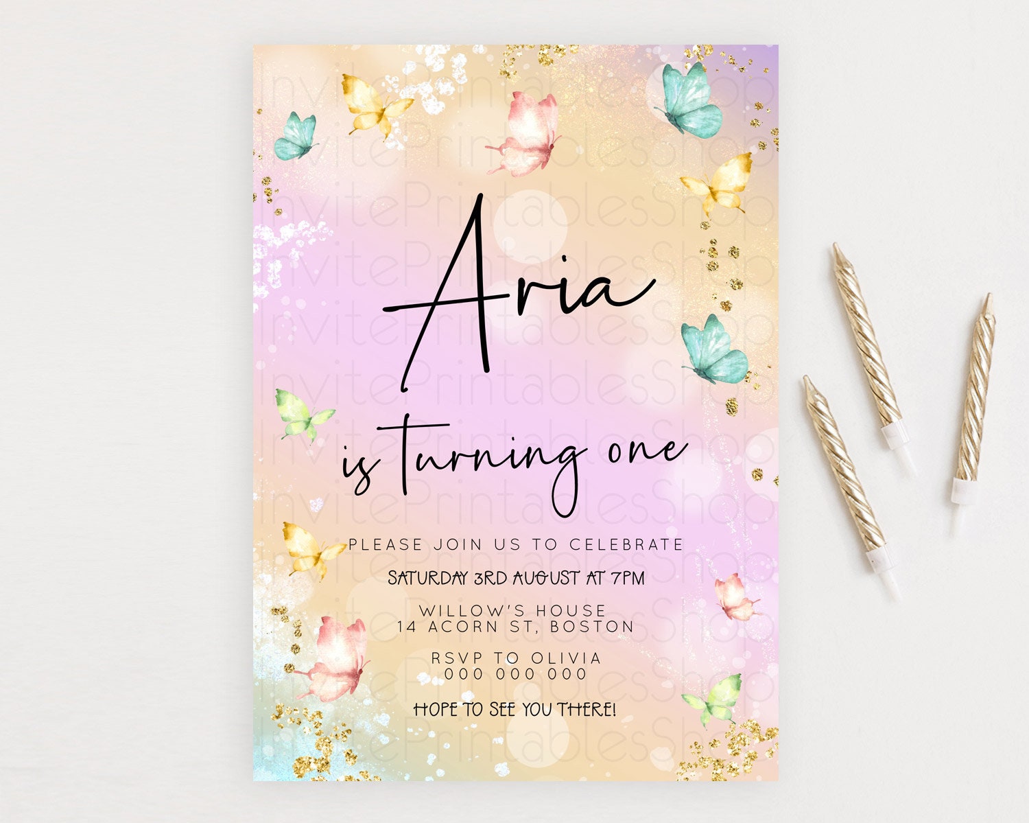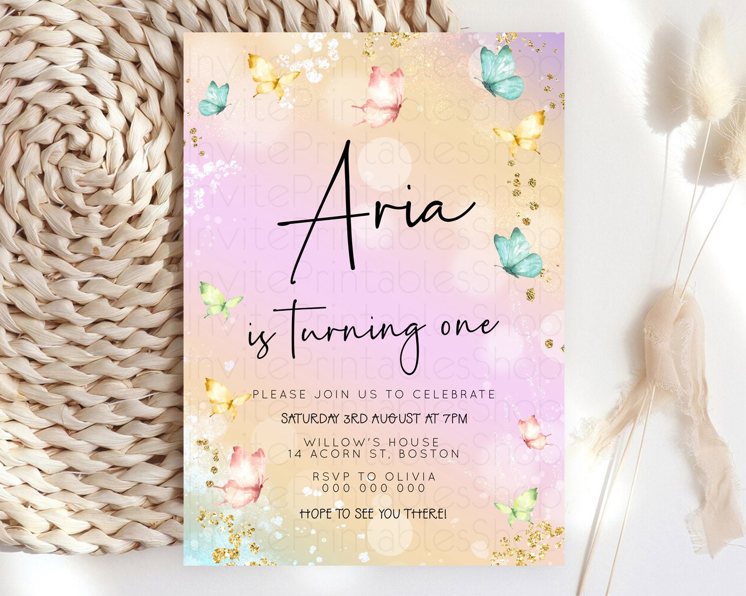 Pastel Butterfly Birthday Invitation Butterfly Birthday Invitation Whimsical Butterfly Enchanted Garden 1st 2nd Birthday Invitation D23140