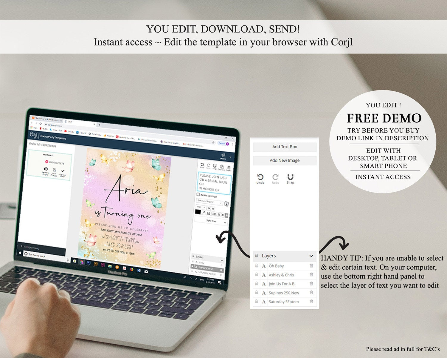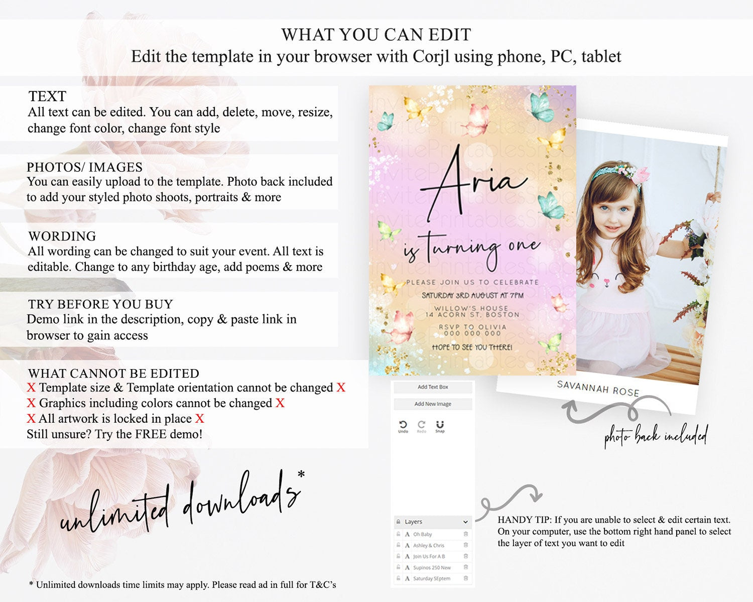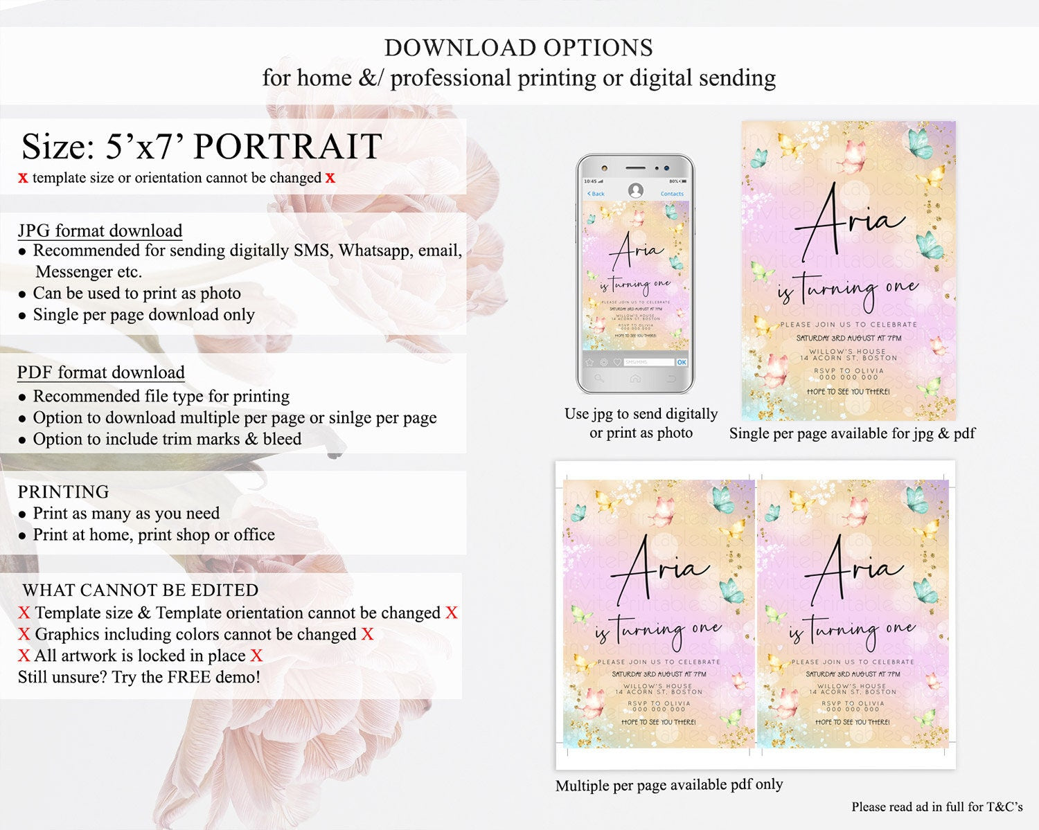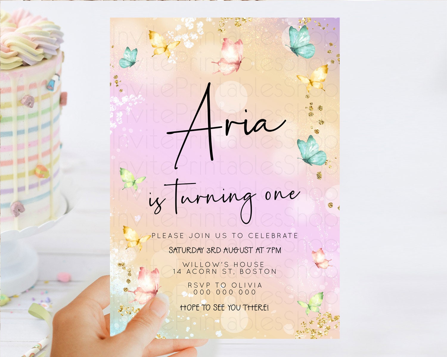 Pastel Butterfly Birthday Invitation Butterfly Birthday Invitation Whimsical Butterfly Enchanted Garden 1st 2nd Birthday Invitation D23140