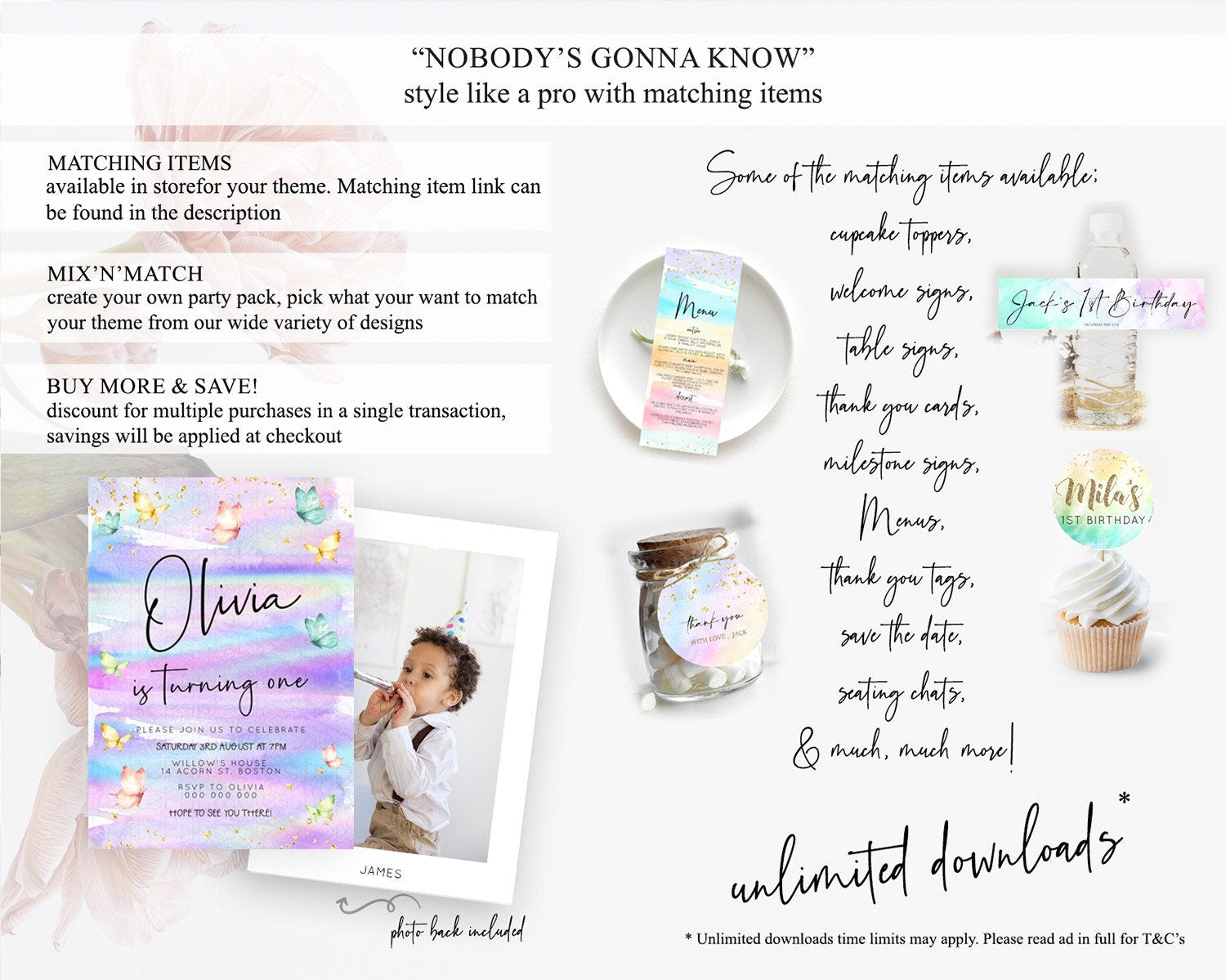 Pastel Butterfly Birthday Invitation Butterfly Birthday Invitation Whimsical Butterfly Enchanted Garden 1st 2nd Birthday Invitation D23168