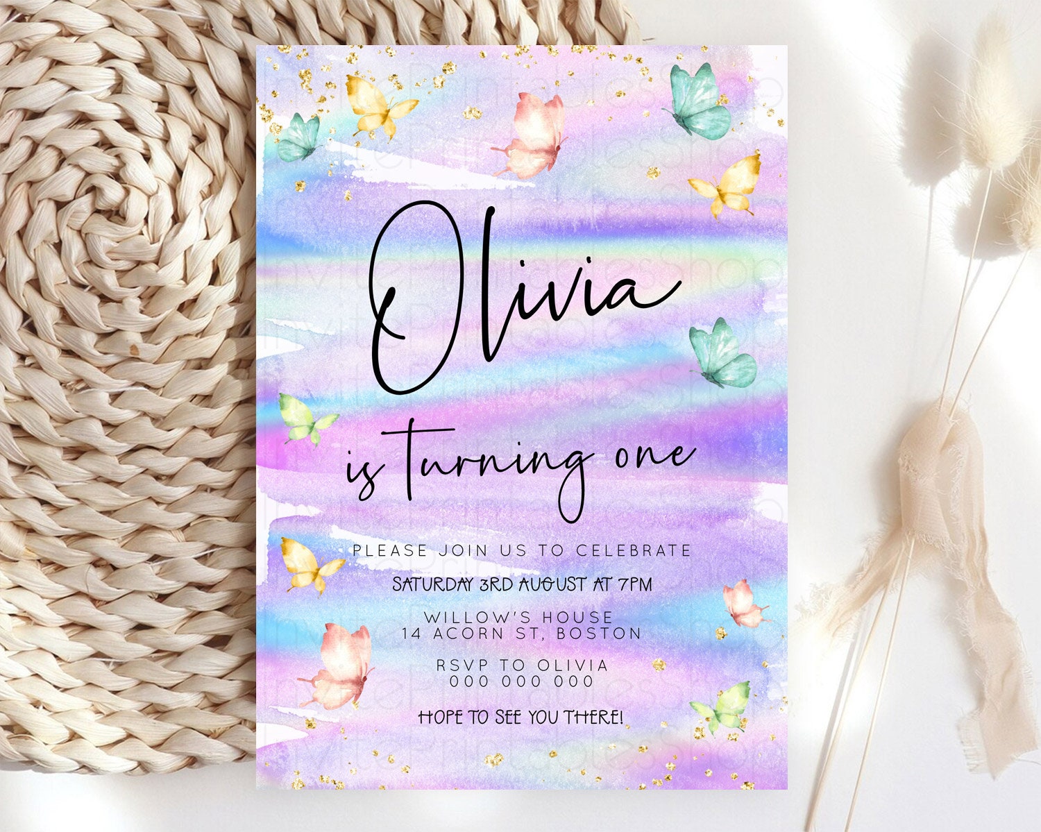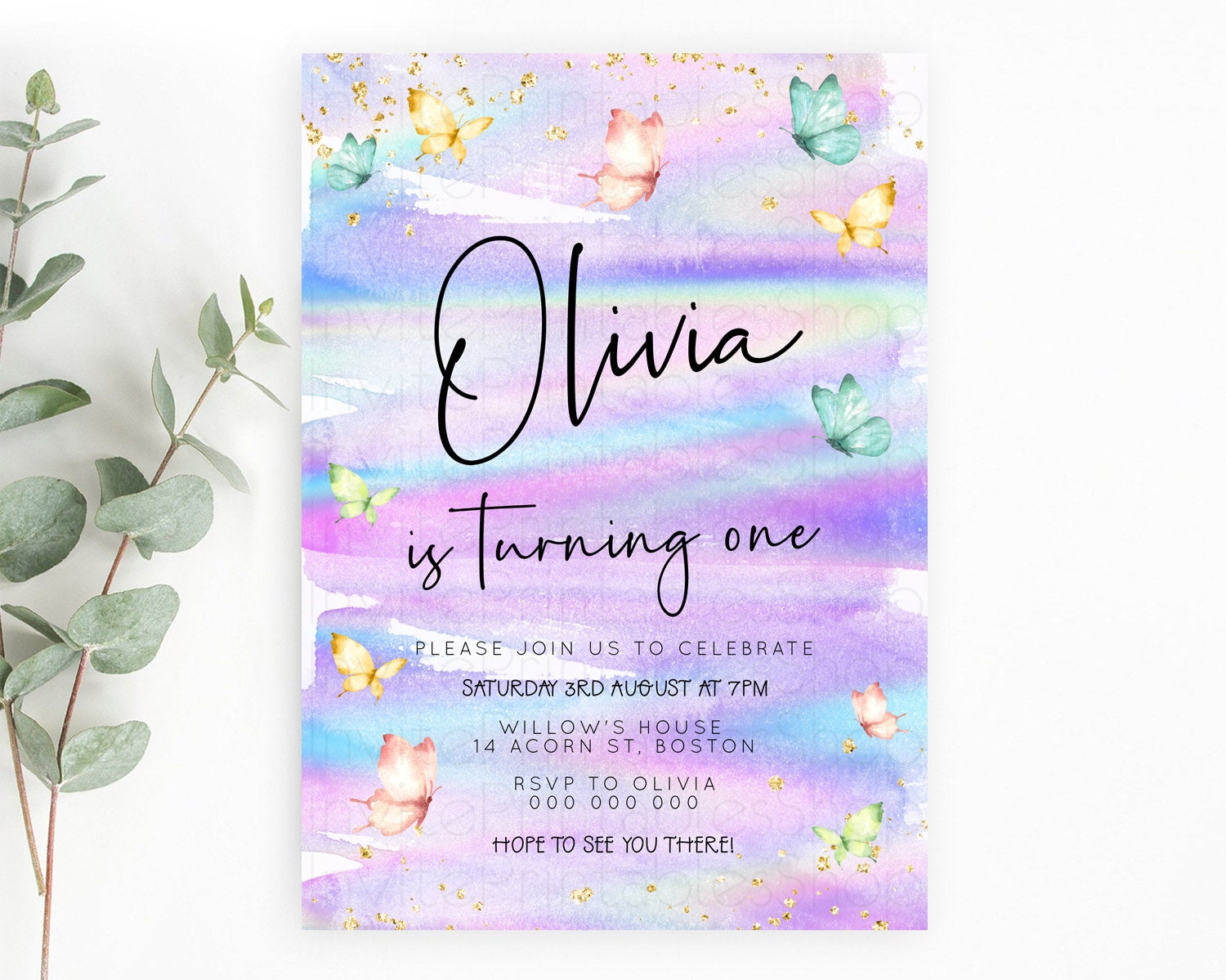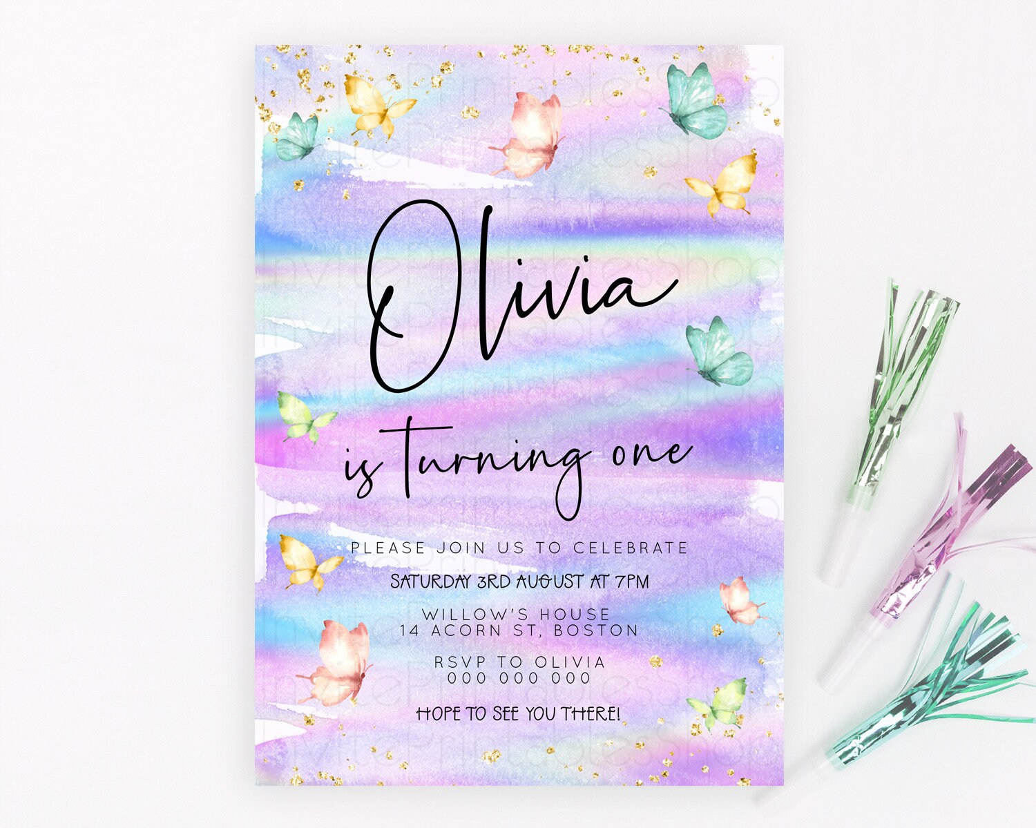 Butterfly Watercolor Birthday Invitation