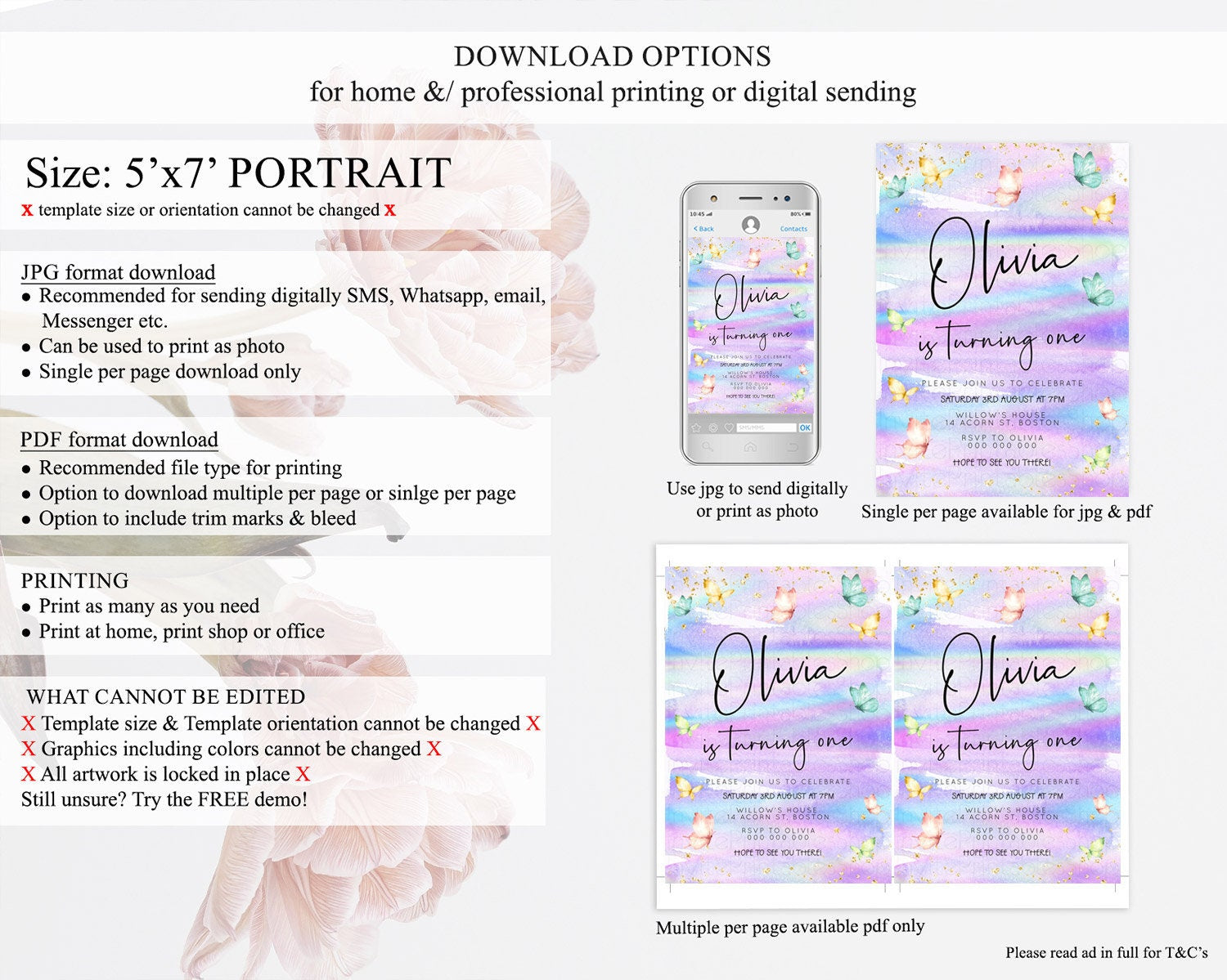• Template size & orientation cannot be changed. Please use the demo link to confirm this product suits your needs.