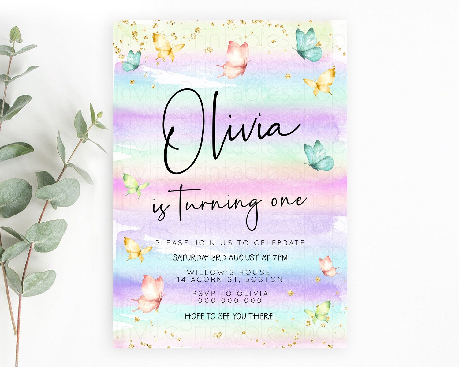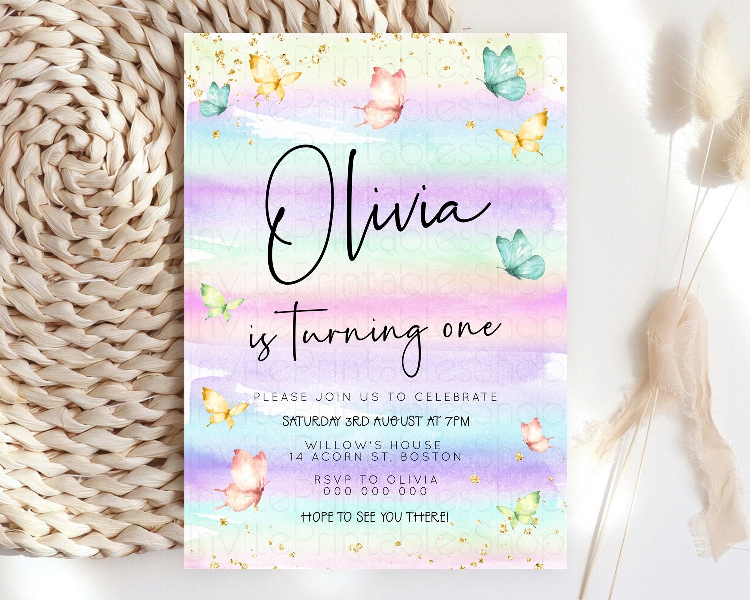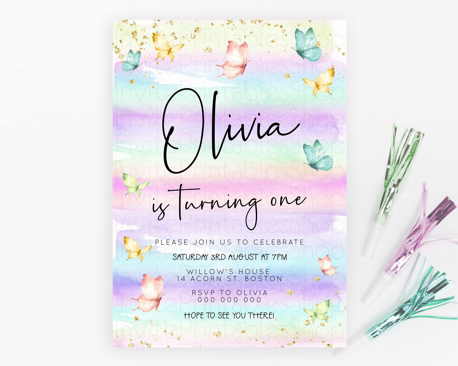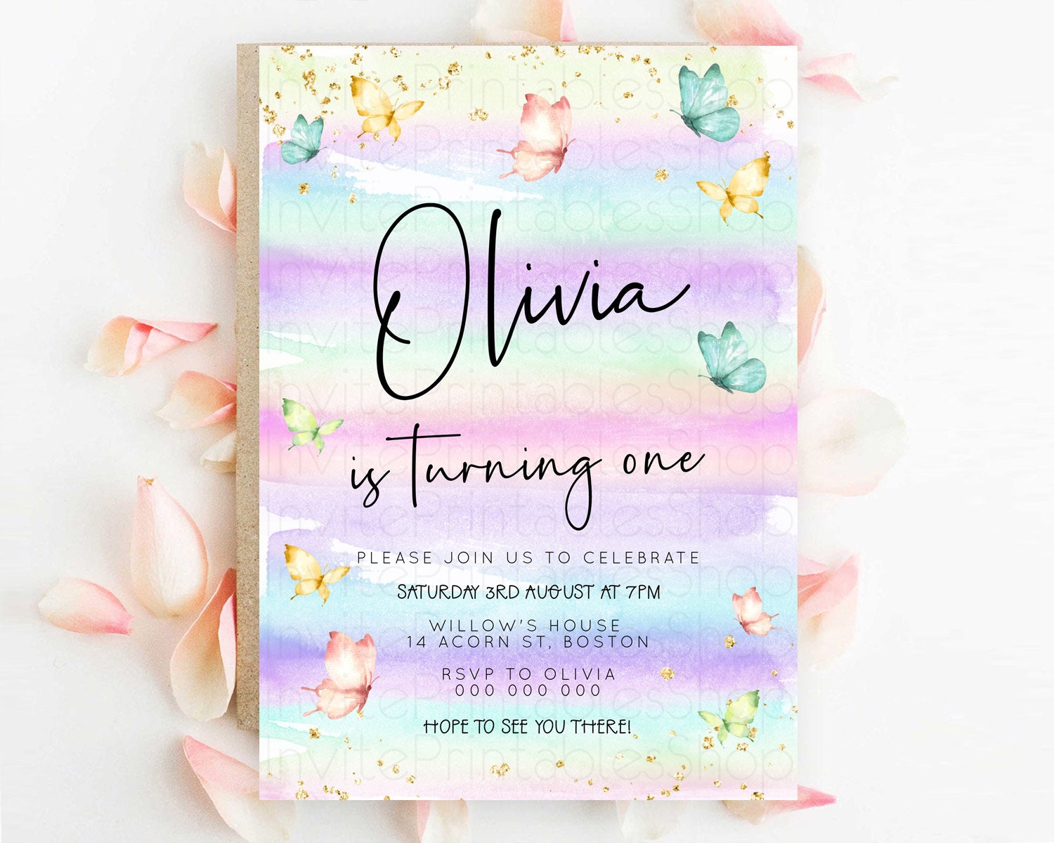 Pastel Butterfly Birthday Invitation Butterfly Birthday Invitation Whimsical Butterfly Enchanted Garden 1st 2nd Birthday Invitation D23169
