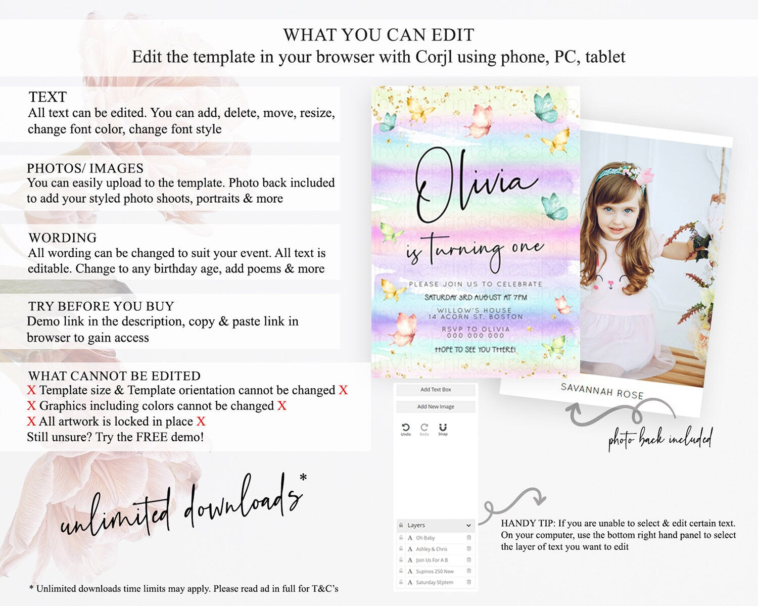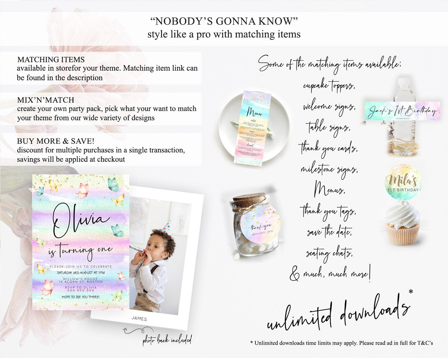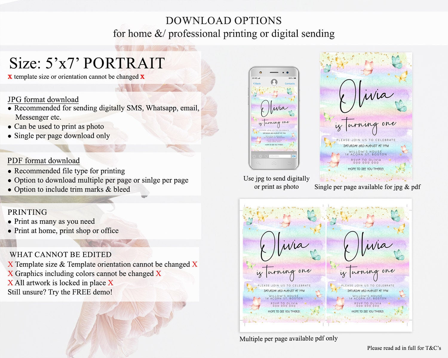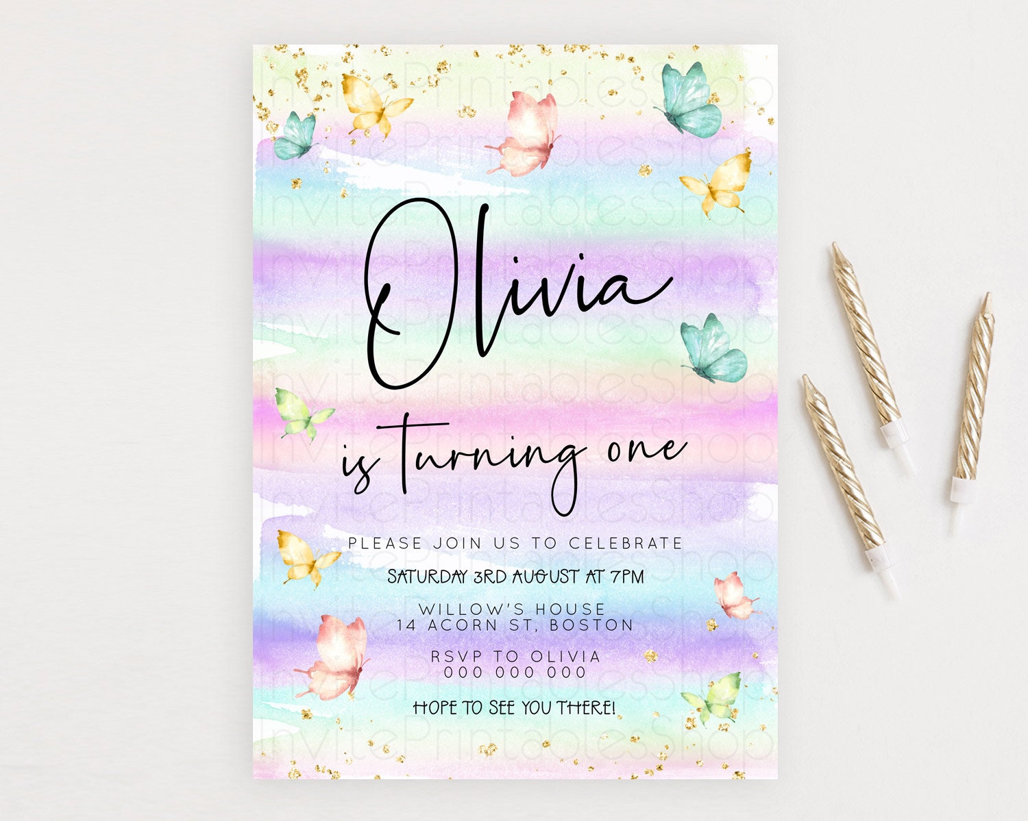 Pastel Butterfly Birthday Invitation Butterfly Birthday Invitation Whimsical Butterfly Enchanted Garden 1st 2nd Birthday Invitation D23169
