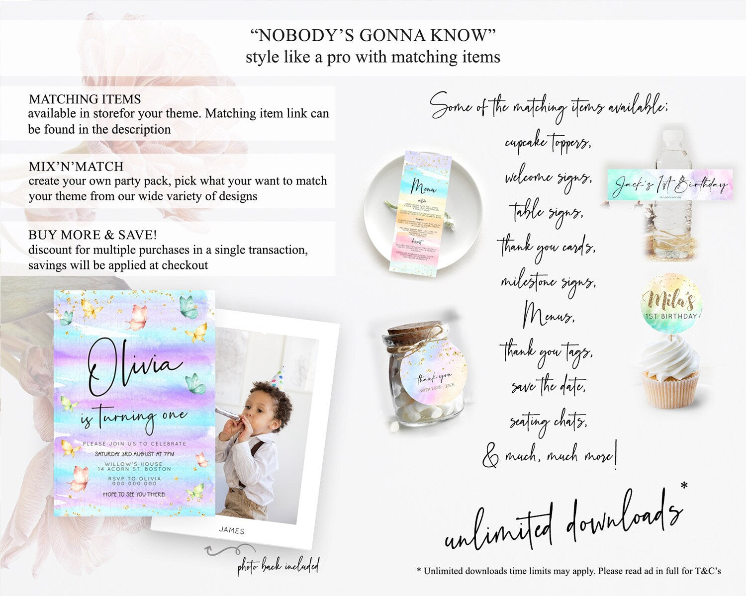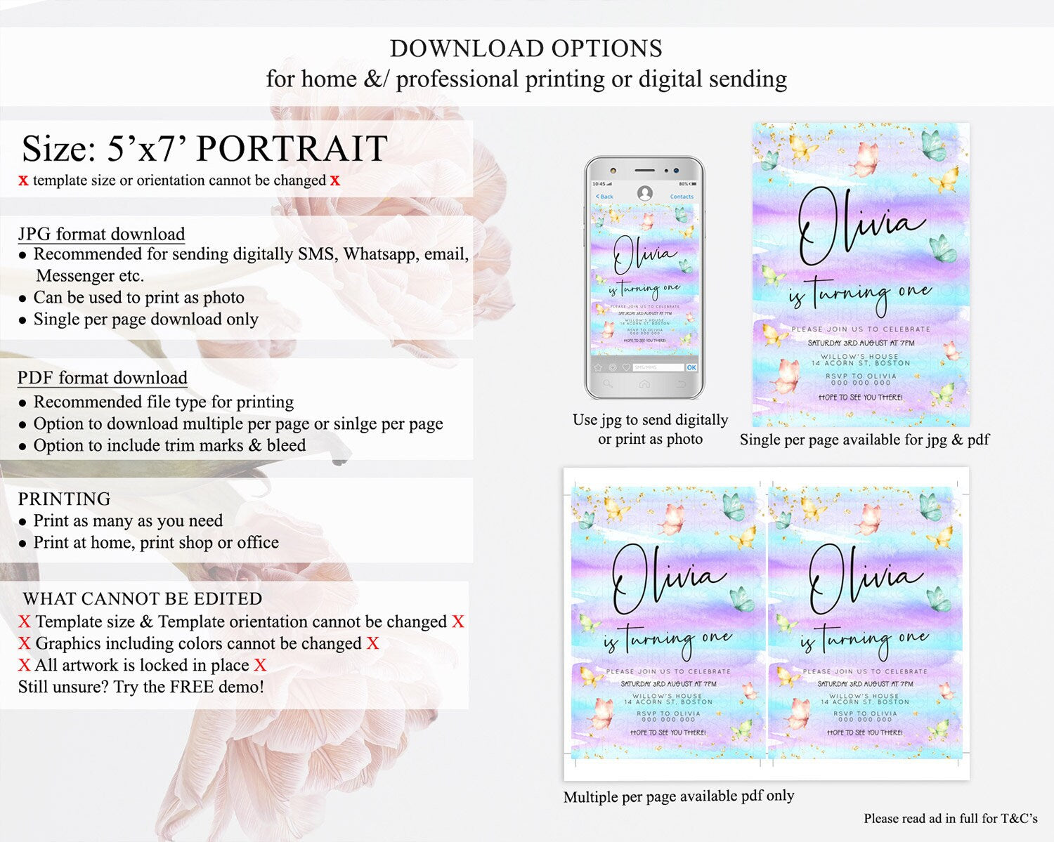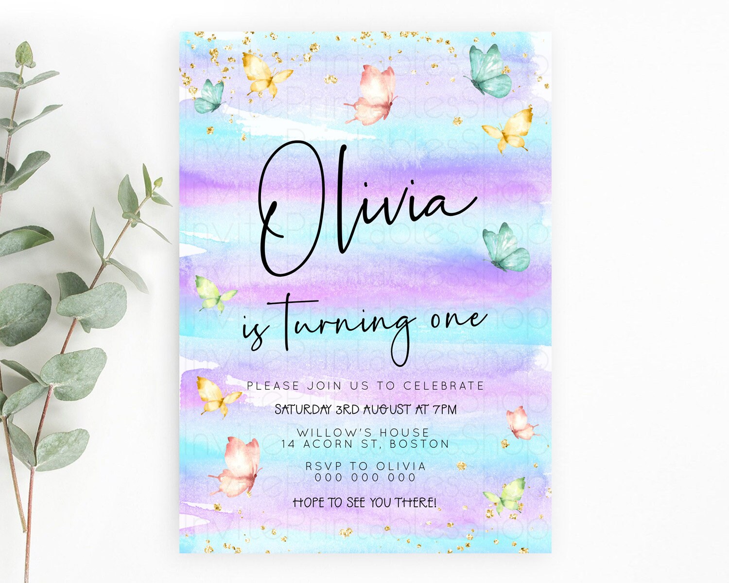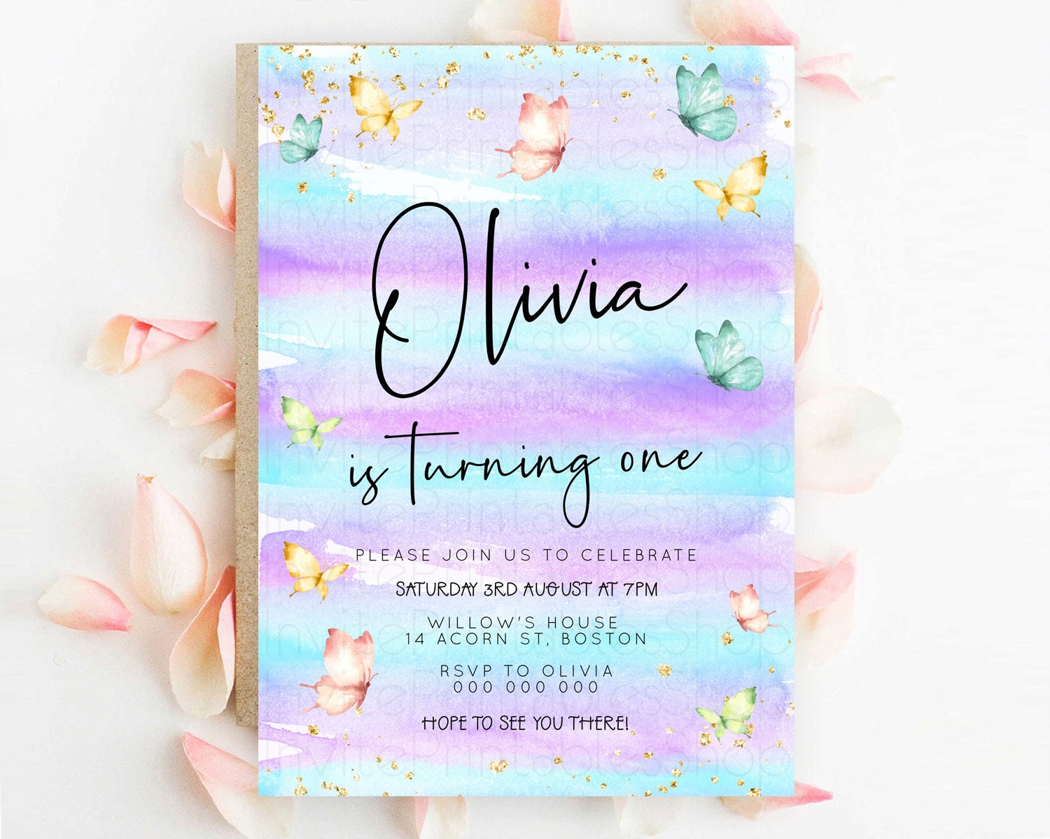 Pastel Butterfly Birthday Invitation Butterfly Birthday Invitation Whimsical Butterfly Enchanted Garden 1st 2nd Birthday Invitation D23170