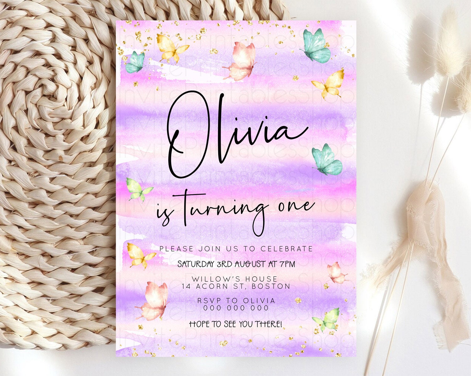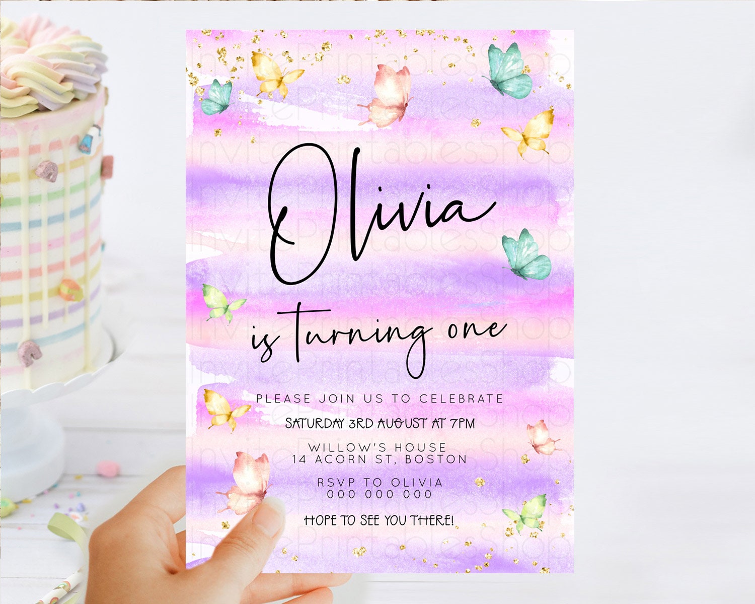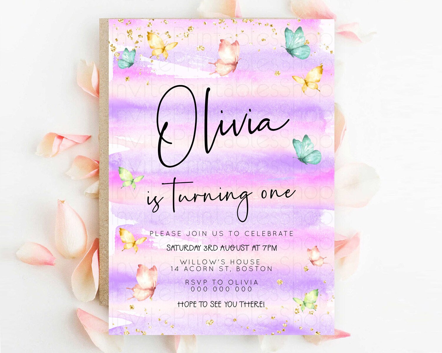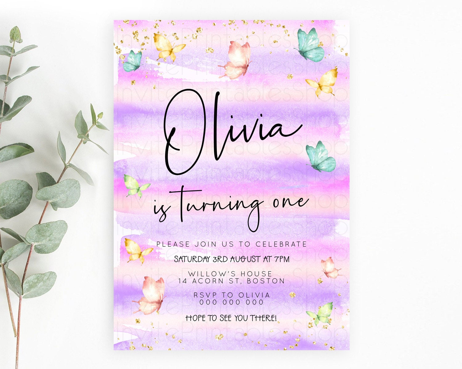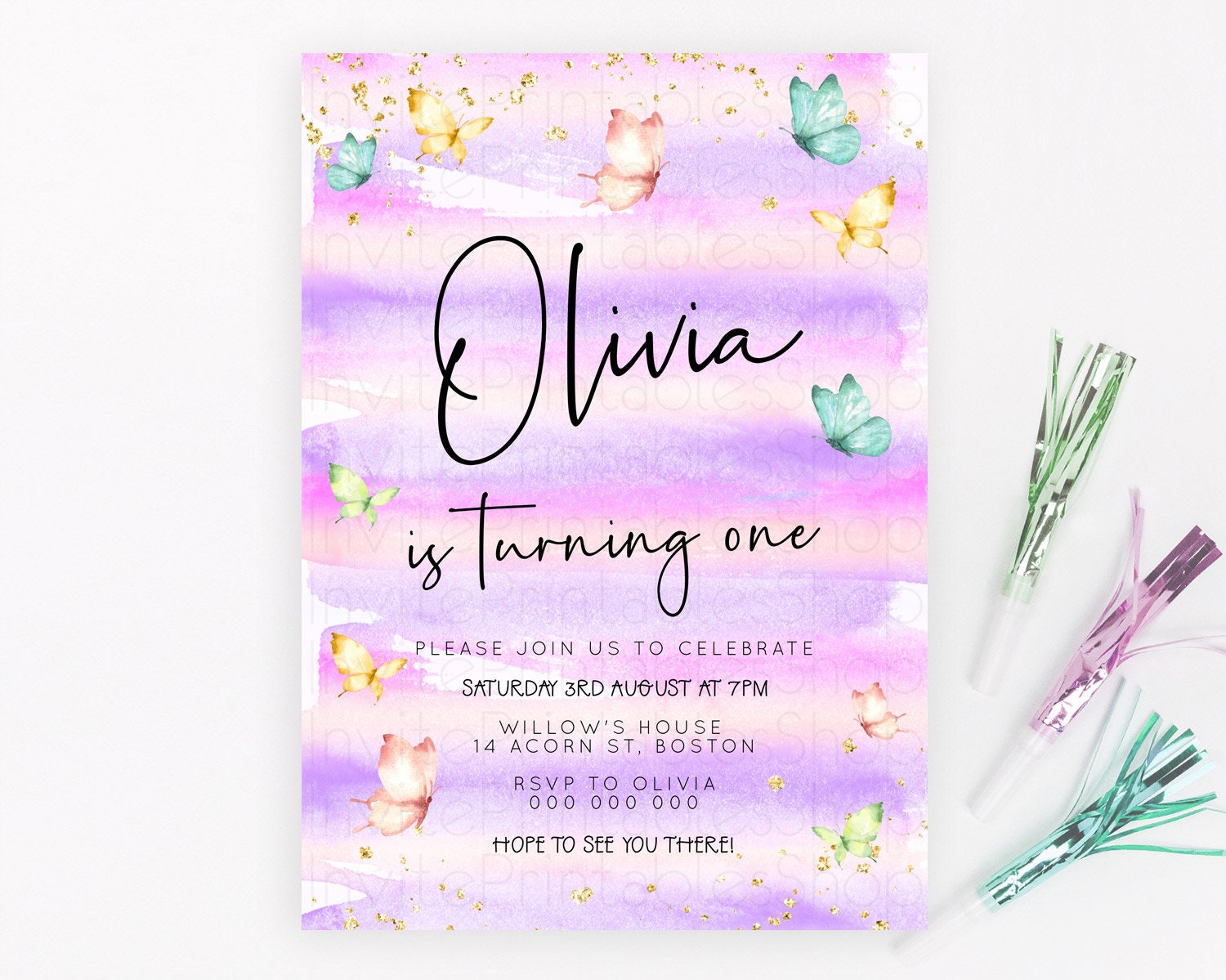 Butterfly Watercolor Birthday Invitation