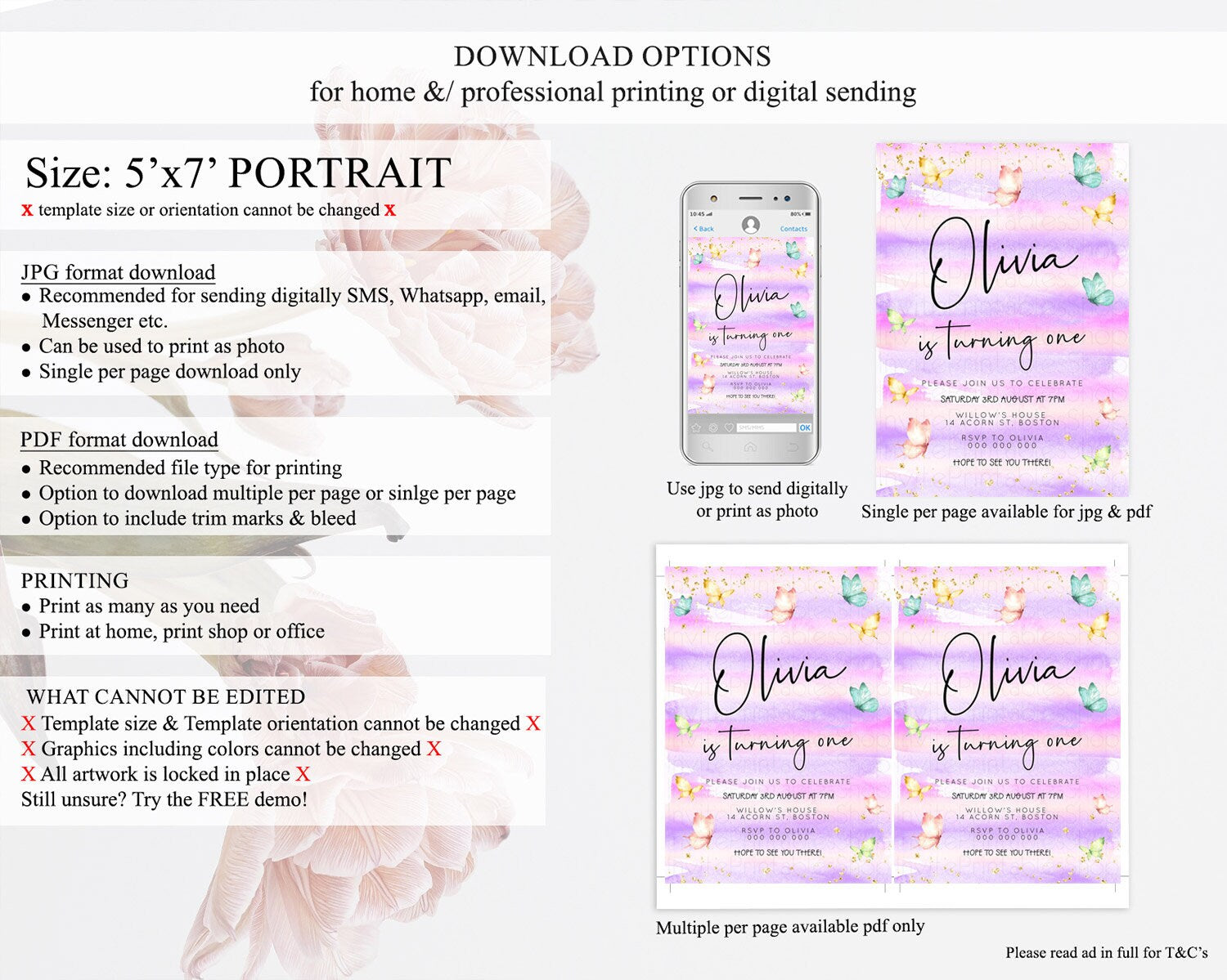 • Template size & orientation cannot be changed. Please use the demo link to confirm this product suits your needs.
