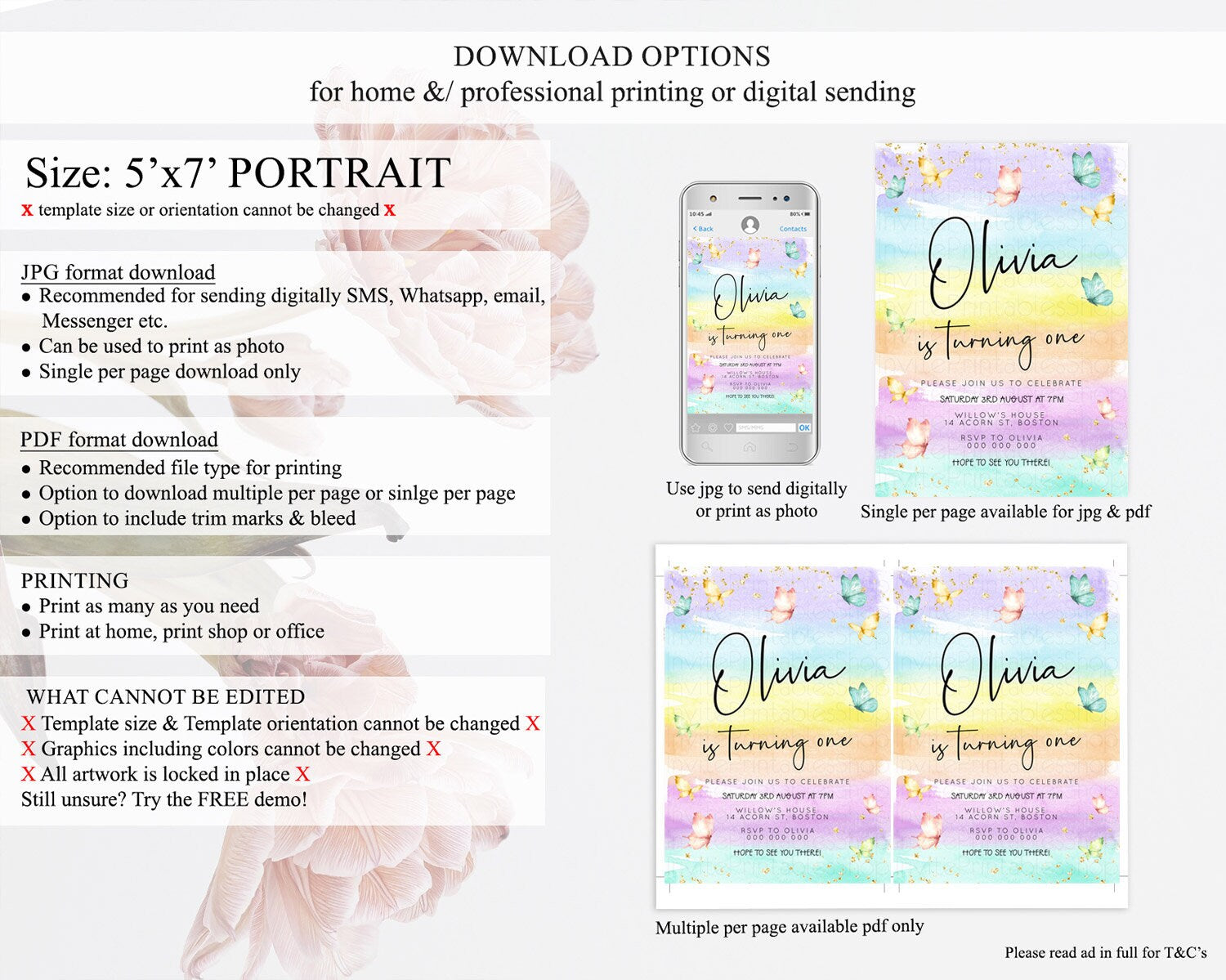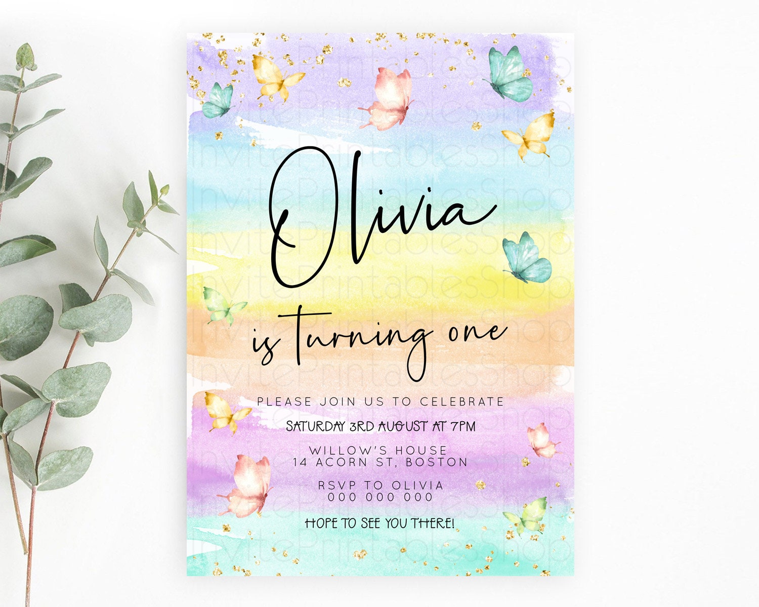 Pastel Butterfly Birthday Invitation Butterfly Birthday Invitation Whimsical Butterfly Enchanted Garden 1st 2nd Birthday Invitation D23174