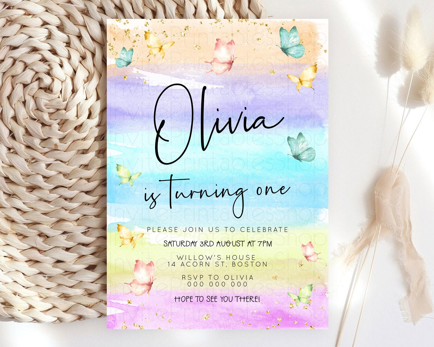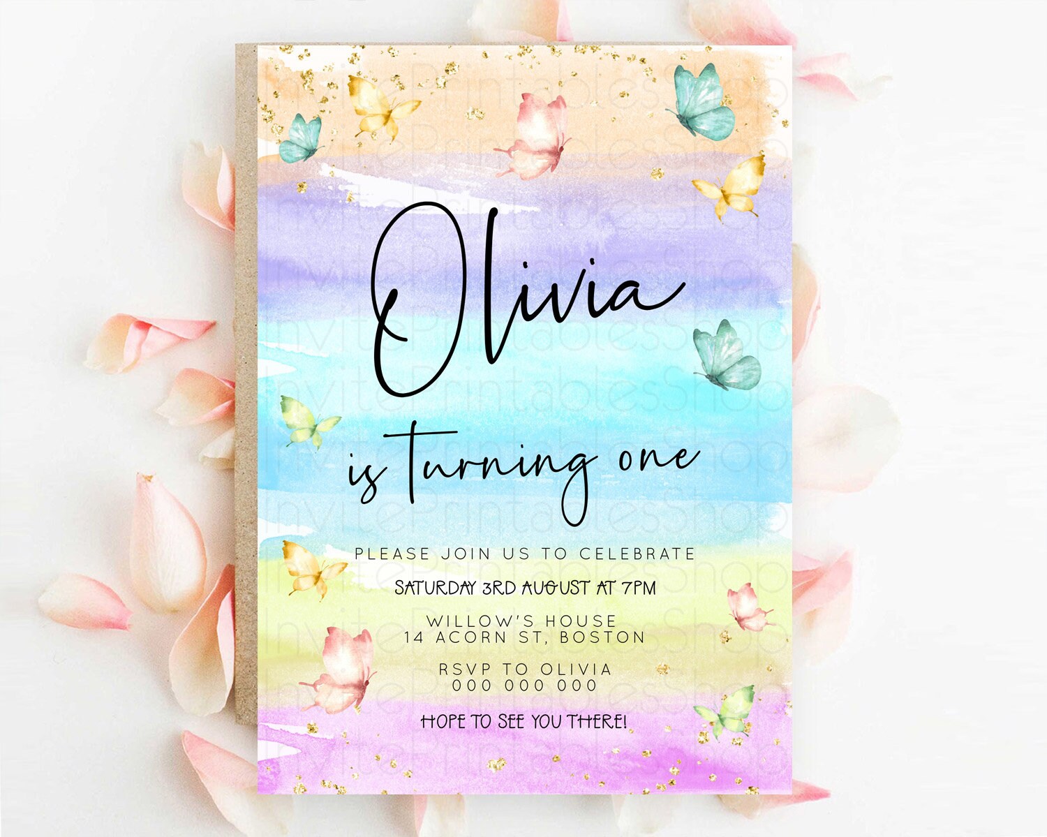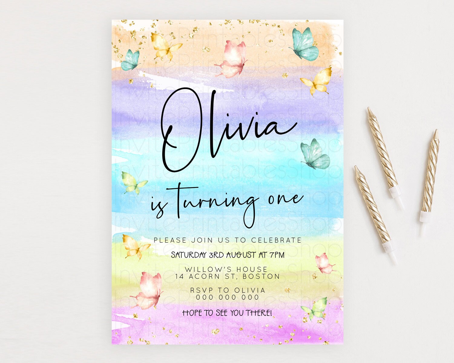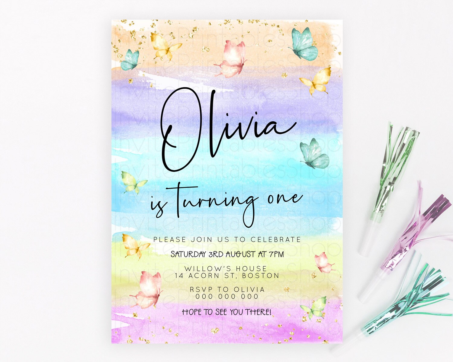 Butterfly Watercolor Birthday Invitation