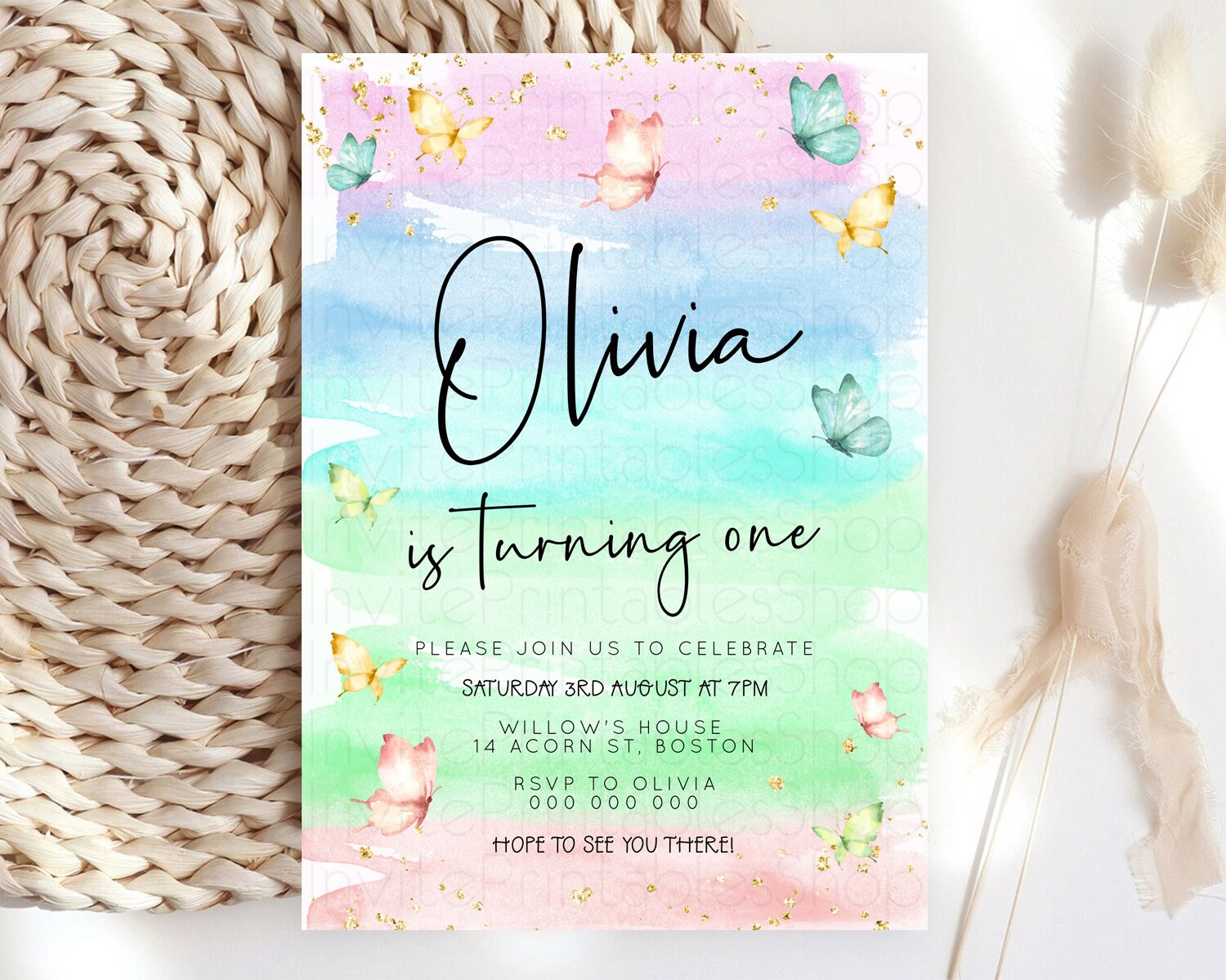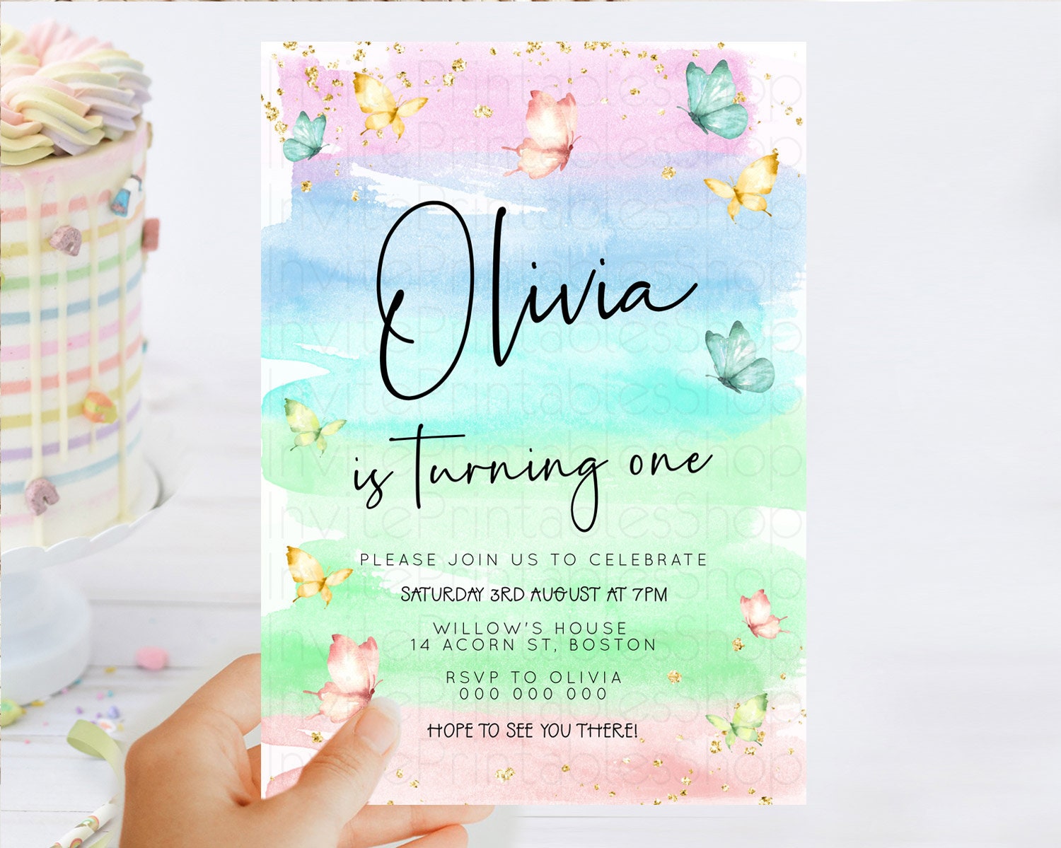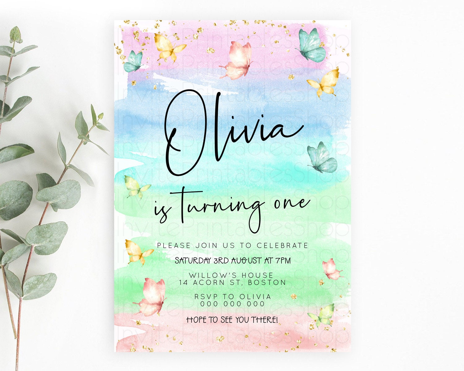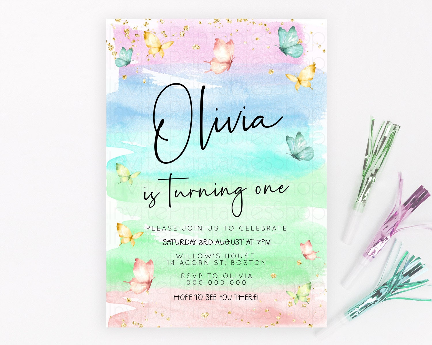 Pastel Butterfly Birthday Invitation Butterfly Birthday Invitation Whimsical Butterfly Enchanted Garden 1st 2nd Birthday Invitation D23179