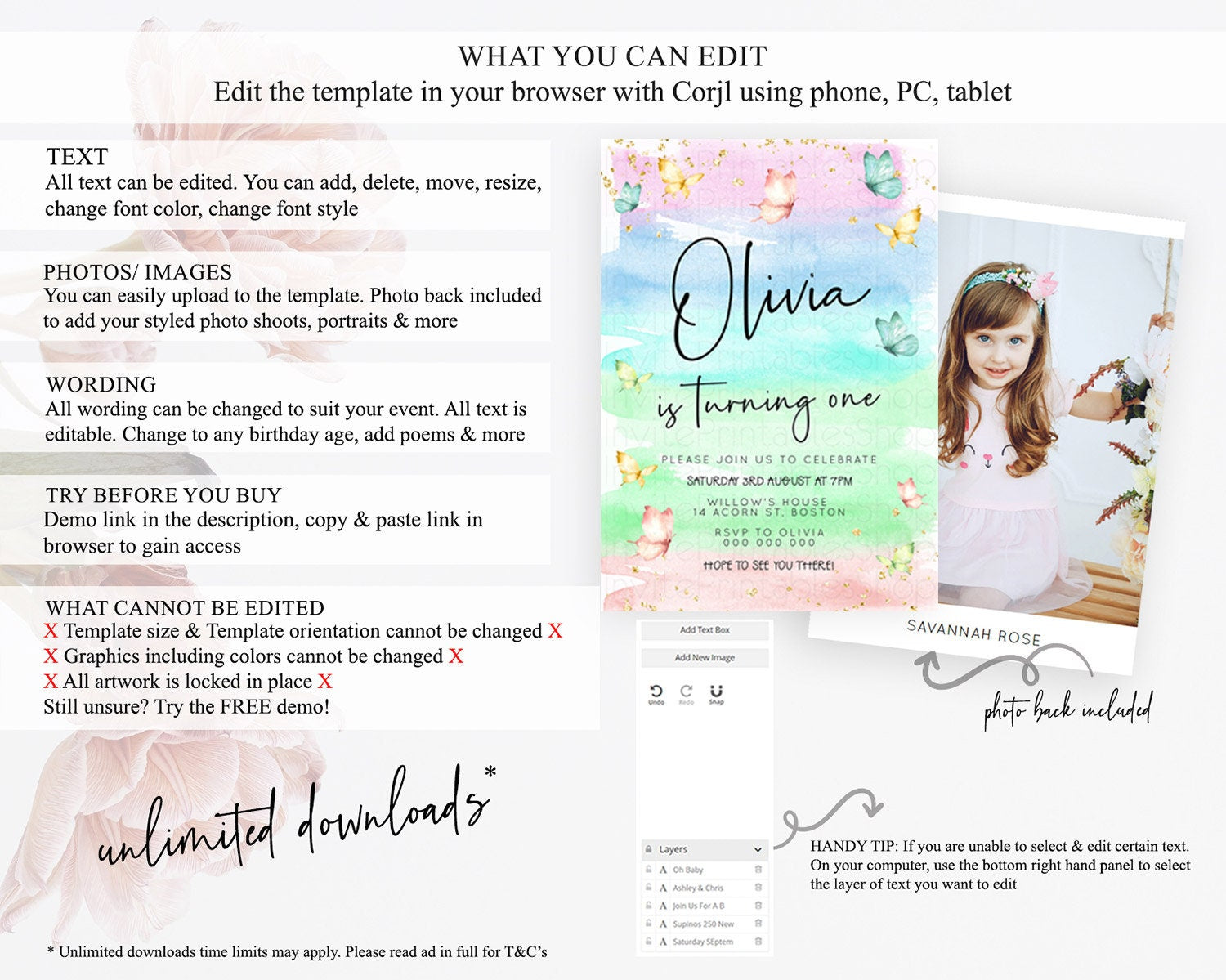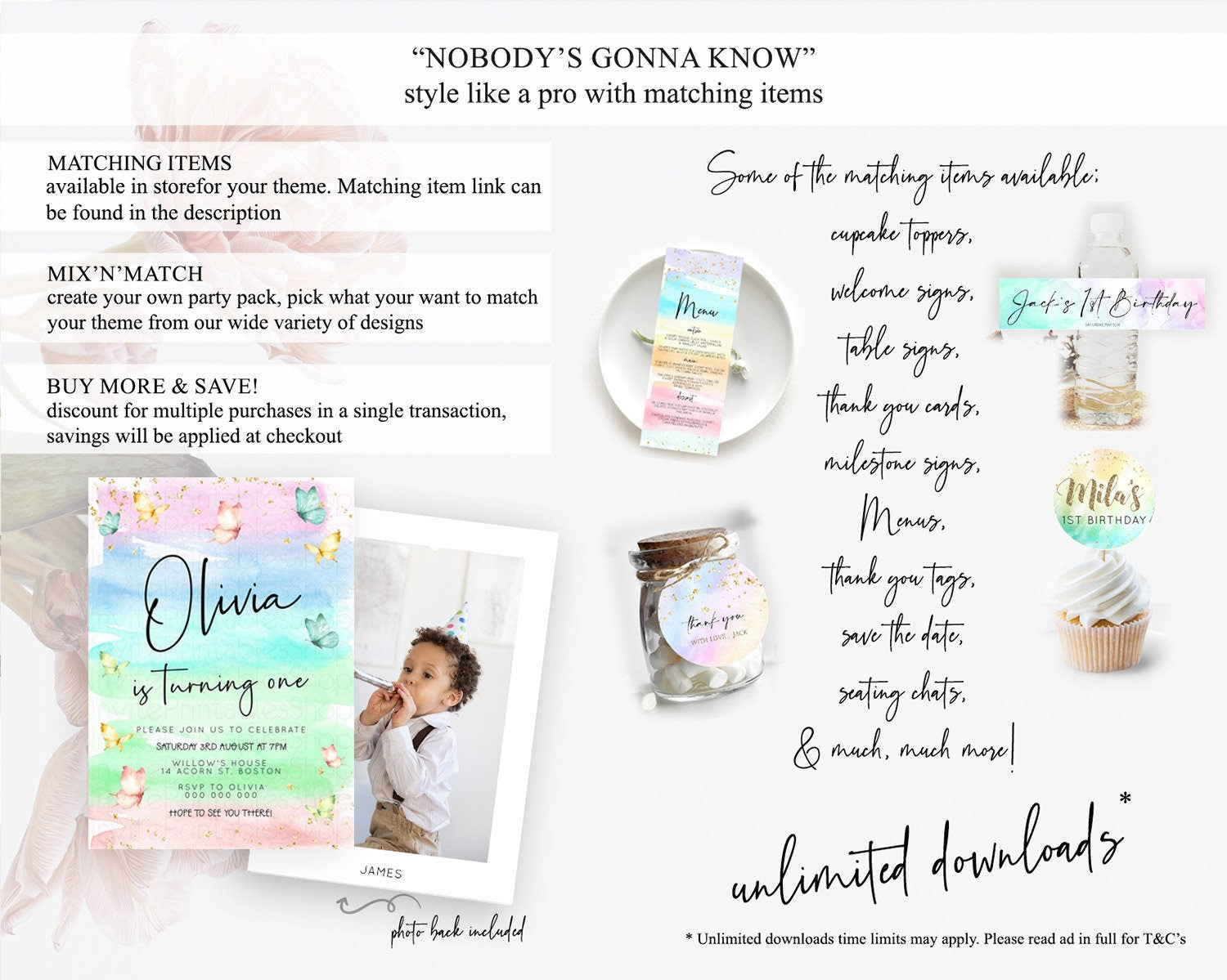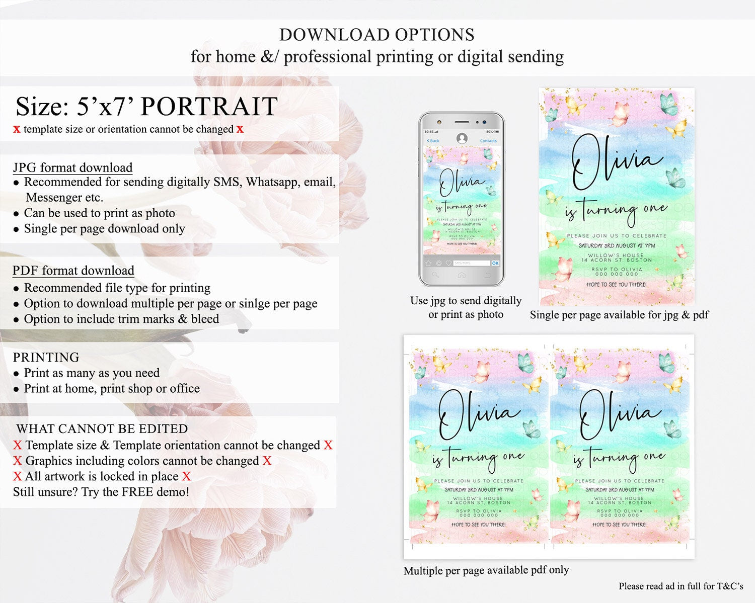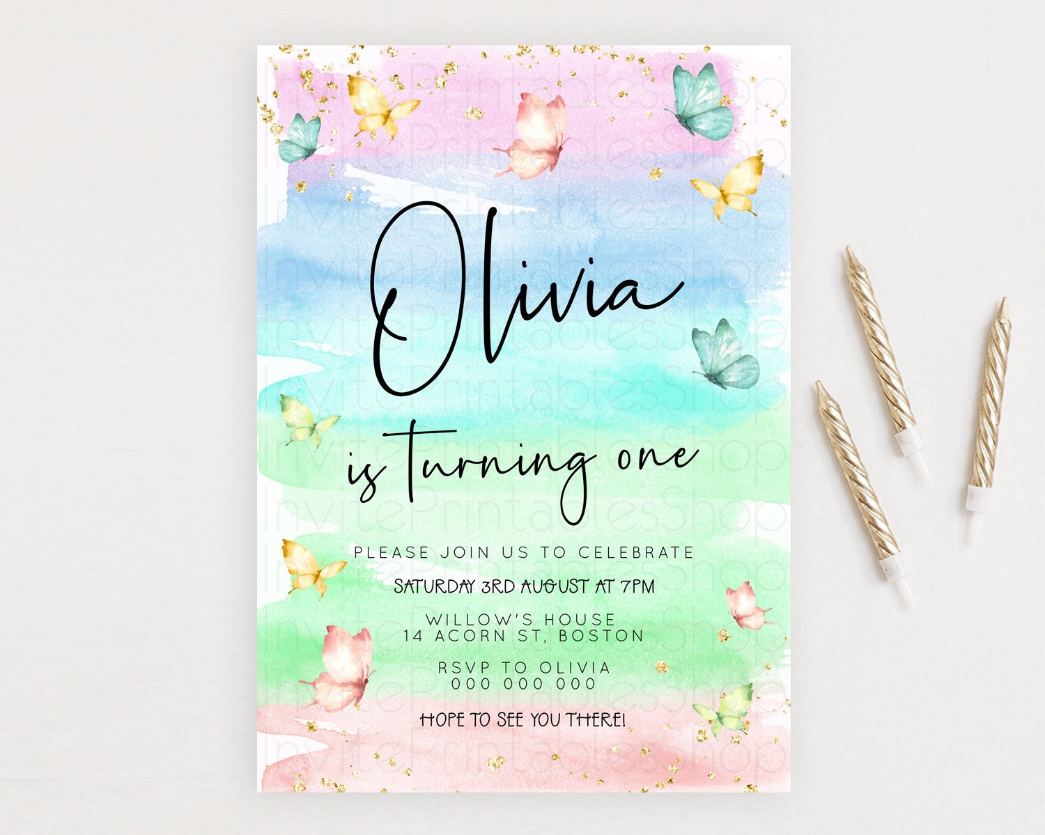 Pastel Butterfly Birthday Invitation Butterfly Birthday Invitation Whimsical Butterfly Enchanted Garden 1st 2nd Birthday Invitation D23179