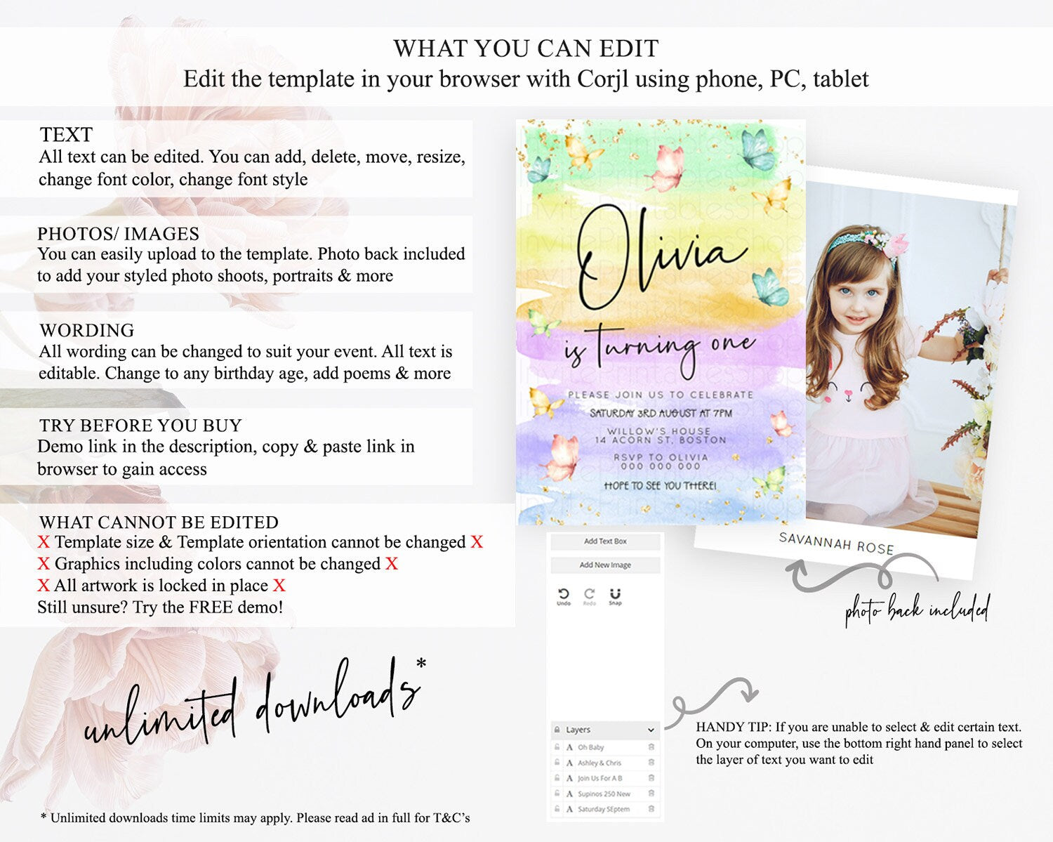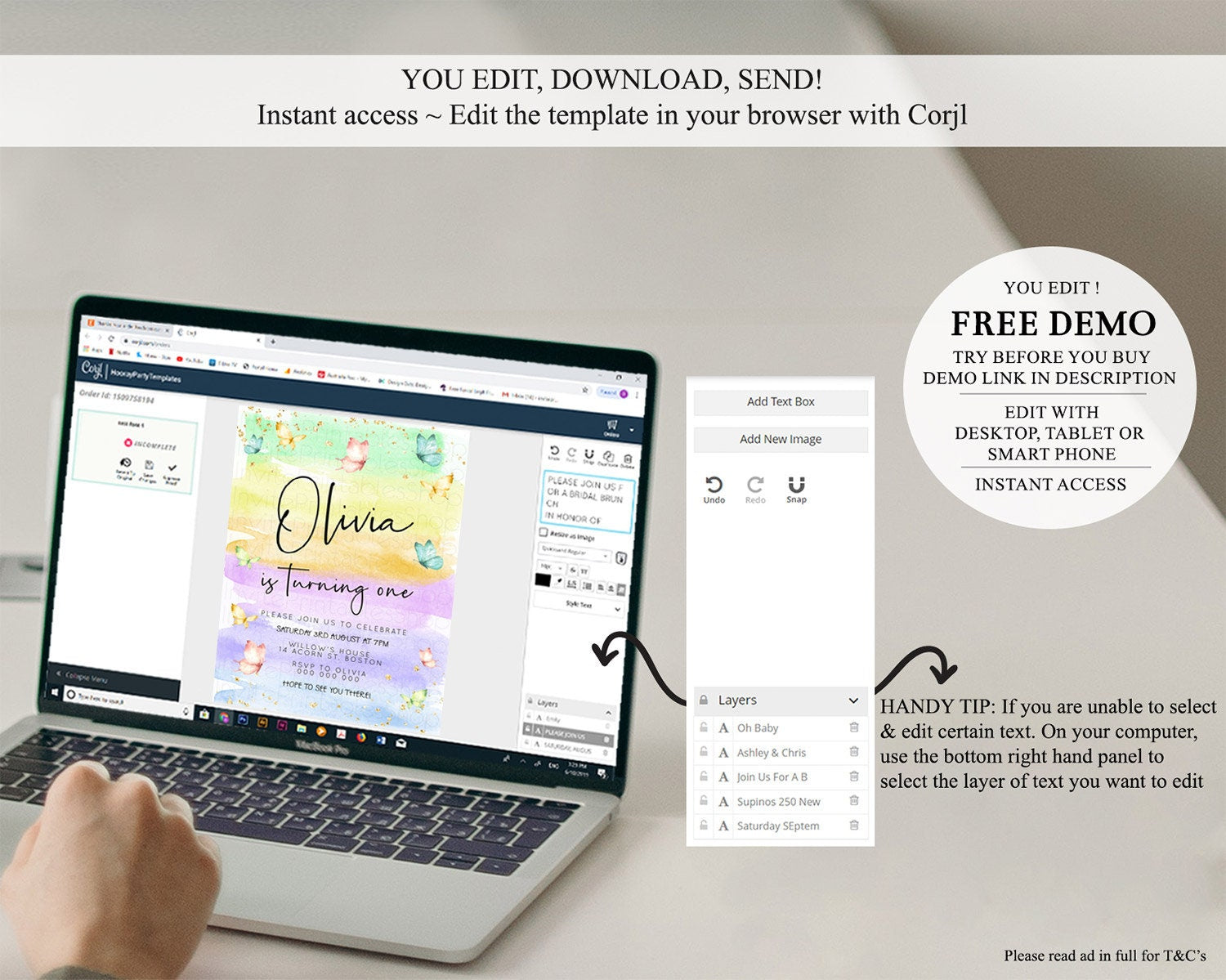 Pastel Butterfly Birthday Invitation Butterfly Birthday Invitation Whimsical Butterfly Enchanted Garden 1st 2nd Birthday Invitation D23181