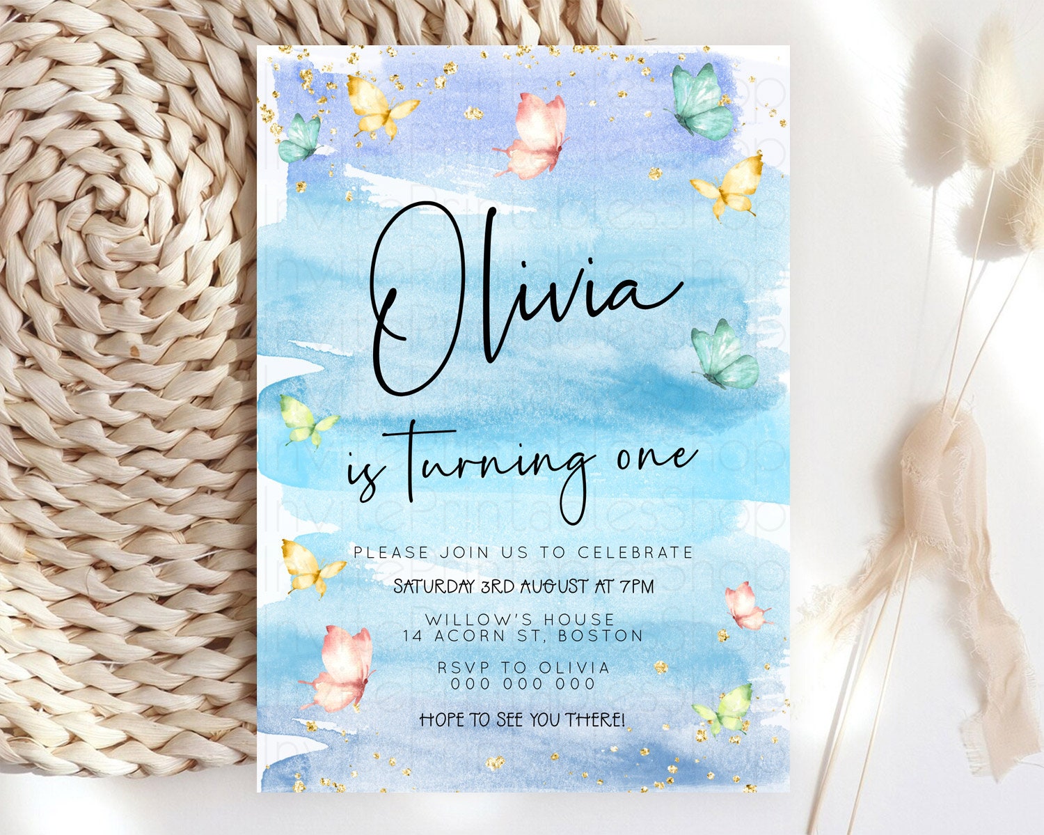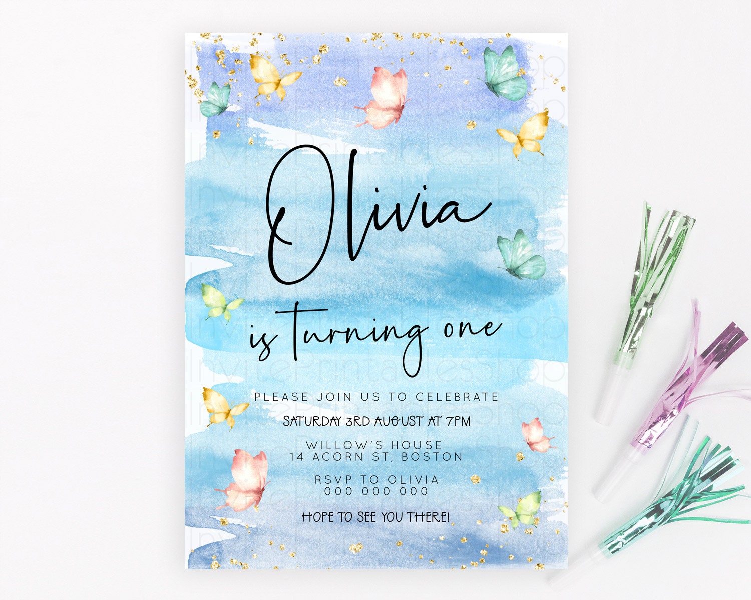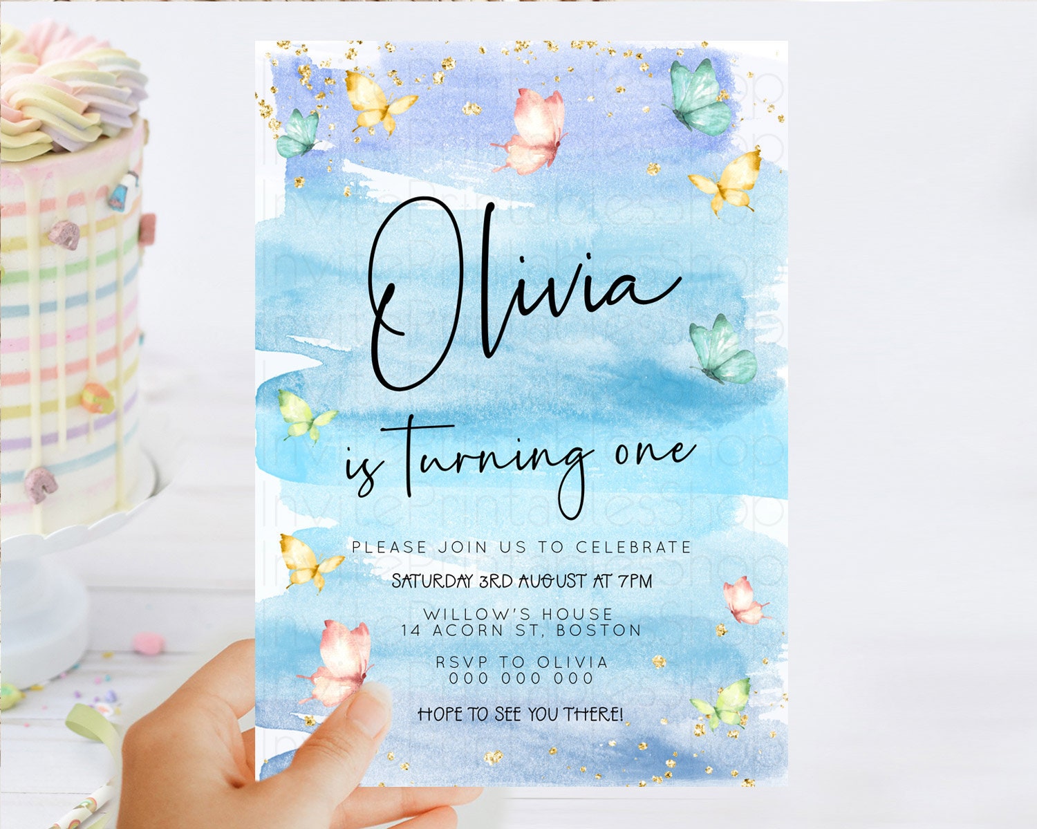 Pastel Butterfly Birthday Invitation Butterfly Birthday Invitation Whimsical Butterfly Enchanted Garden 1st 2nd Birthday Invitation D23183