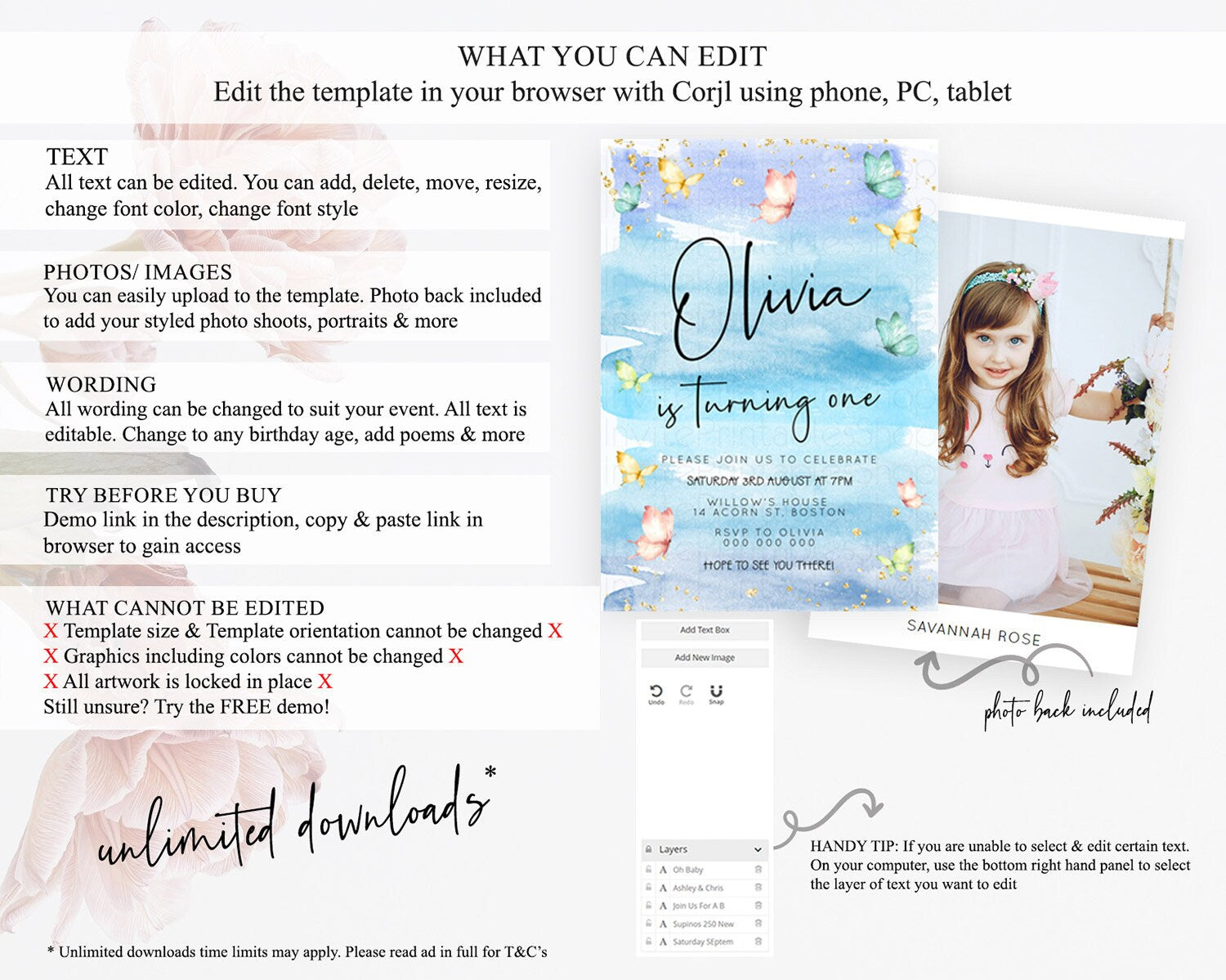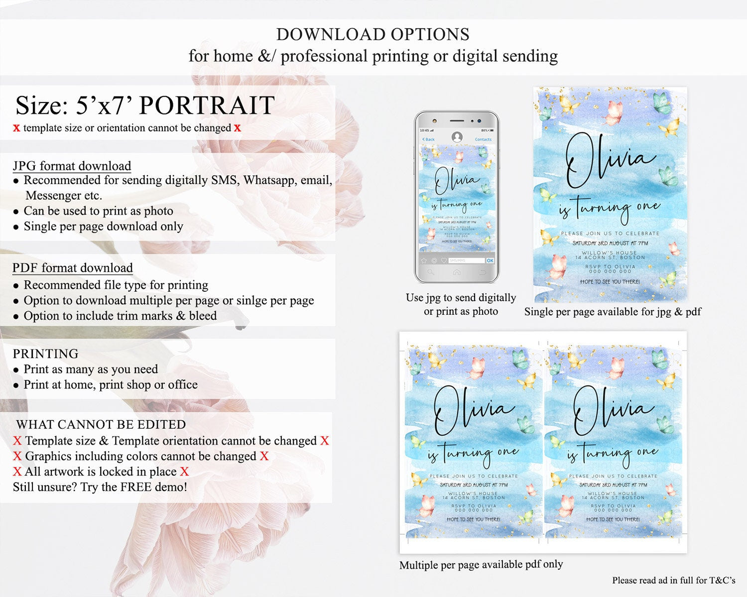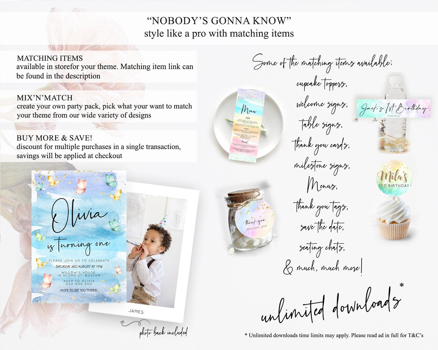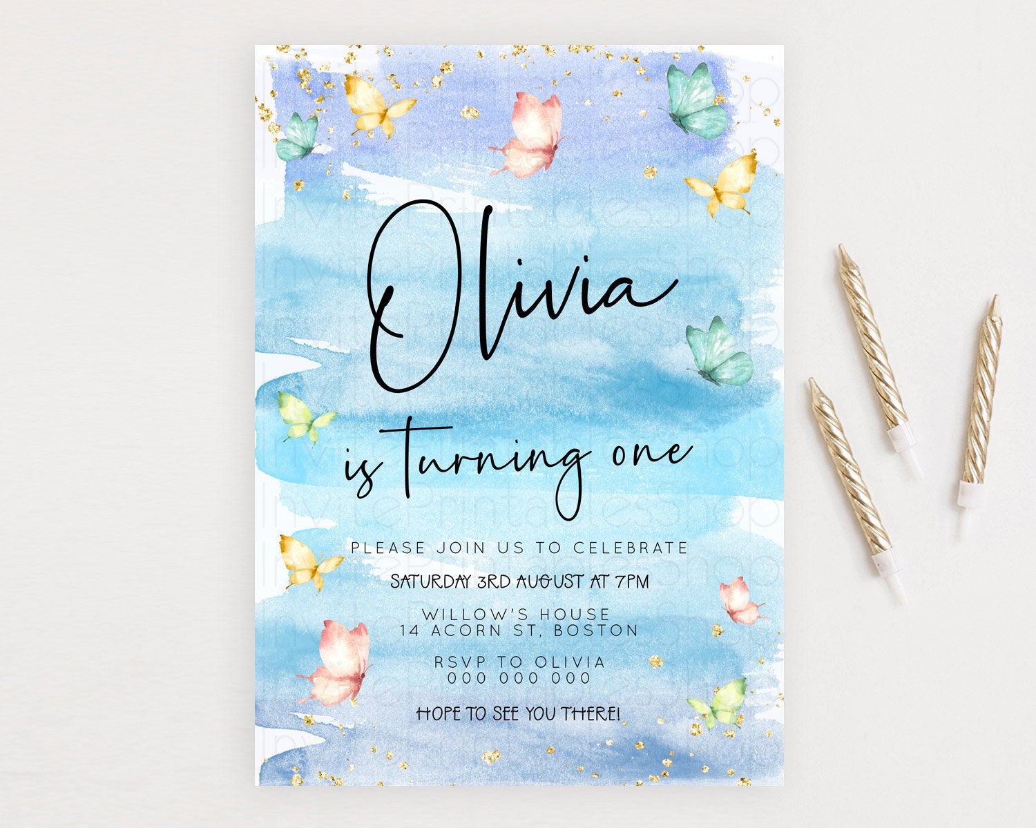Pastel Butterfly Birthday Invitation Butterfly Birthday Invitation Whimsical Butterfly Enchanted Garden 1st 2nd Birthday Invitation D23183