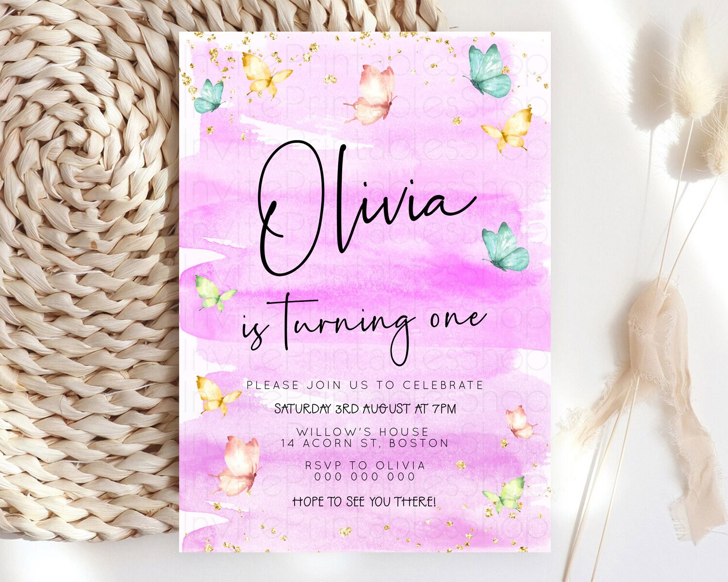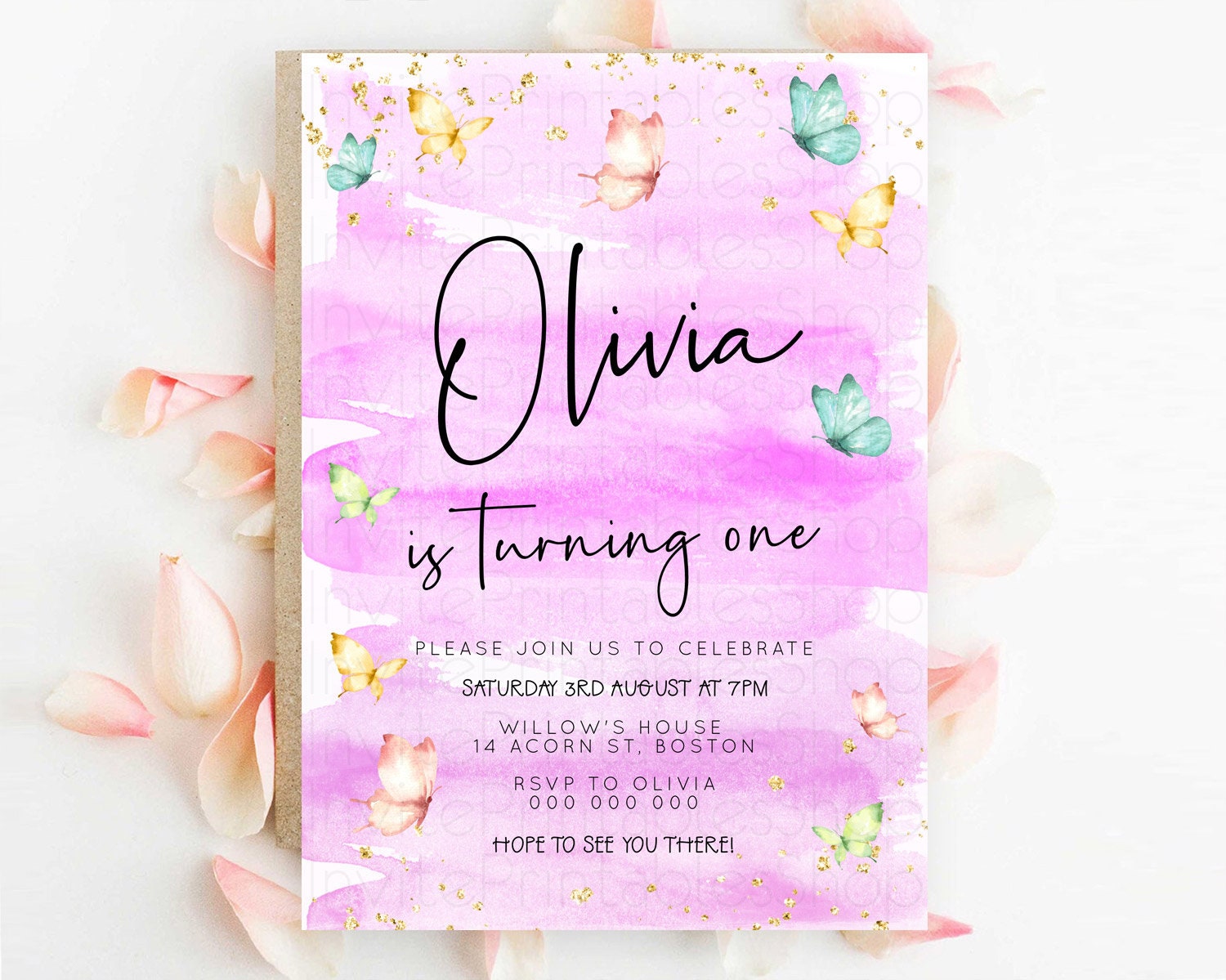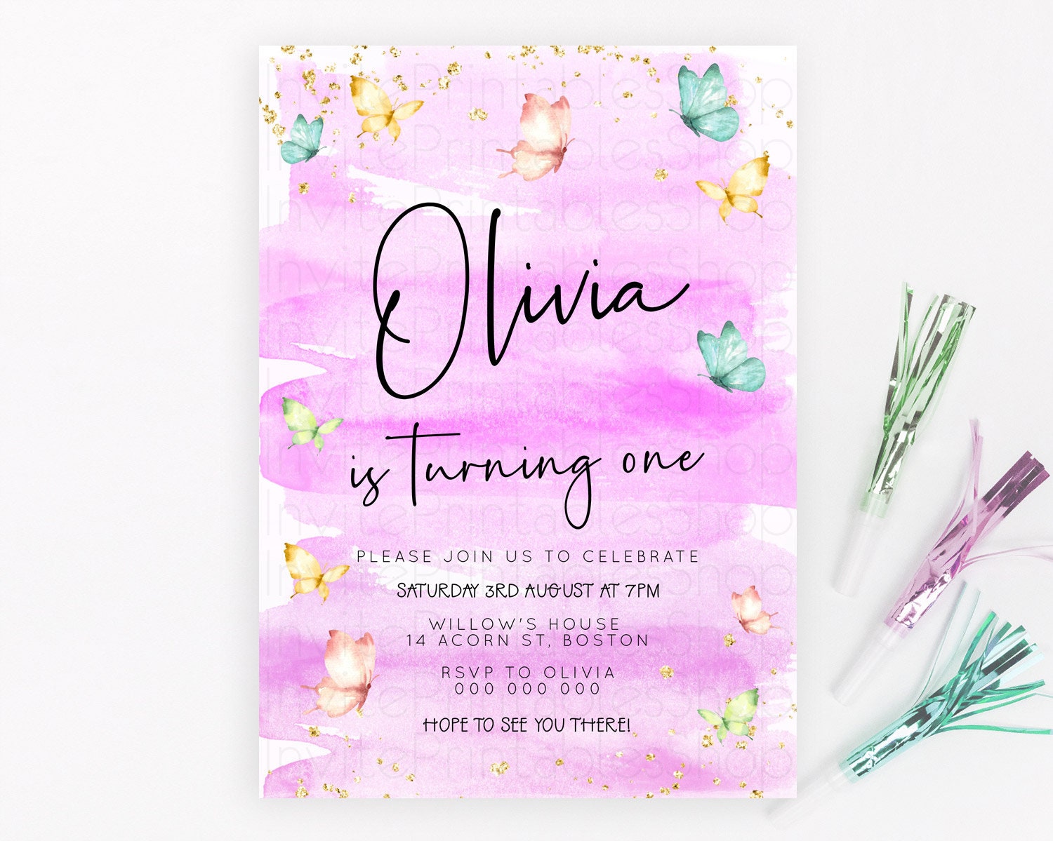 Pastel Butterfly Birthday Invitation Butterfly Birthday Invitation Whimsical Butterfly Enchanted Garden 1st 2nd Birthday Invitation D23185