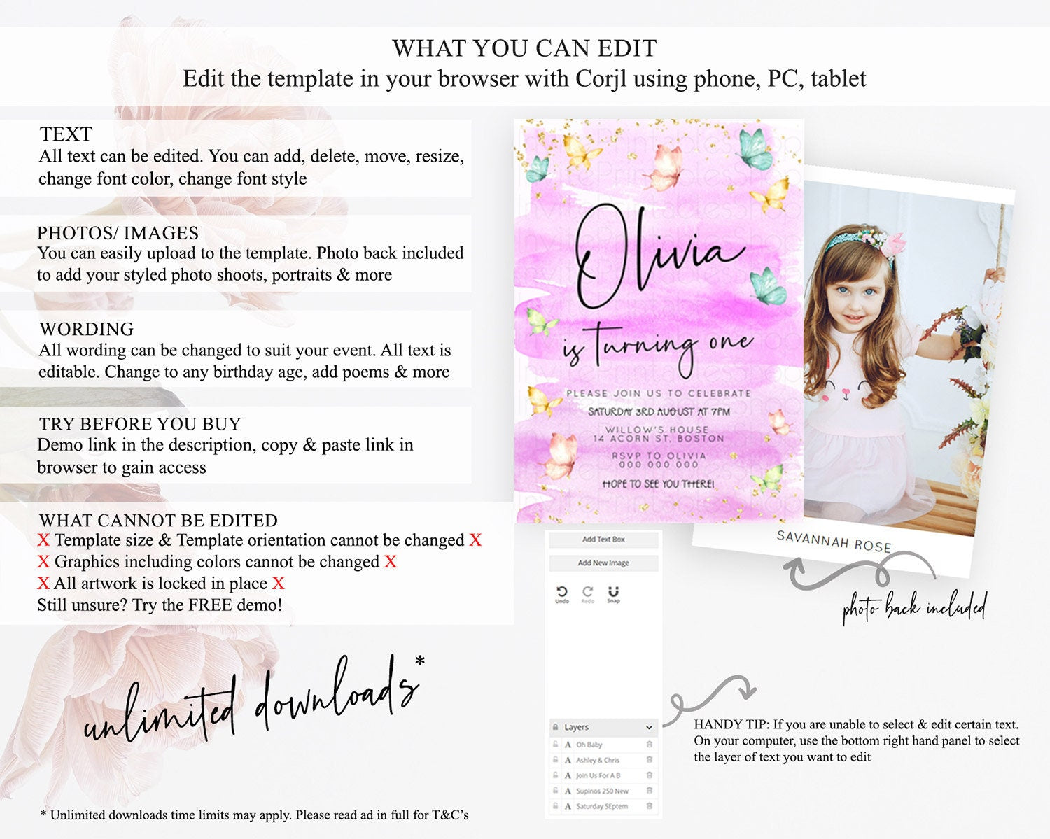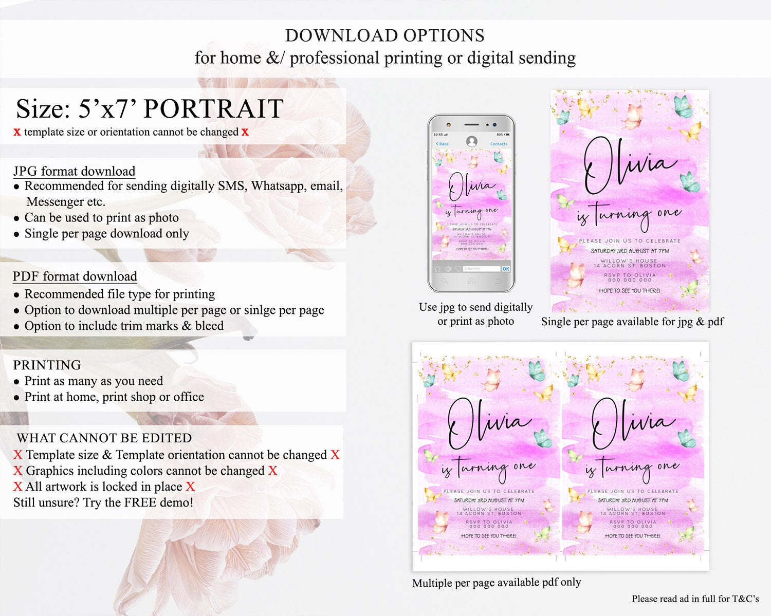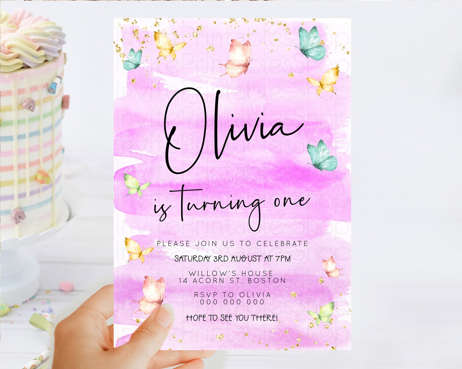 Pastel Butterfly Birthday Invitation Butterfly Birthday Invitation Whimsical Butterfly Enchanted Garden 1st 2nd Birthday Invitation D23185