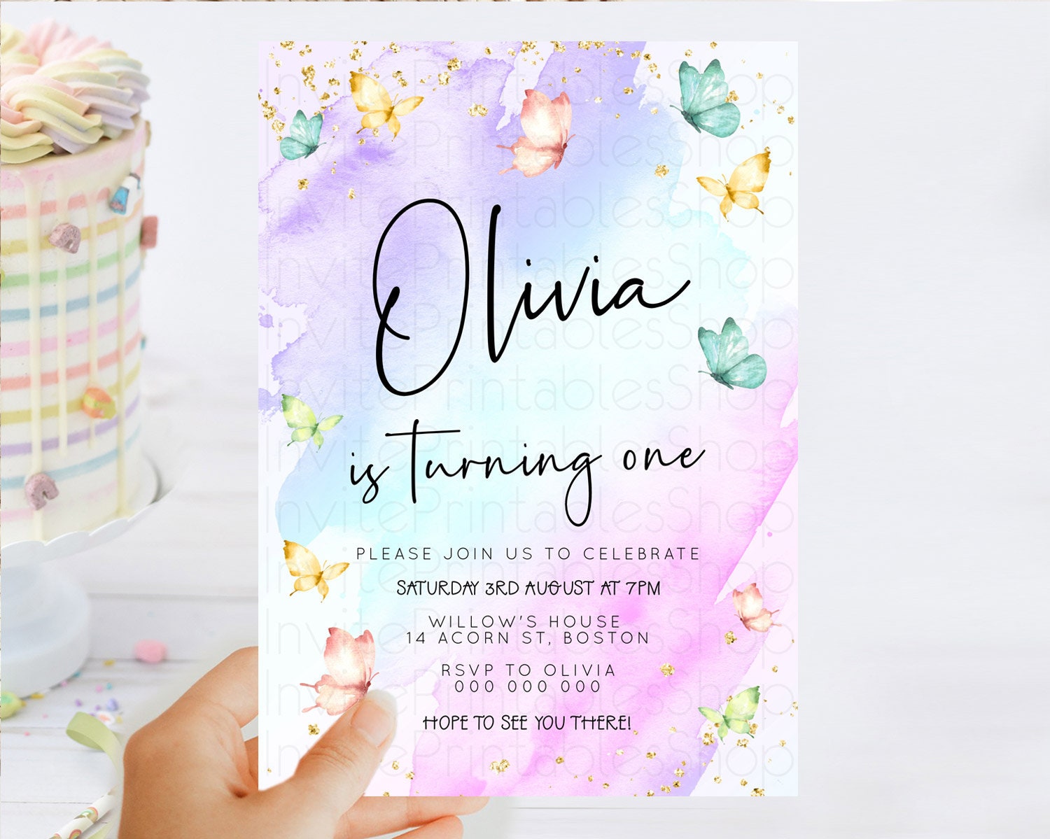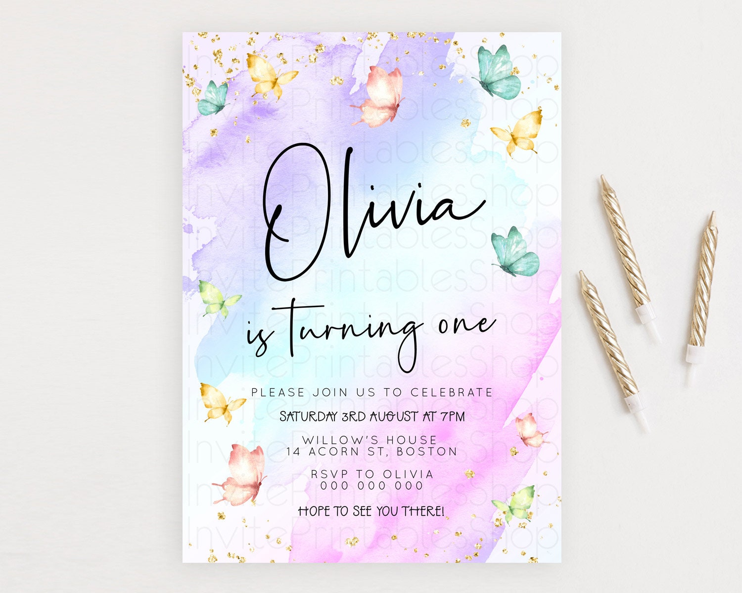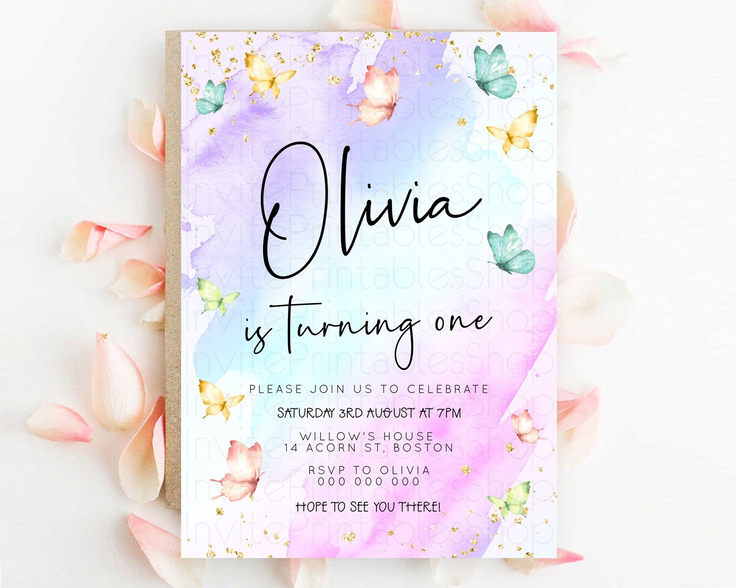 Pastel Butterfly Birthday Invitation Butterfly Birthday Invitation Whimsical Butterfly Enchanted Garden 1st 2nd Birthday Invitation D23189