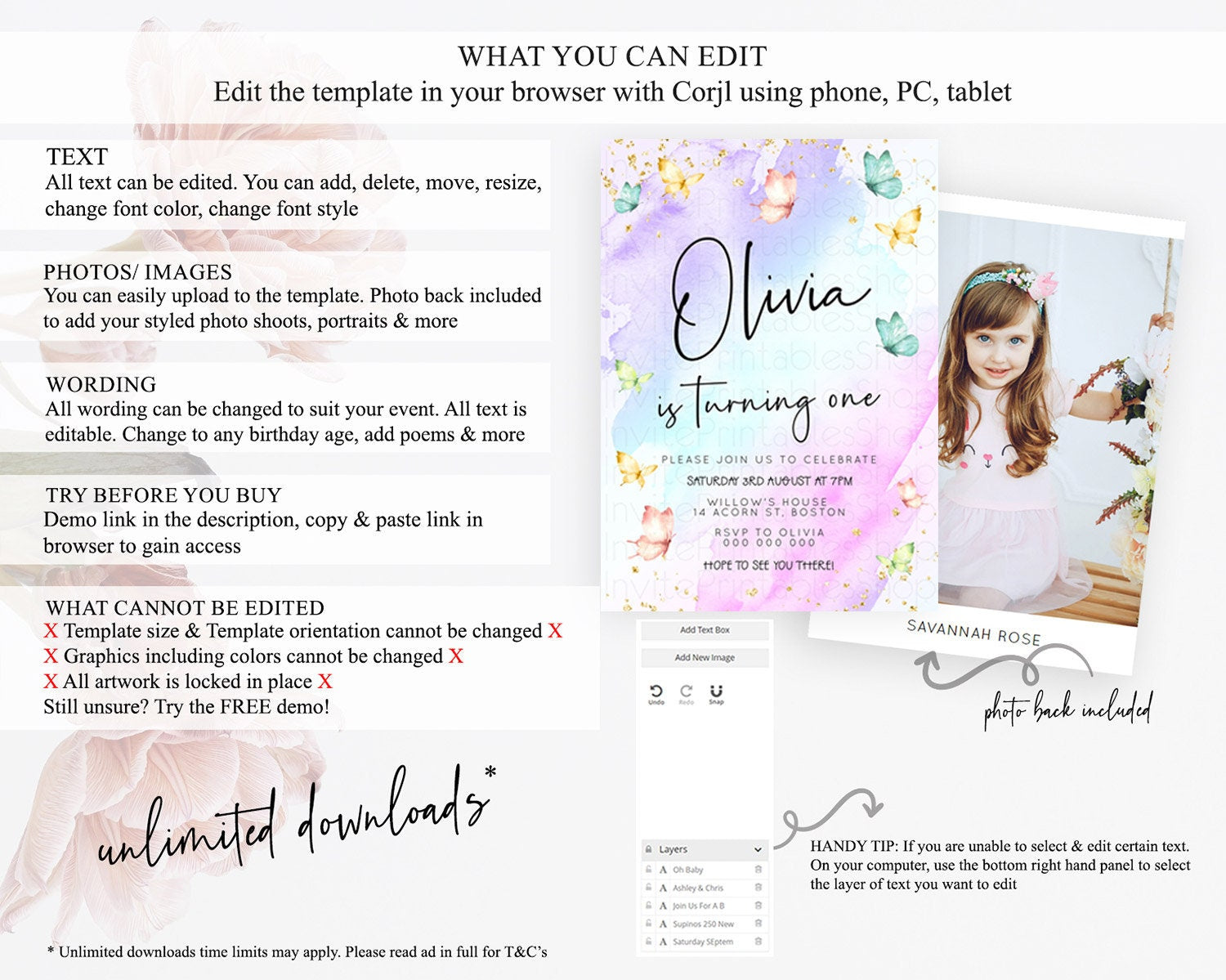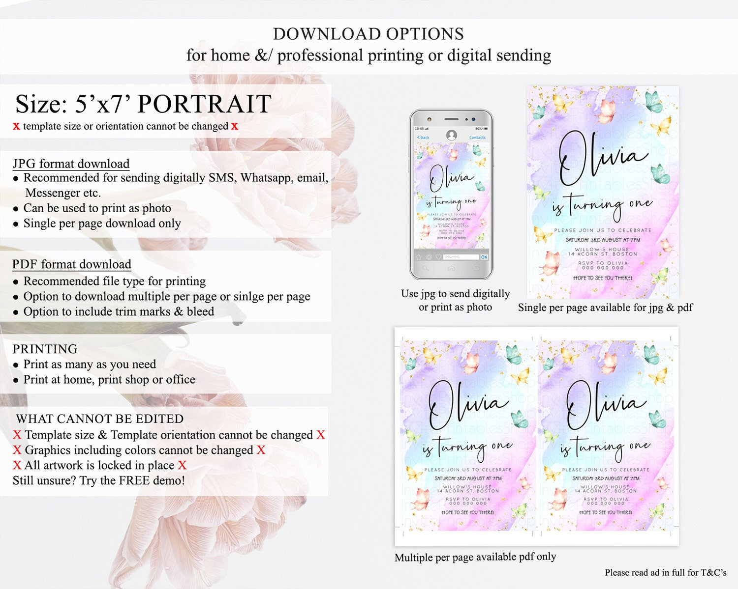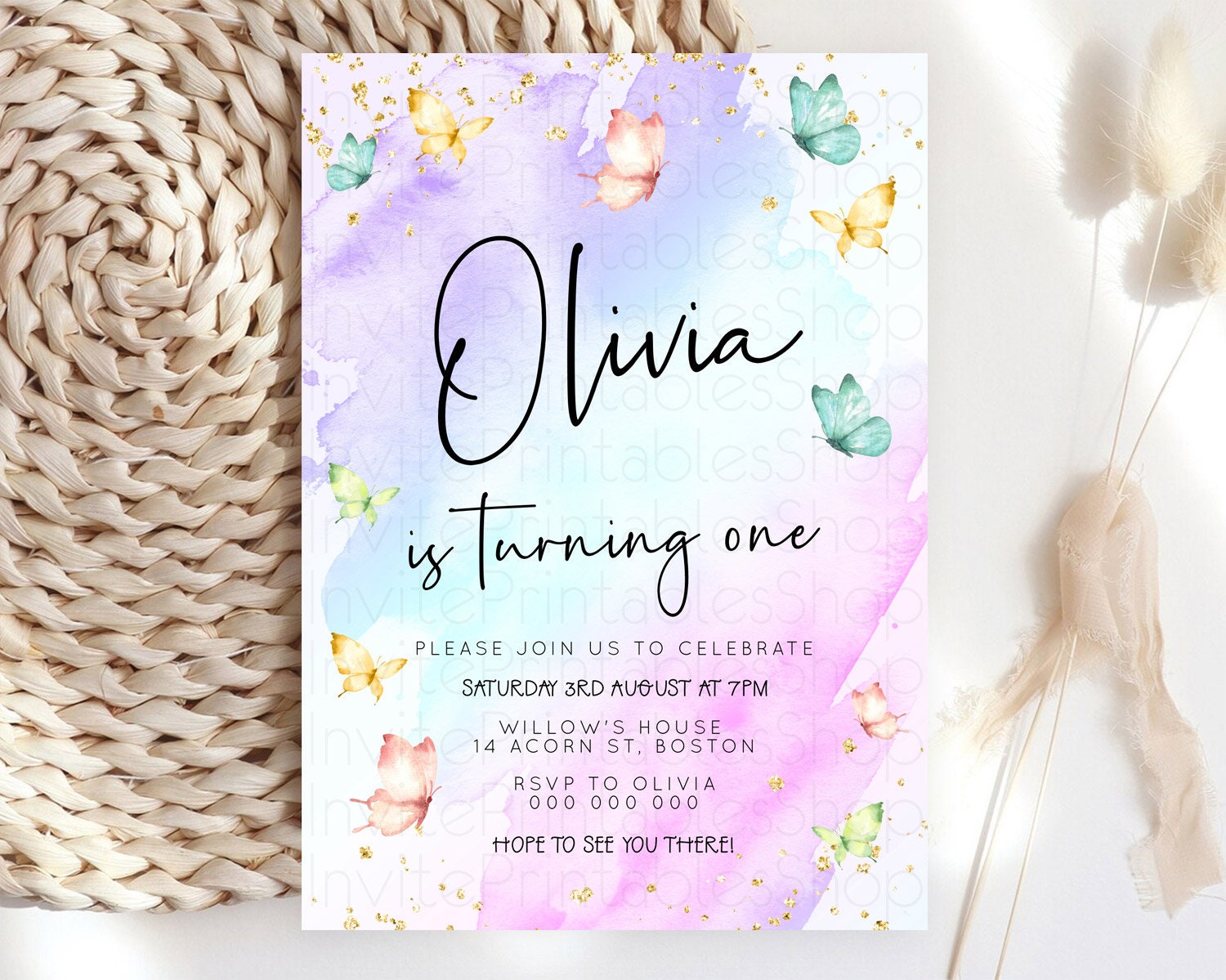 Pastel Butterfly Birthday Invitation Butterfly Birthday Invitation Whimsical Butterfly Enchanted Garden 1st 2nd Birthday Invitation D23189
