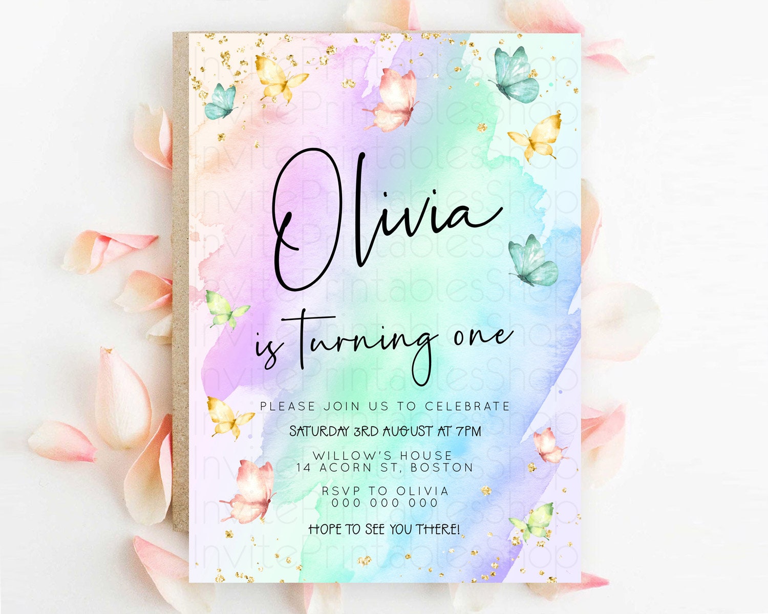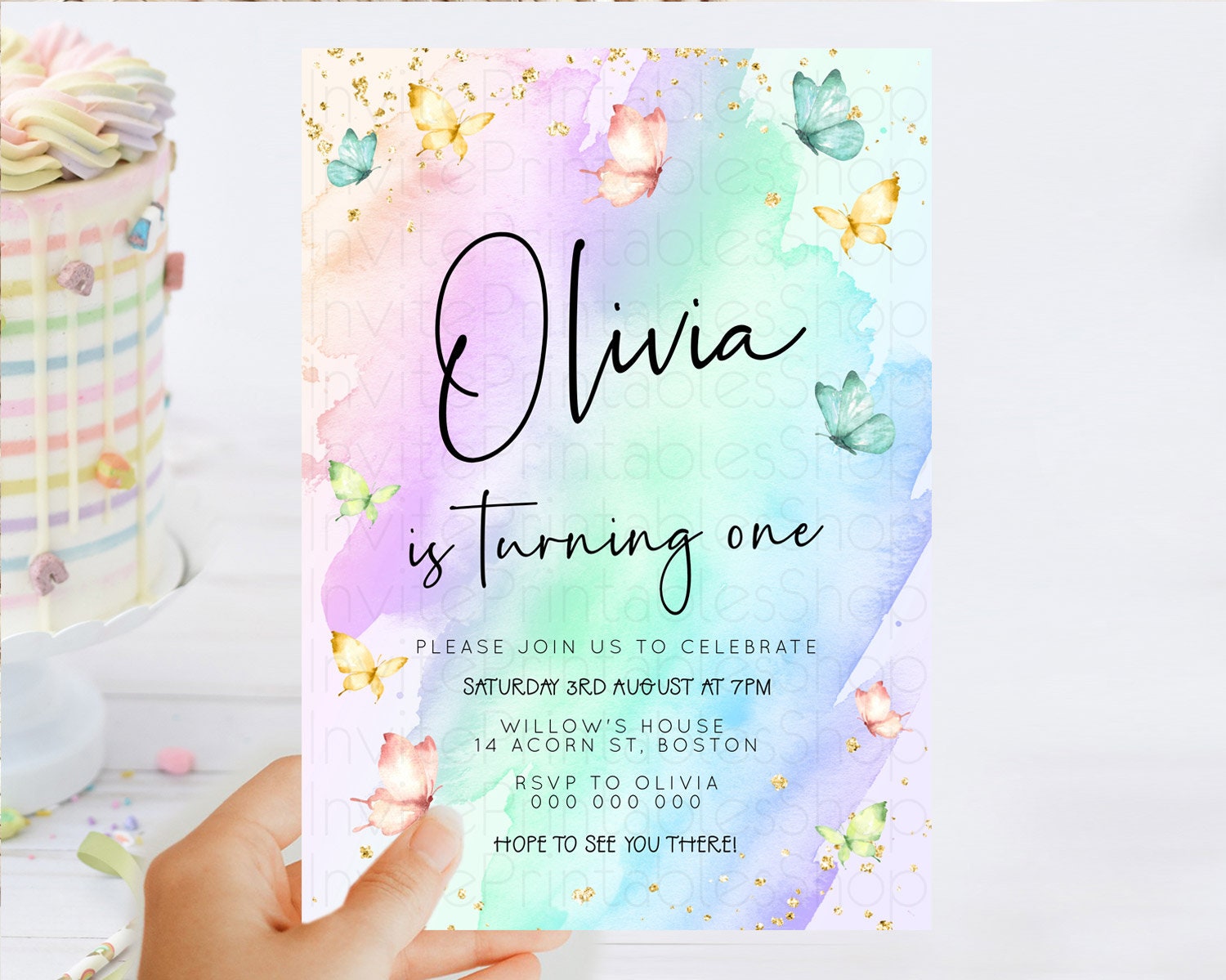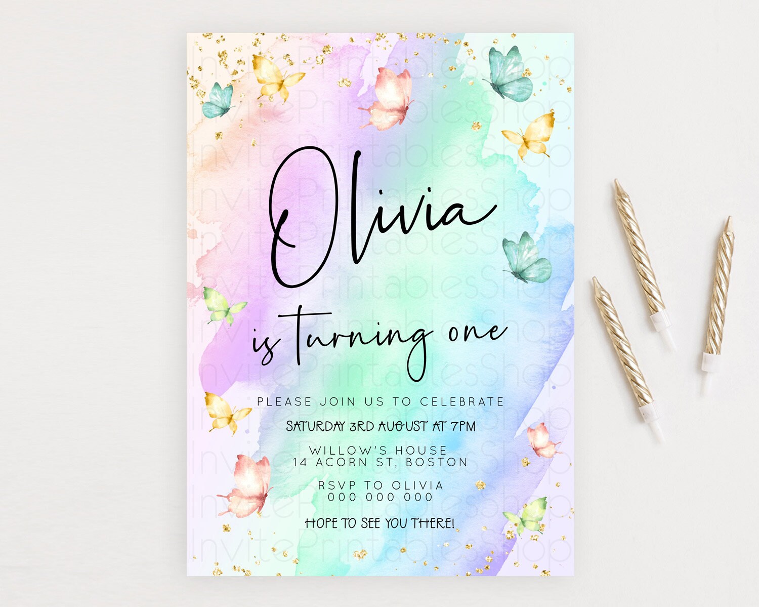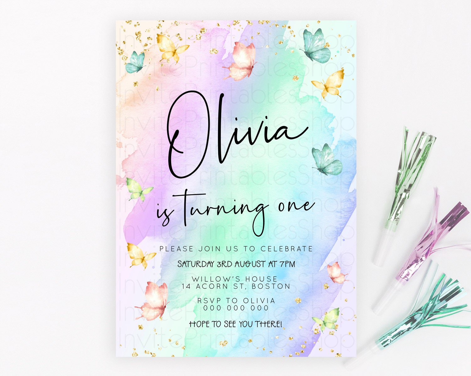 Butterfly Watercolor Birthday Invitation