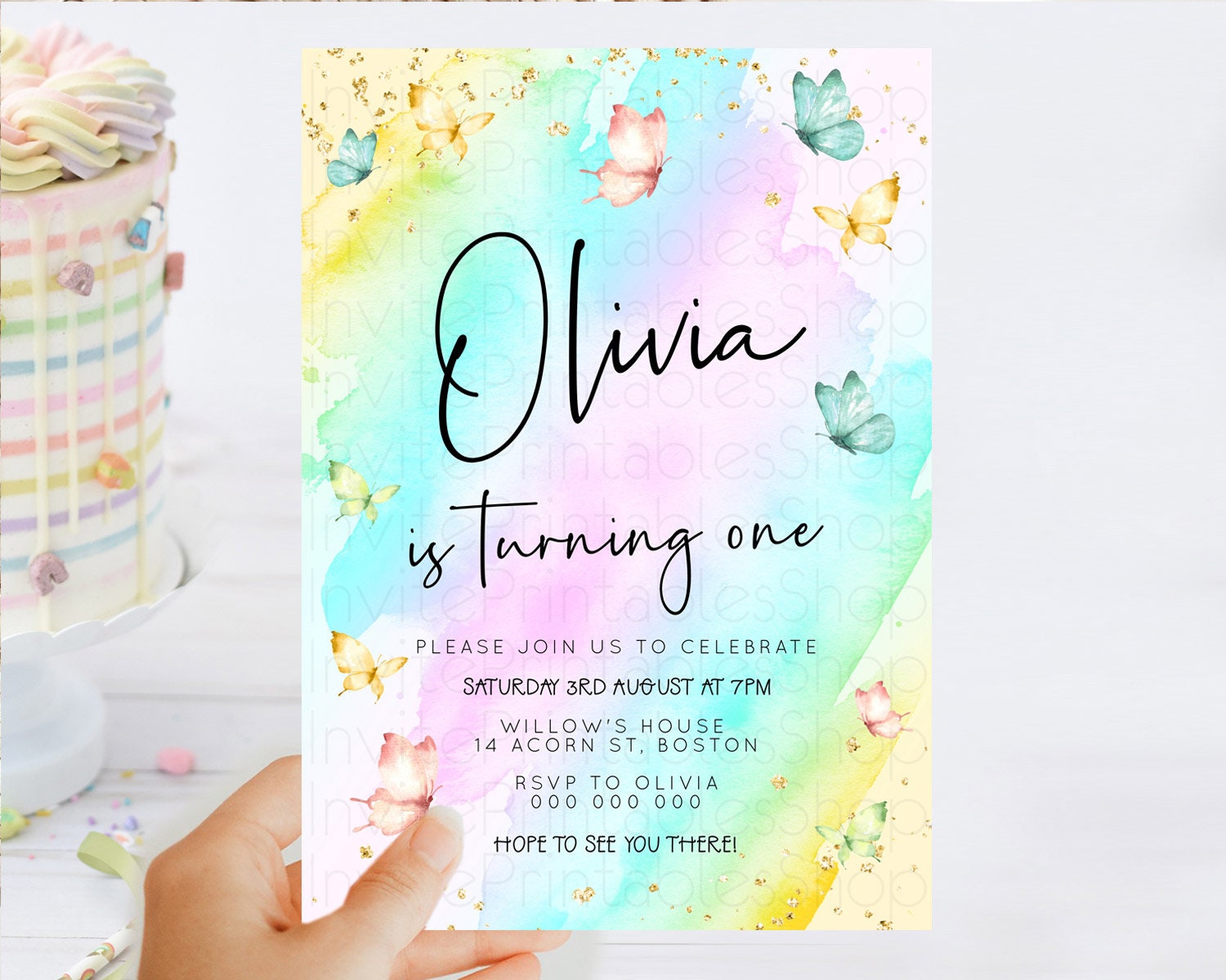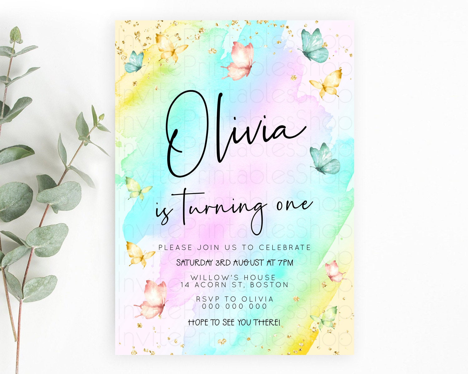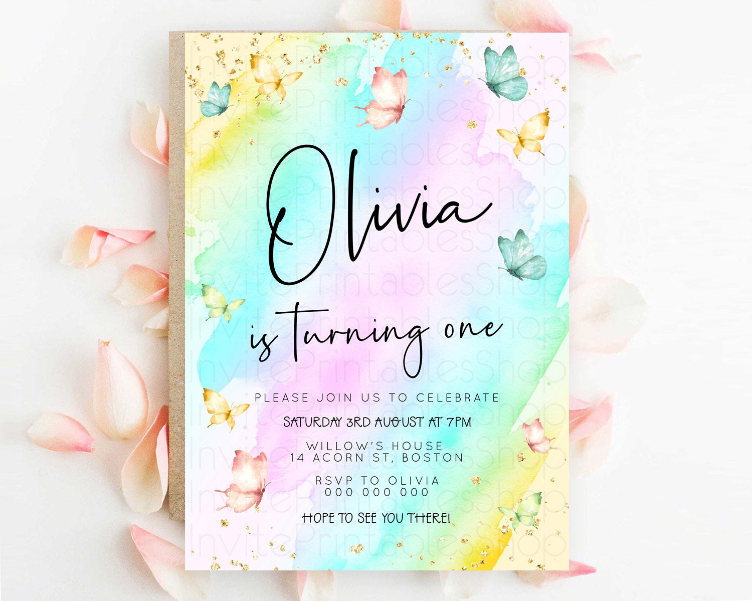 Pastel Butterfly Birthday Invitation Butterfly Birthday Invitation Whimsical Butterfly Enchanted Garden 1st 2nd Birthday Invitation D23191