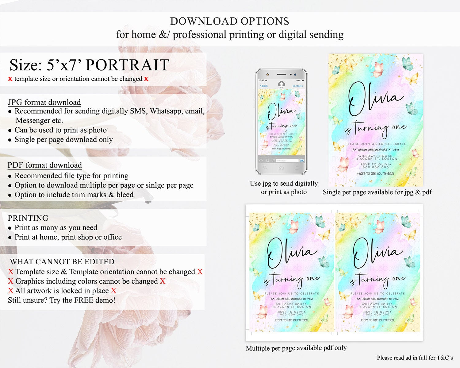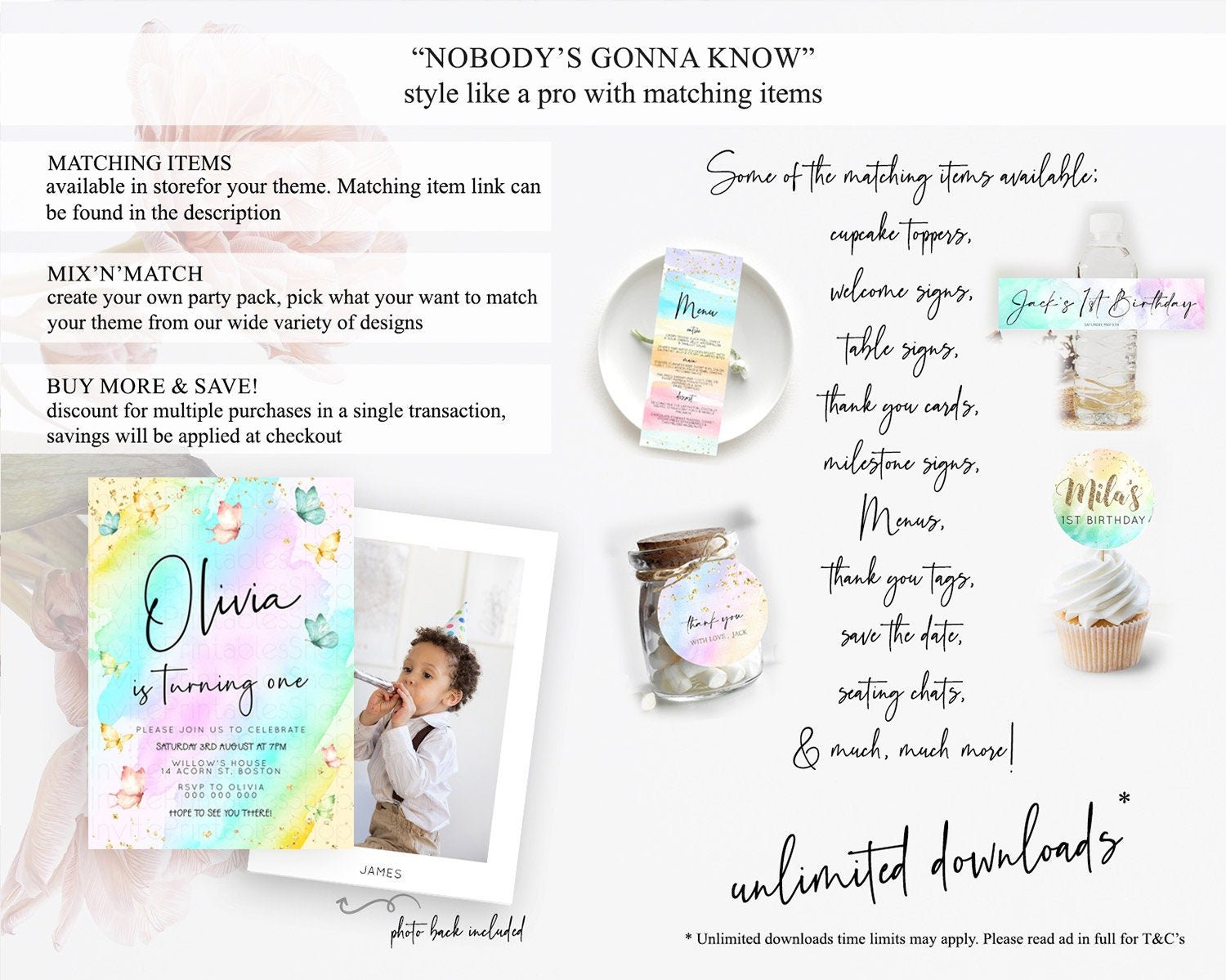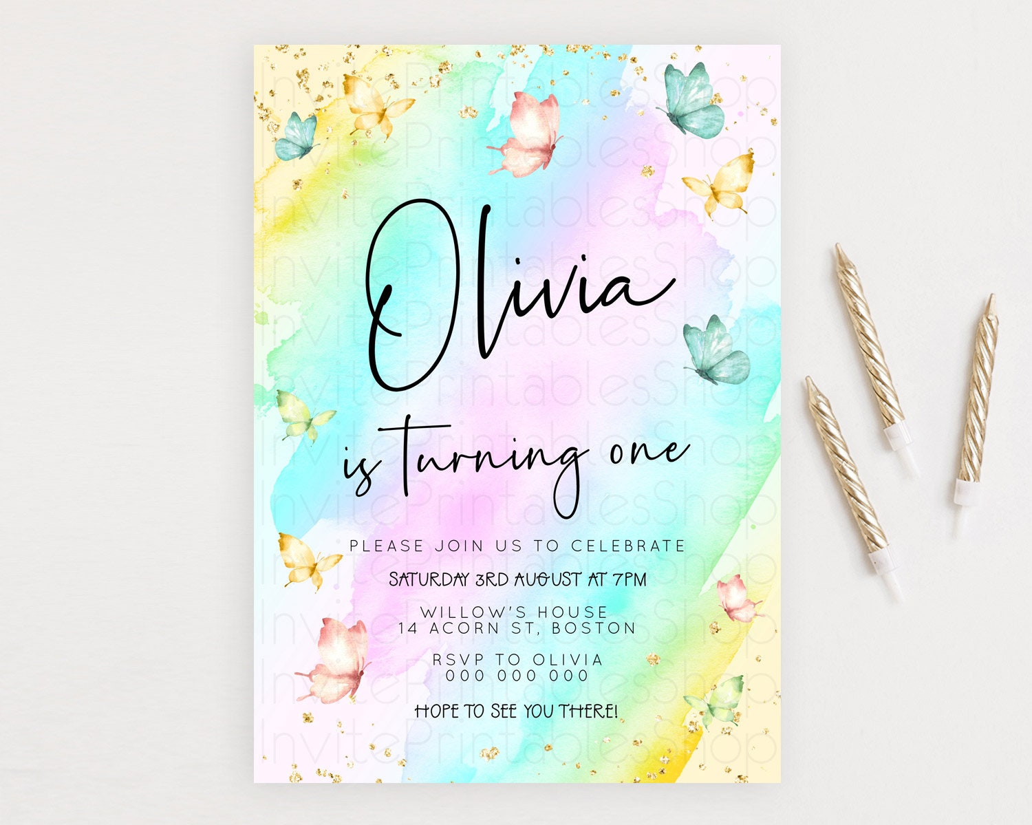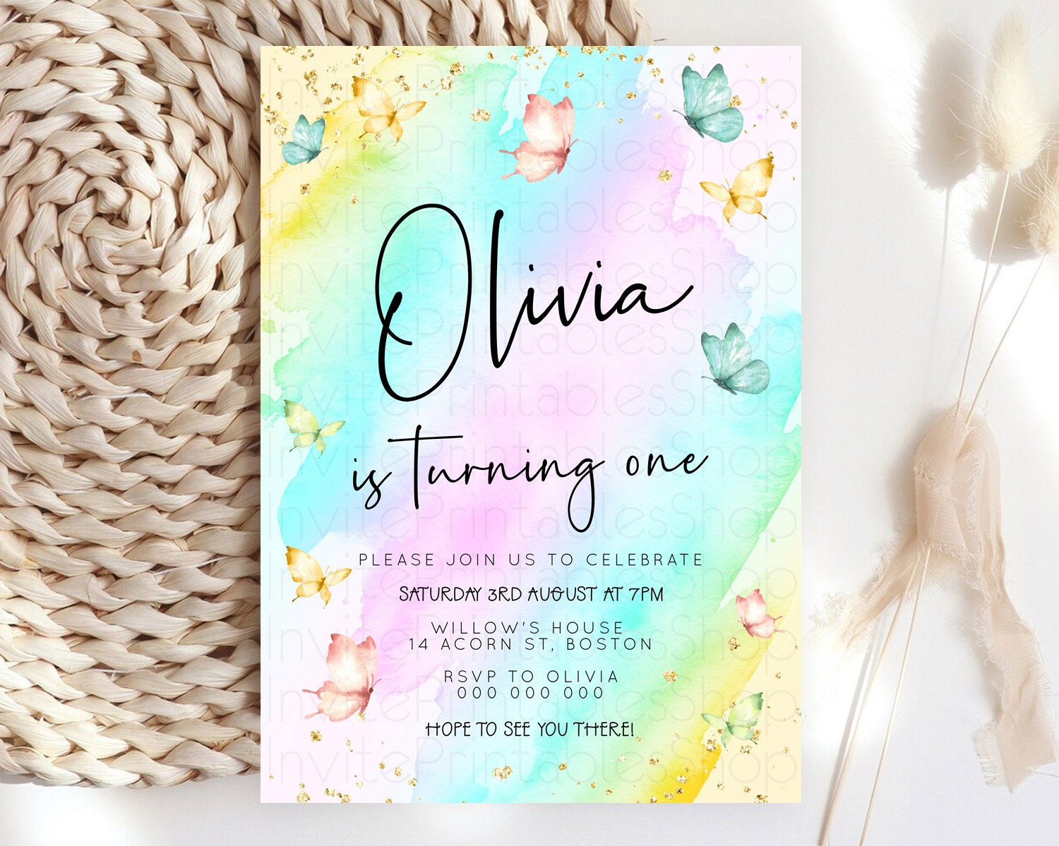 Pastel Butterfly Birthday Invitation Butterfly Birthday Invitation Whimsical Butterfly Enchanted Garden 1st 2nd Birthday Invitation D23191