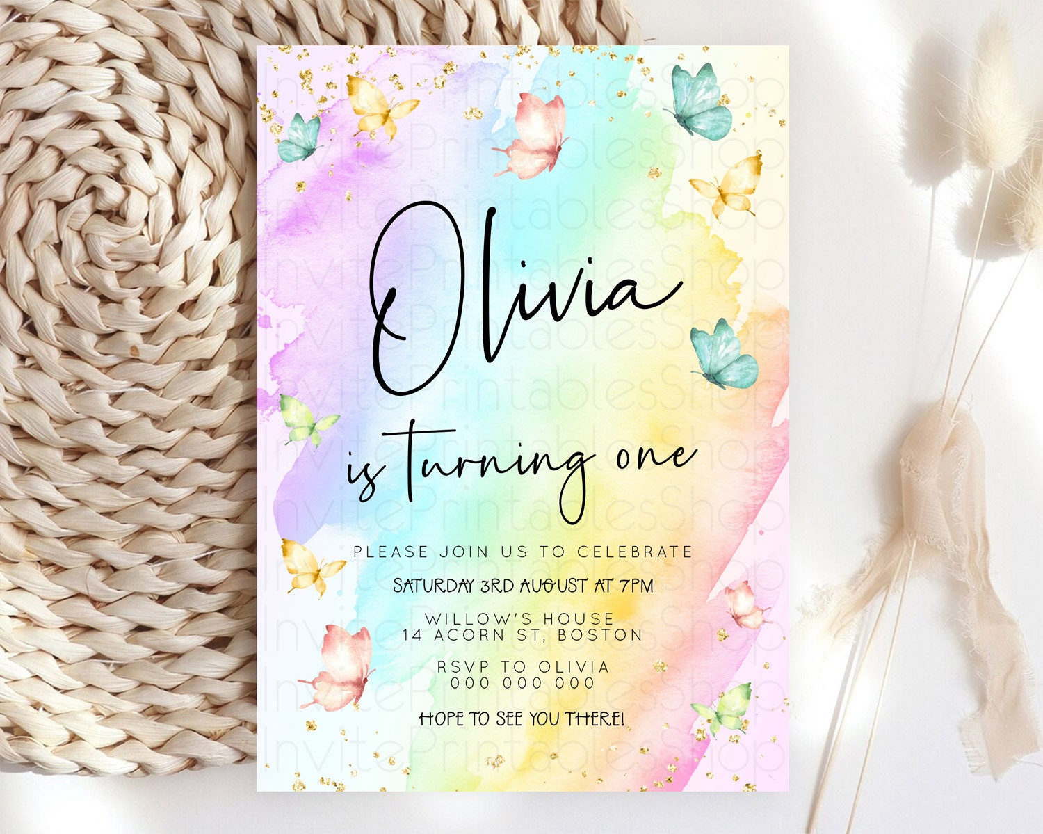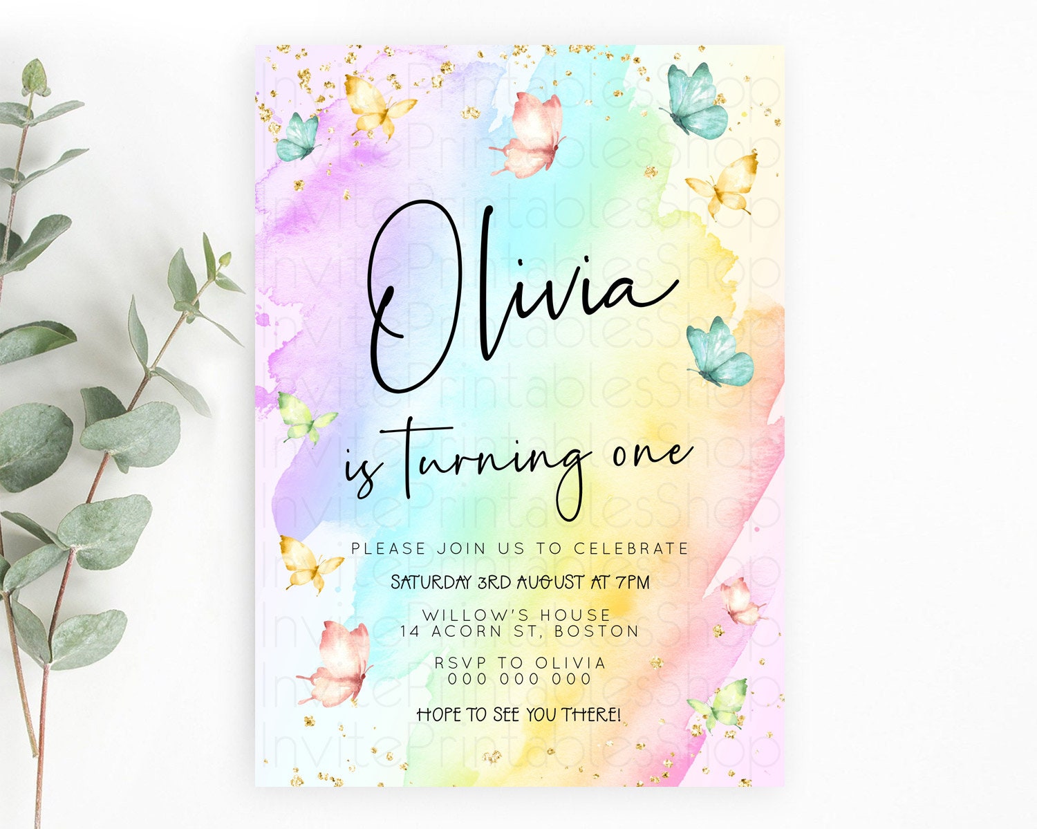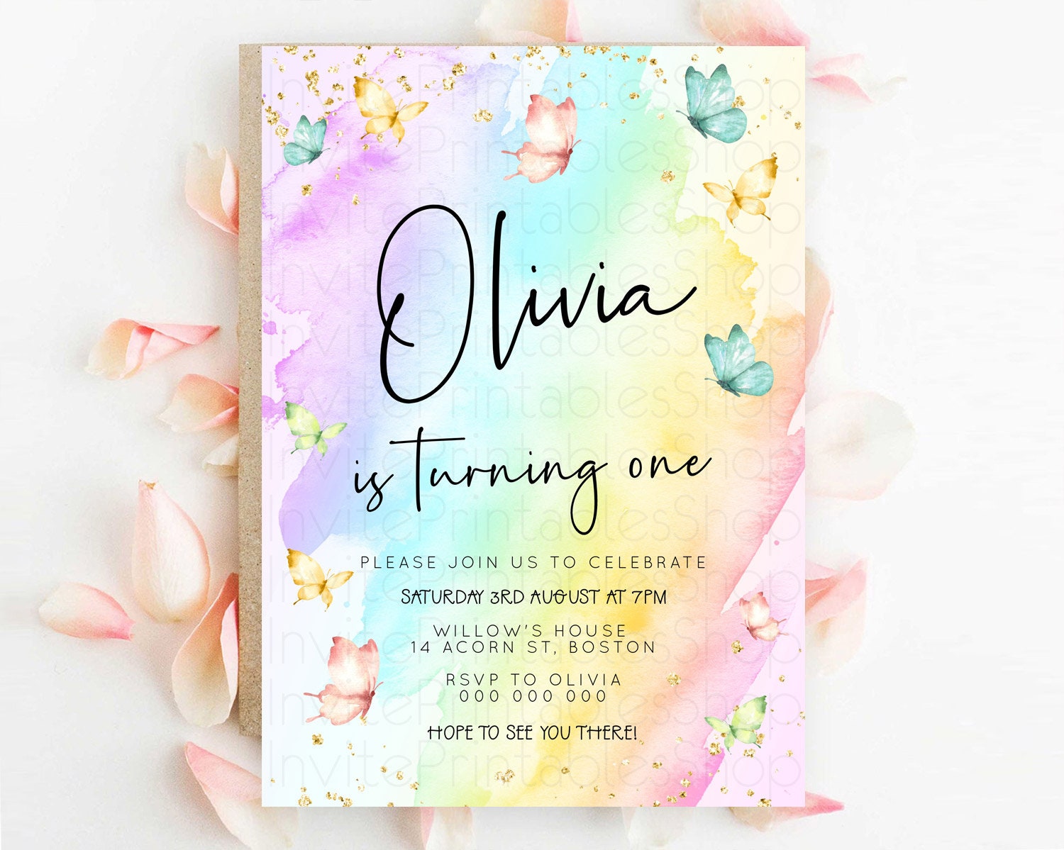 Pastel Butterfly Birthday Invitation Butterfly Birthday Invitation Whimsical Butterfly Enchanted Garden 1st 2nd Birthday Invitation D23192