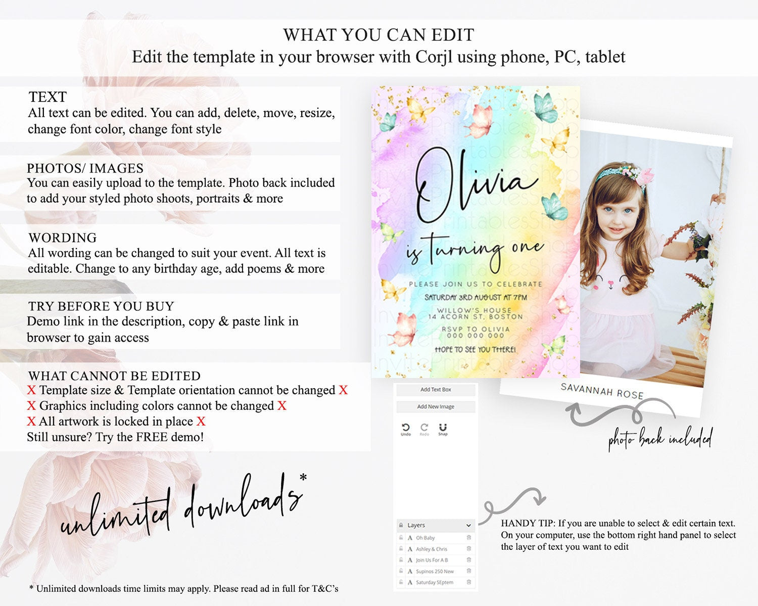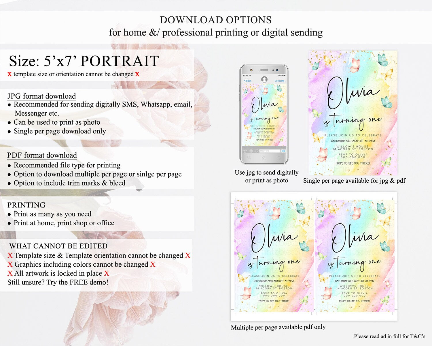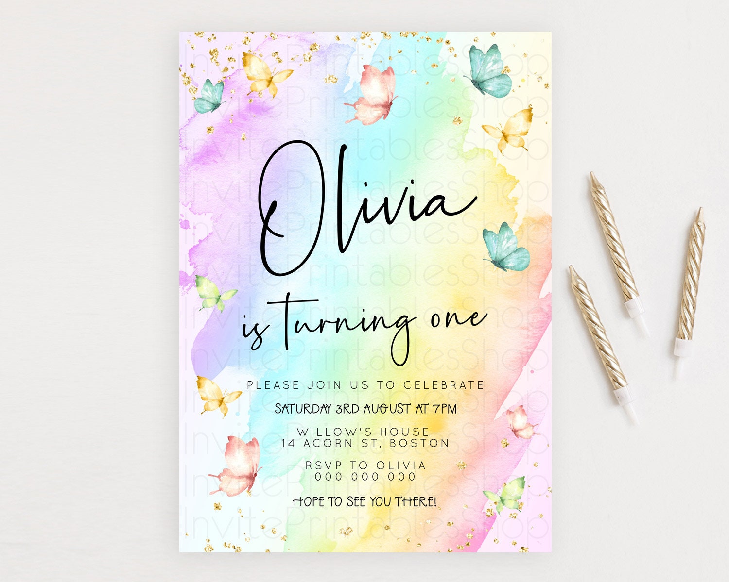 Pastel Butterfly Birthday Invitation Butterfly Birthday Invitation Whimsical Butterfly Enchanted Garden 1st 2nd Birthday Invitation D23192