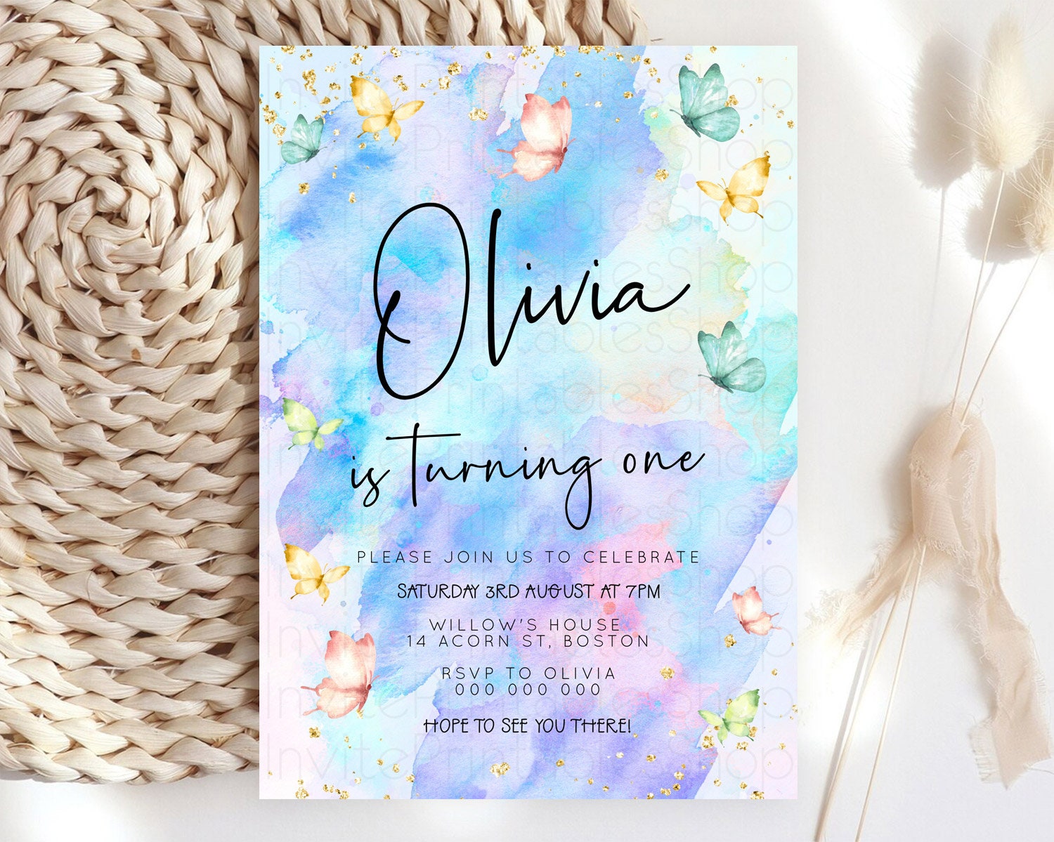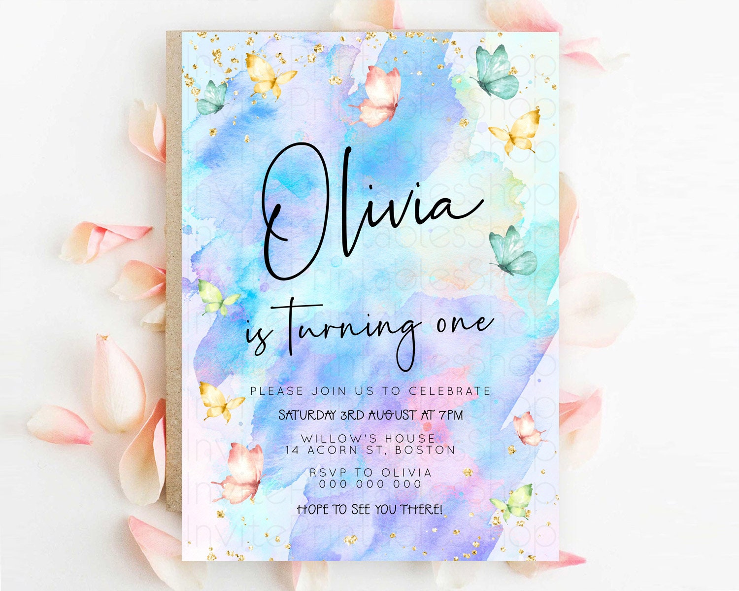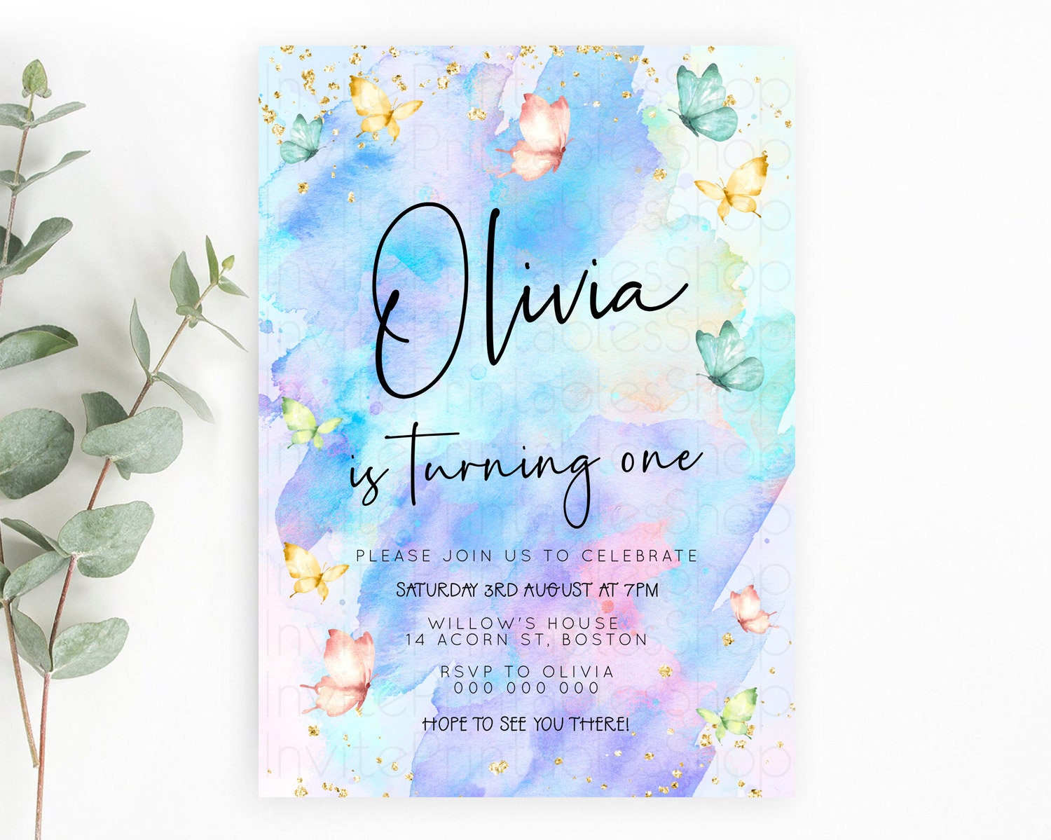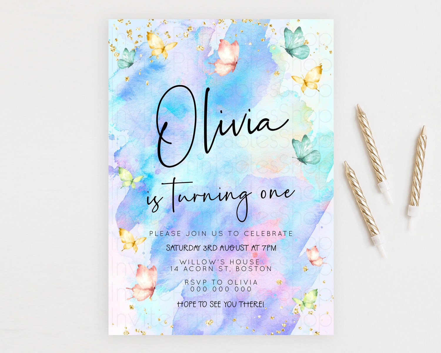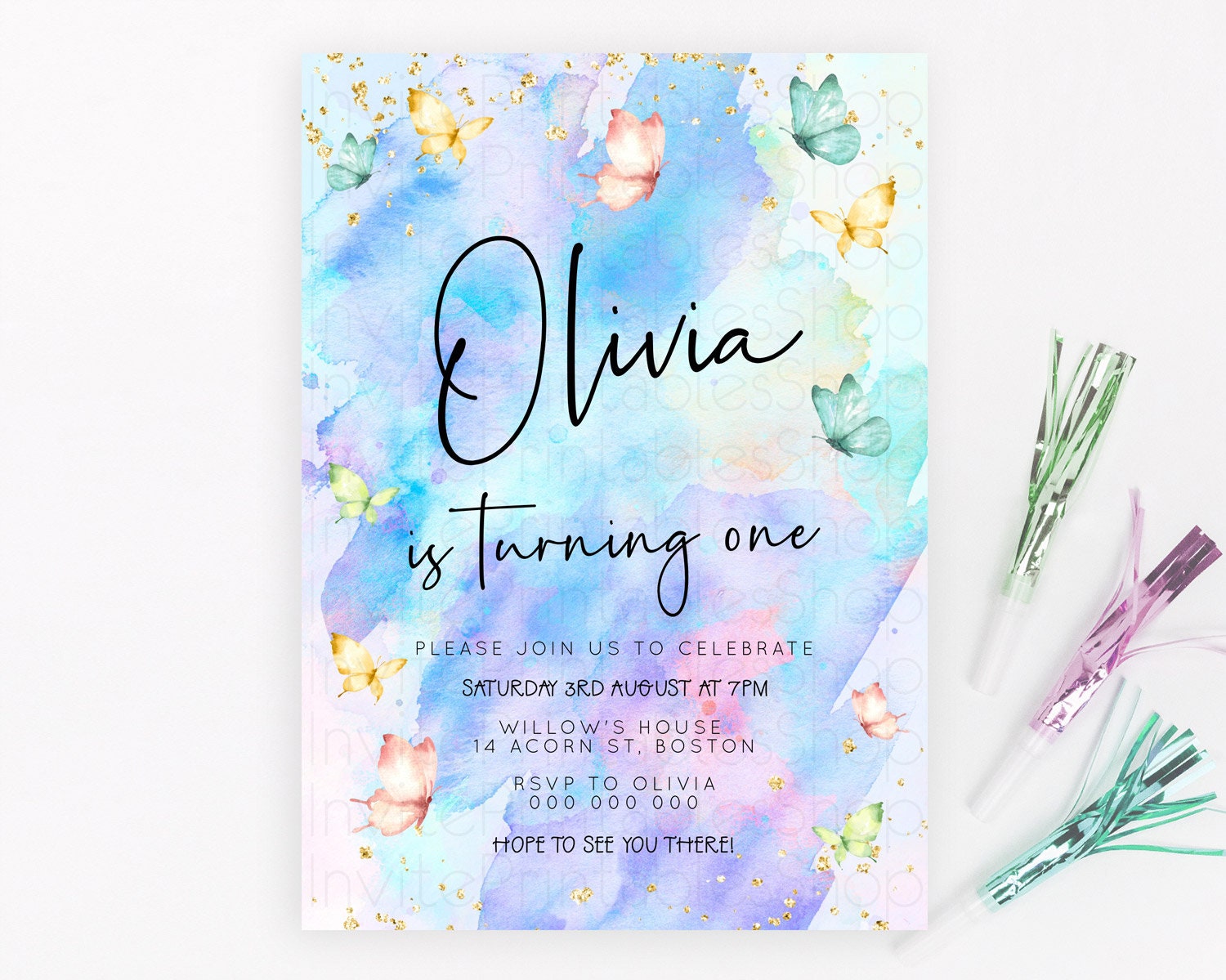 Butterfly Watercolor Birthday Invitation
