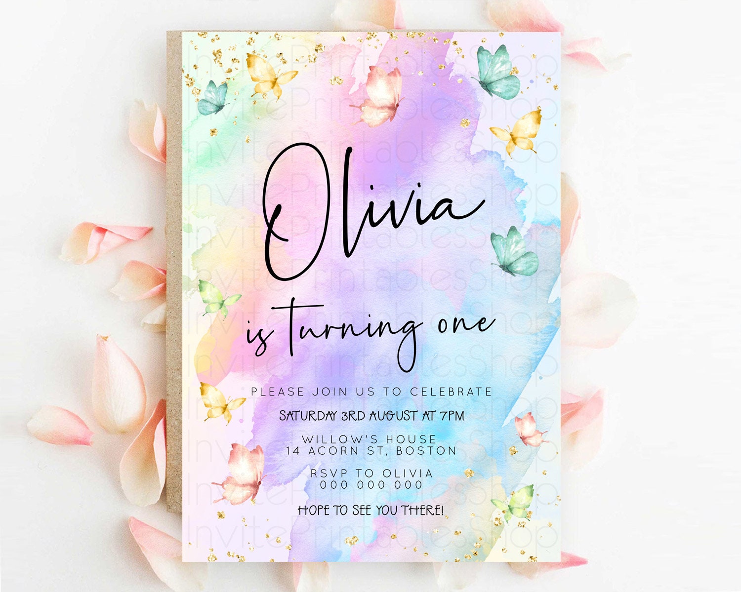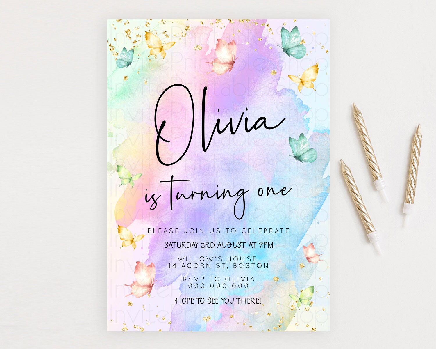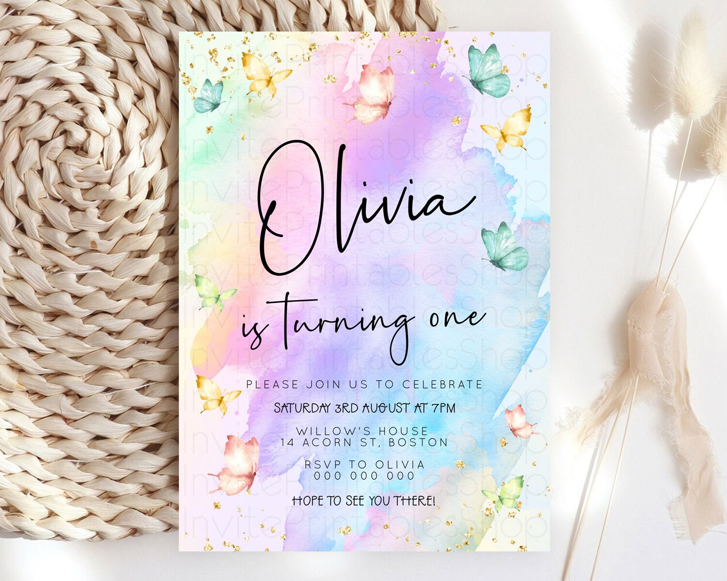Pastel Butterfly Birthday Invitation Butterfly Birthday Invitation Whimsical Butterfly Enchanted Garden 1st 2nd Birthday Invitation D23201