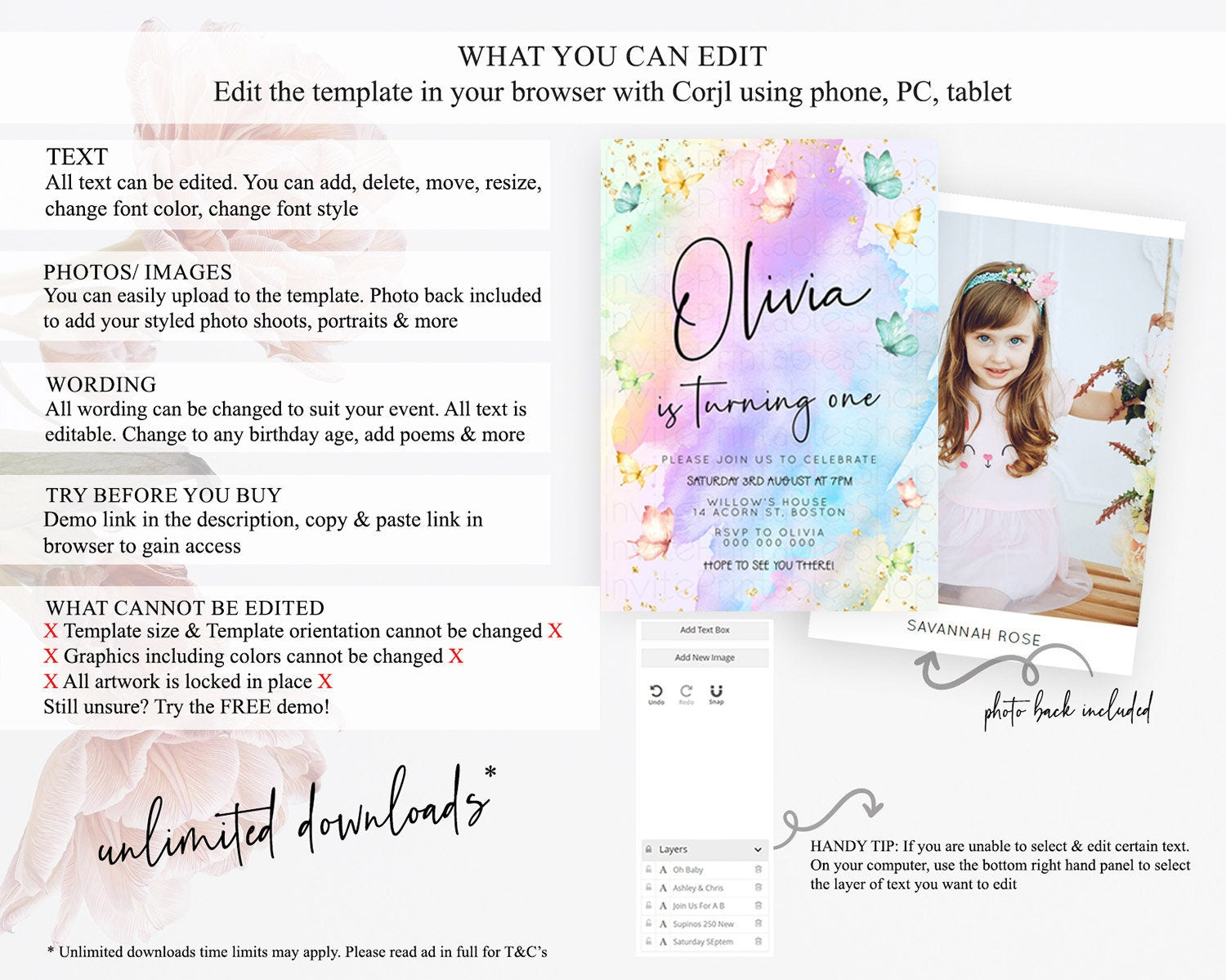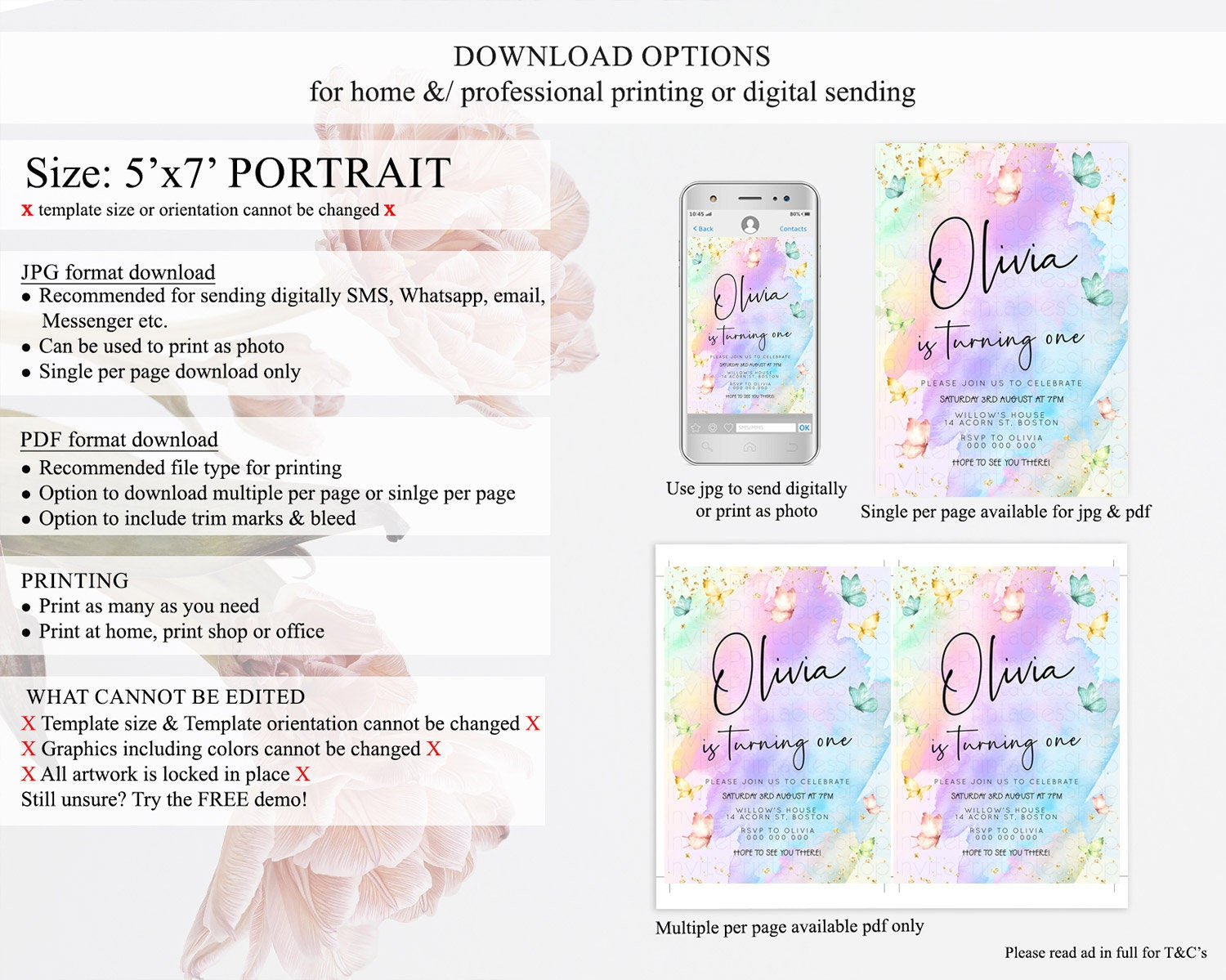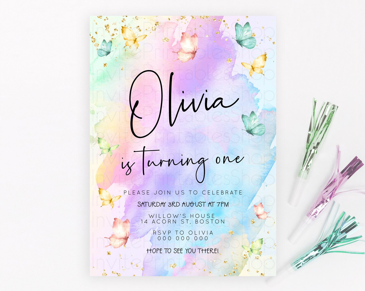 Pastel Butterfly Birthday Invitation Butterfly Birthday Invitation Whimsical Butterfly Enchanted Garden 1st 2nd Birthday Invitation D23201