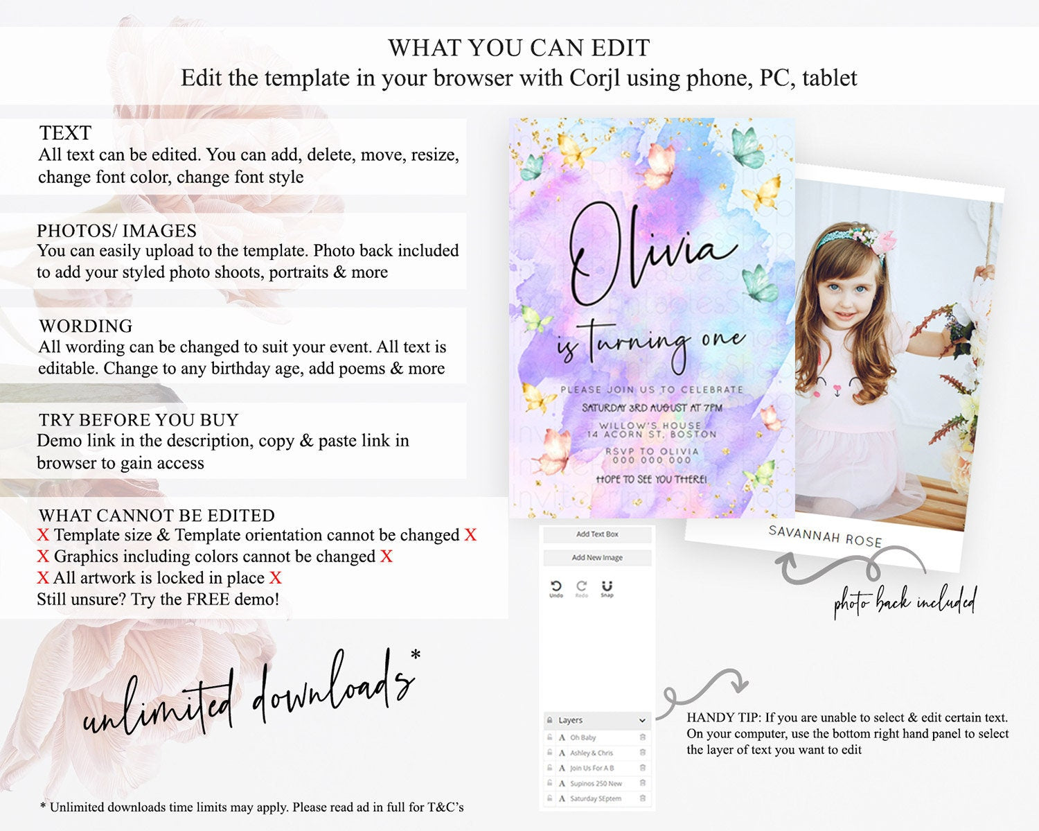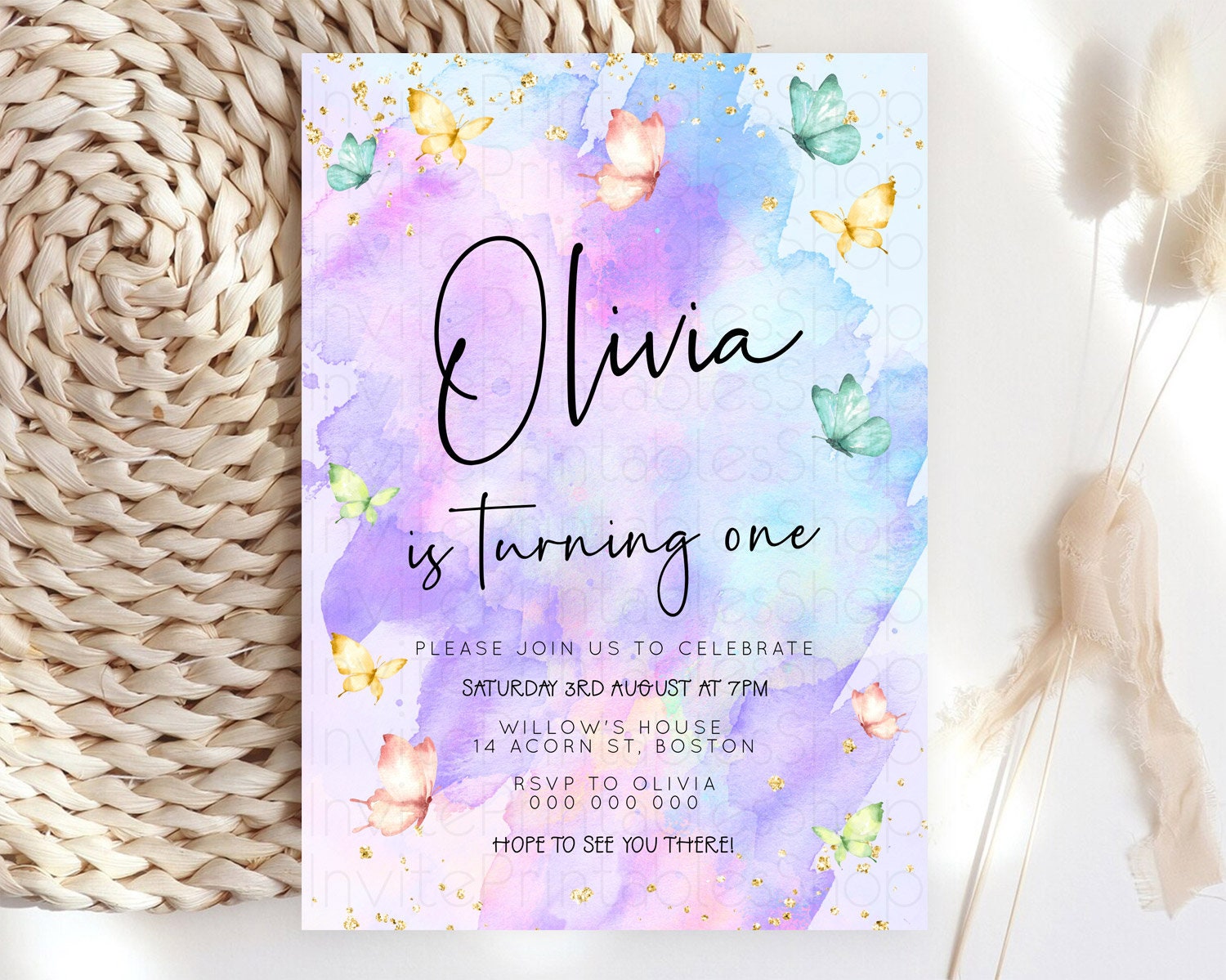Pastel Butterfly Birthday Invitation Butterfly Birthday Invitation Whimsical Butterfly Enchanted Garden 1st 2nd Birthday Invitation D23202
