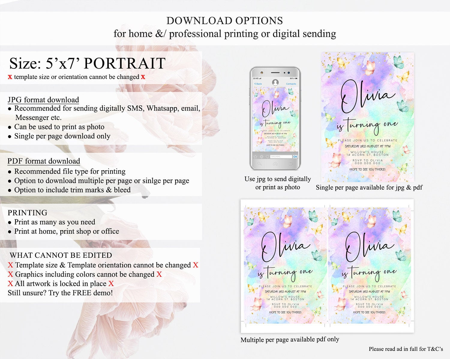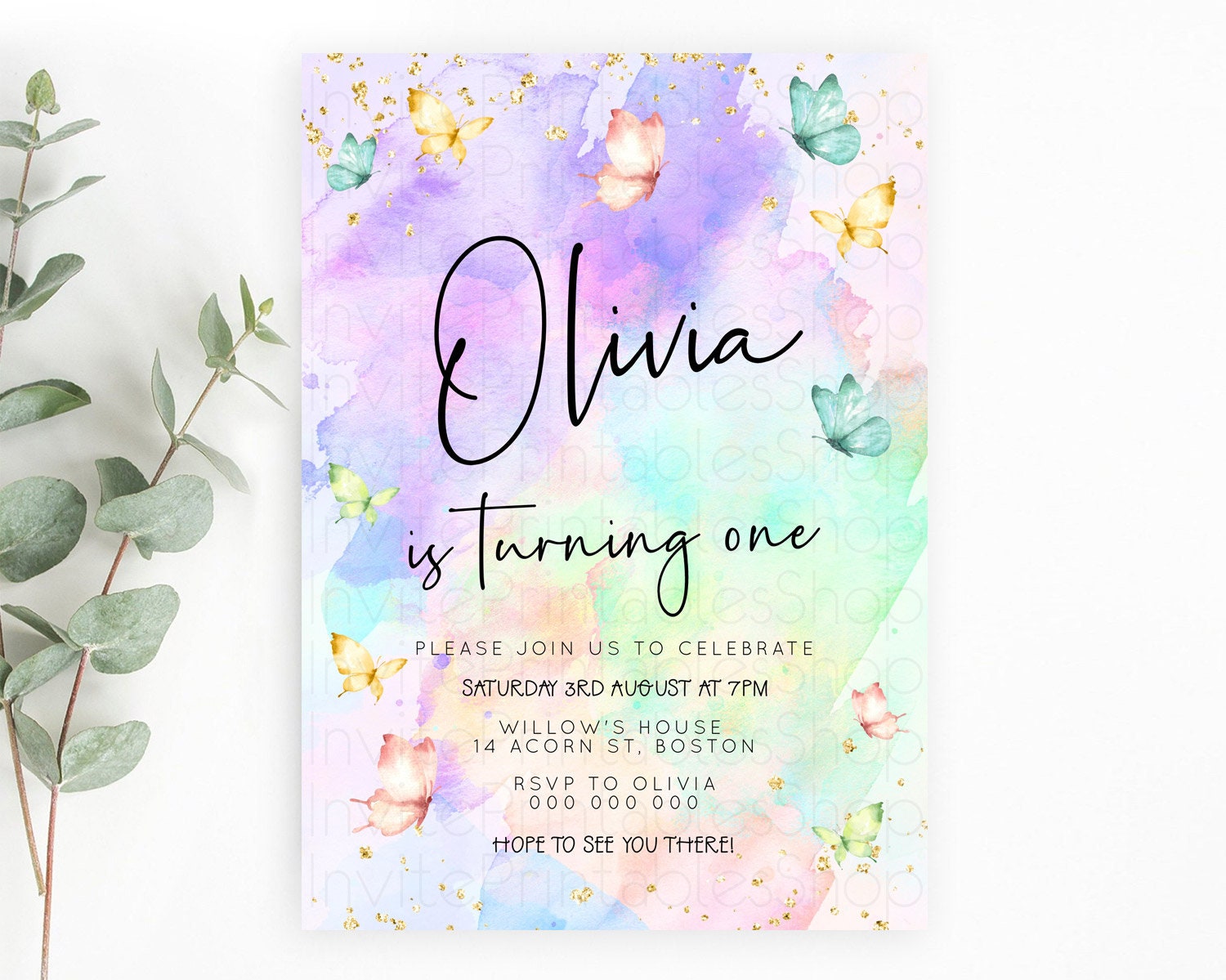 Pastel Butterfly Birthday Invitation Butterfly Birthday Invitation Whimsical Butterfly Enchanted Garden 1st 2nd Birthday Invitation D23203
