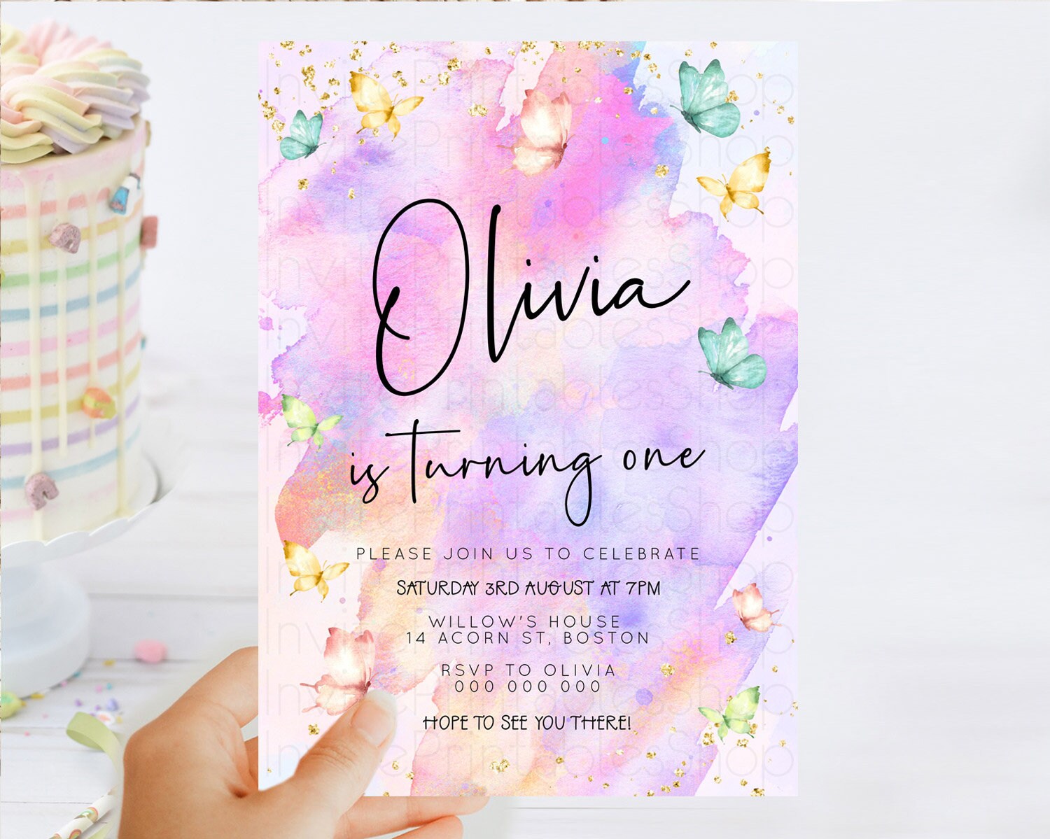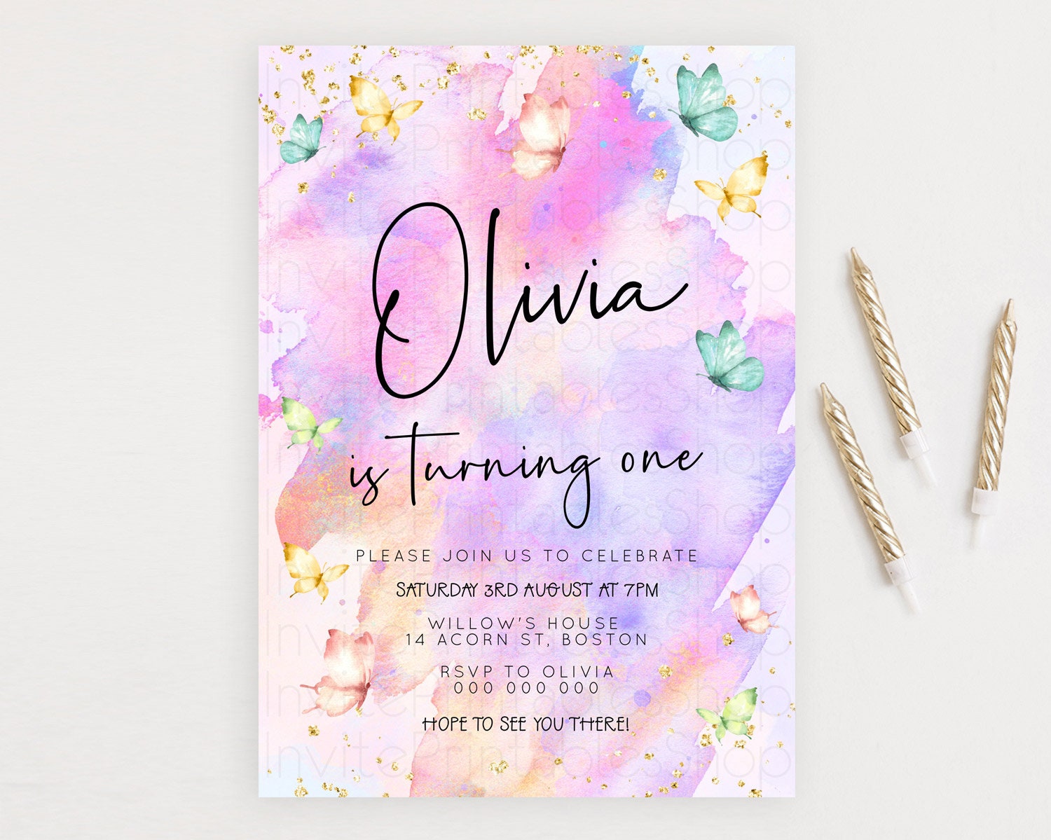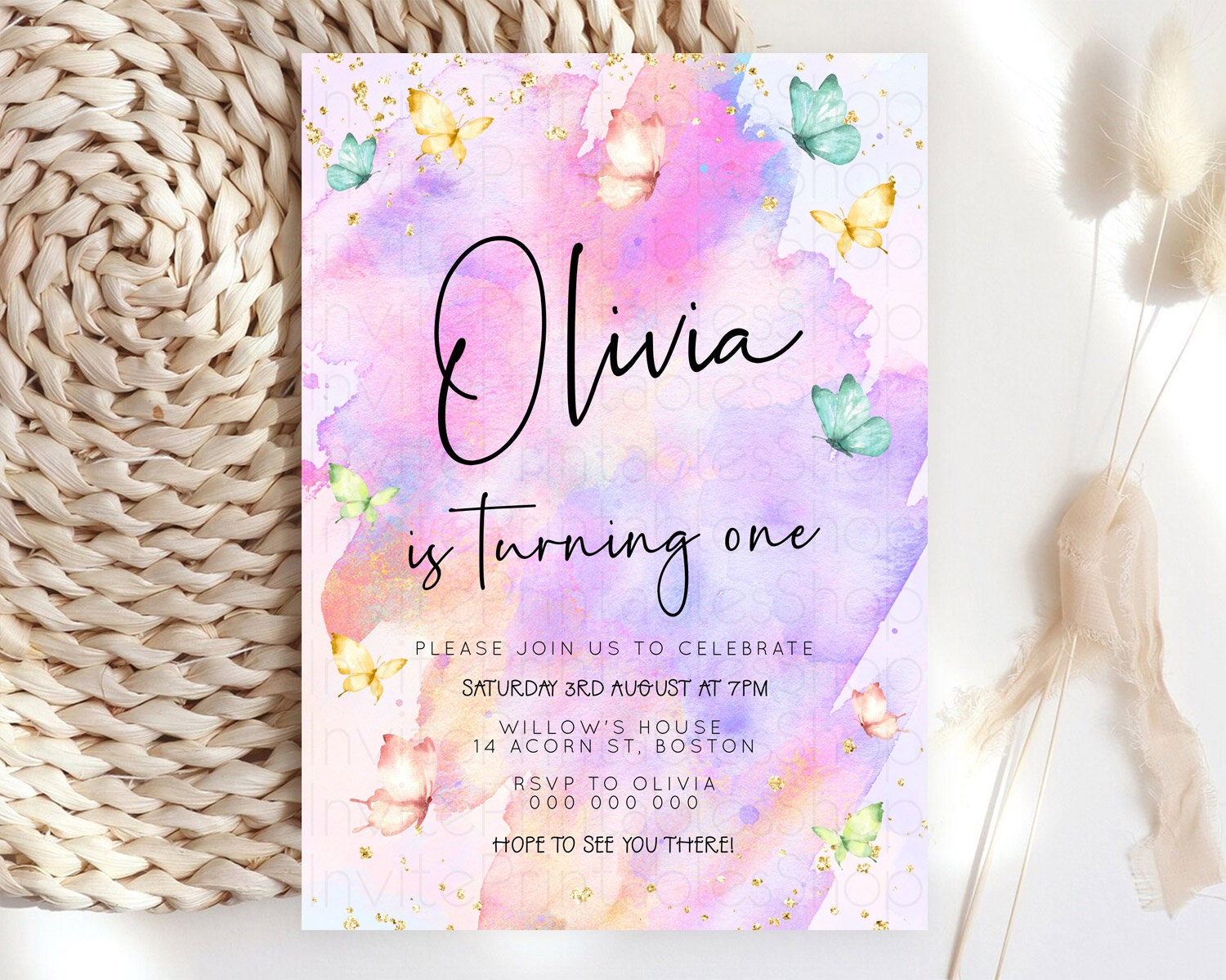 Pastel Butterfly Birthday Invitation Butterfly Birthday Invitation Whimsical Butterfly Enchanted Garden 1st 2nd Birthday Invitation D23204