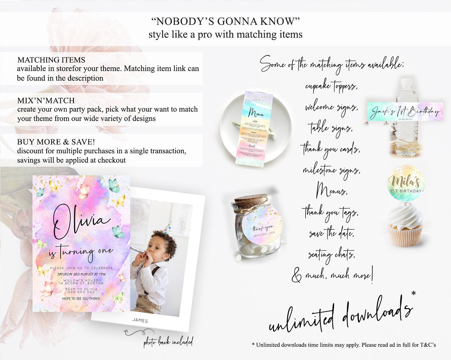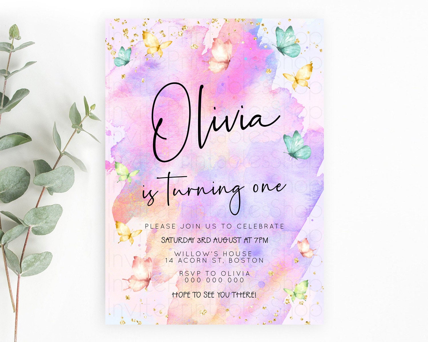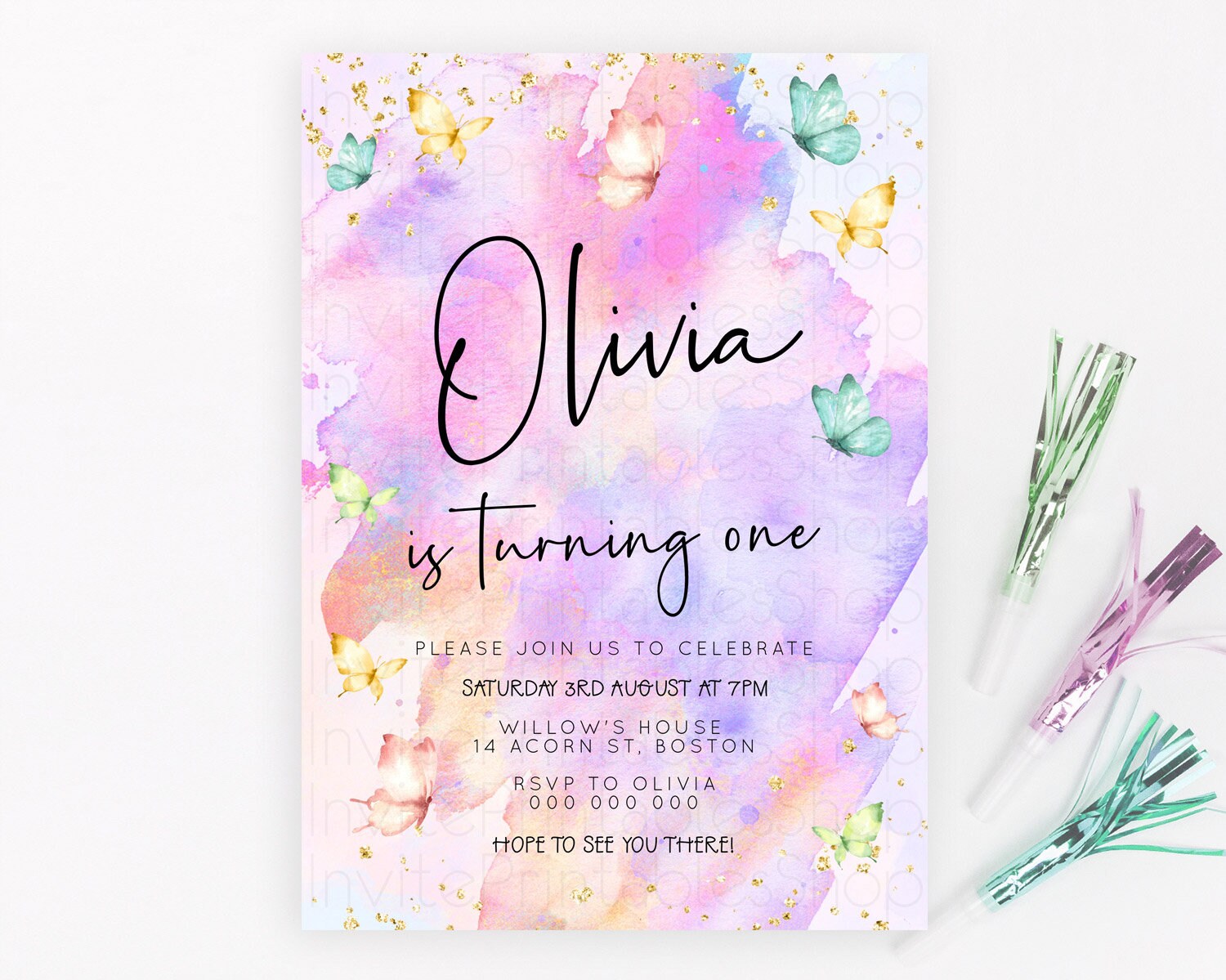 Pastel Butterfly Birthday Invitation Butterfly Birthday Invitation Whimsical Butterfly Enchanted Garden 1st 2nd Birthday Invitation D23204